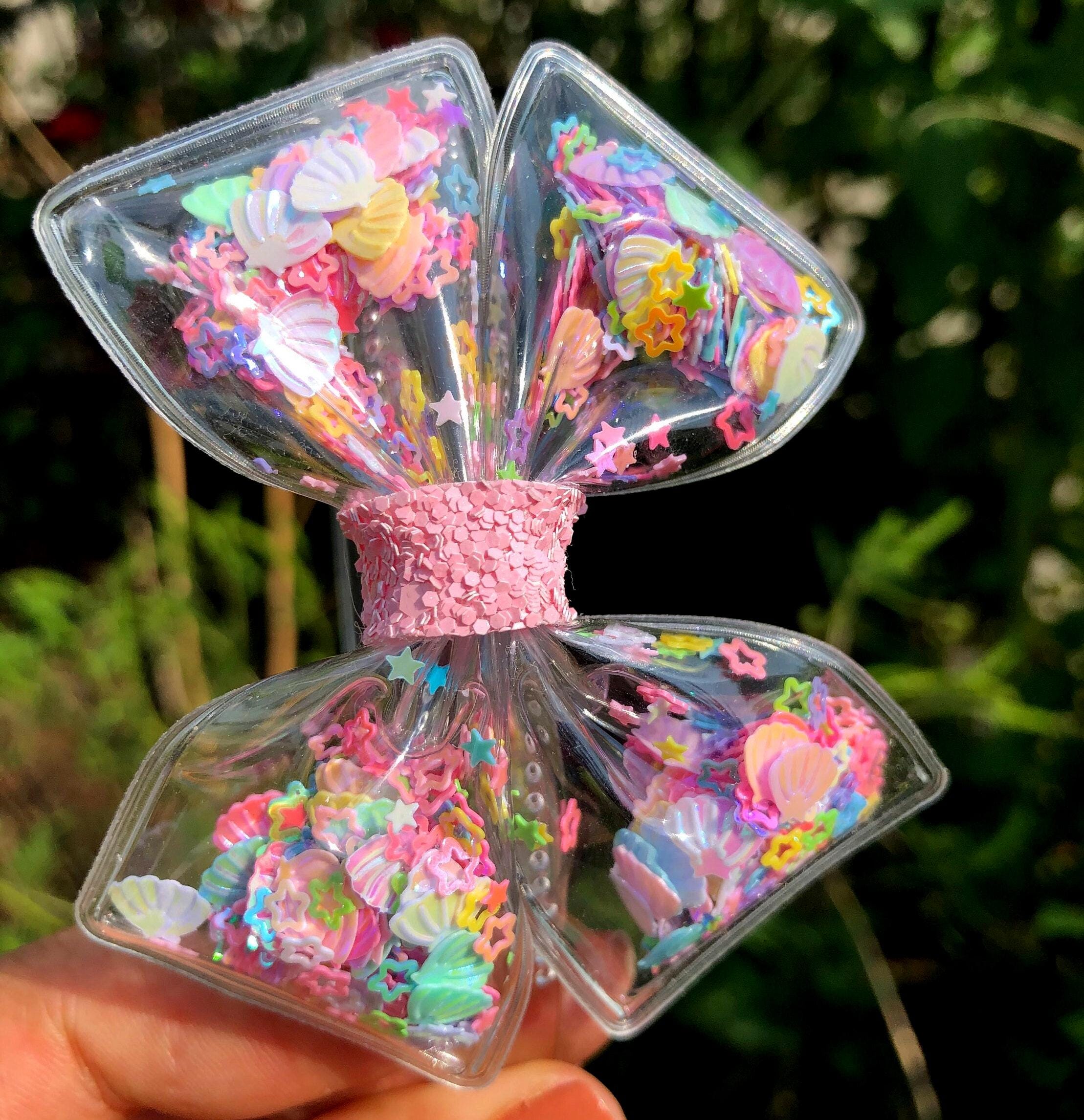 Plastic Headband with Confetti Shells, Hearts, Stars, Pastel Glitter, Summer Accessory