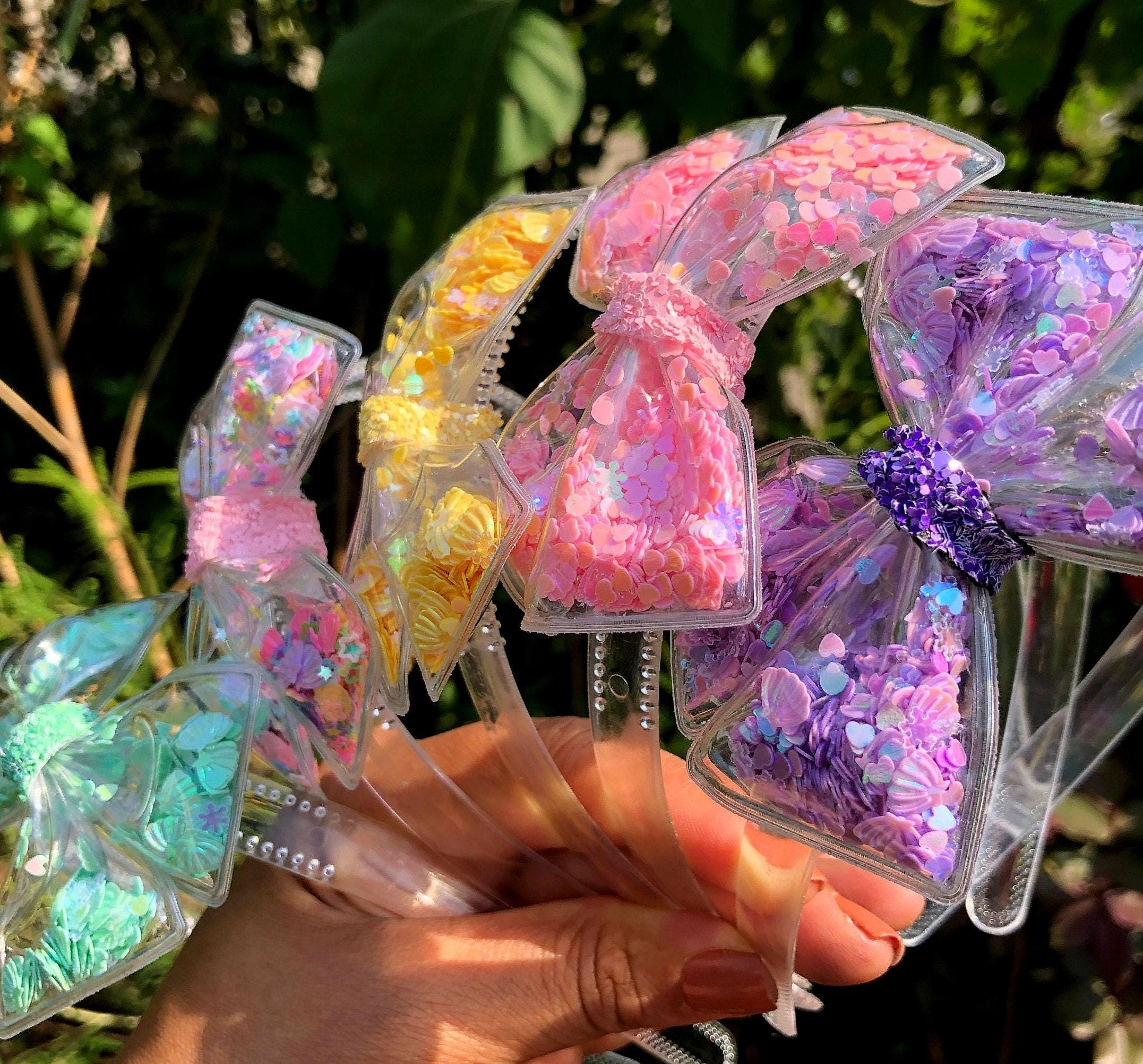 🎀Las diademas están unidas a la diadema de plástico transparente.