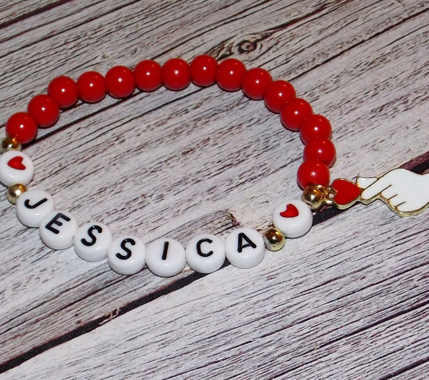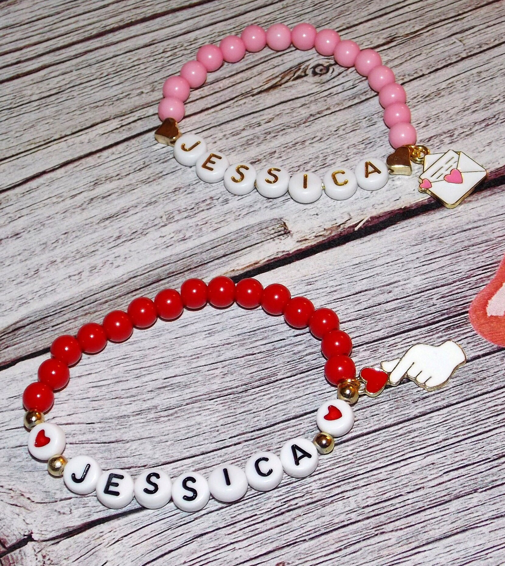 Personalized Baby bracelets Valentines day,Red,White and Pink,gift for girls toddler,bracelet and hearts,Bracelet,Newborn Bracelet,christmas