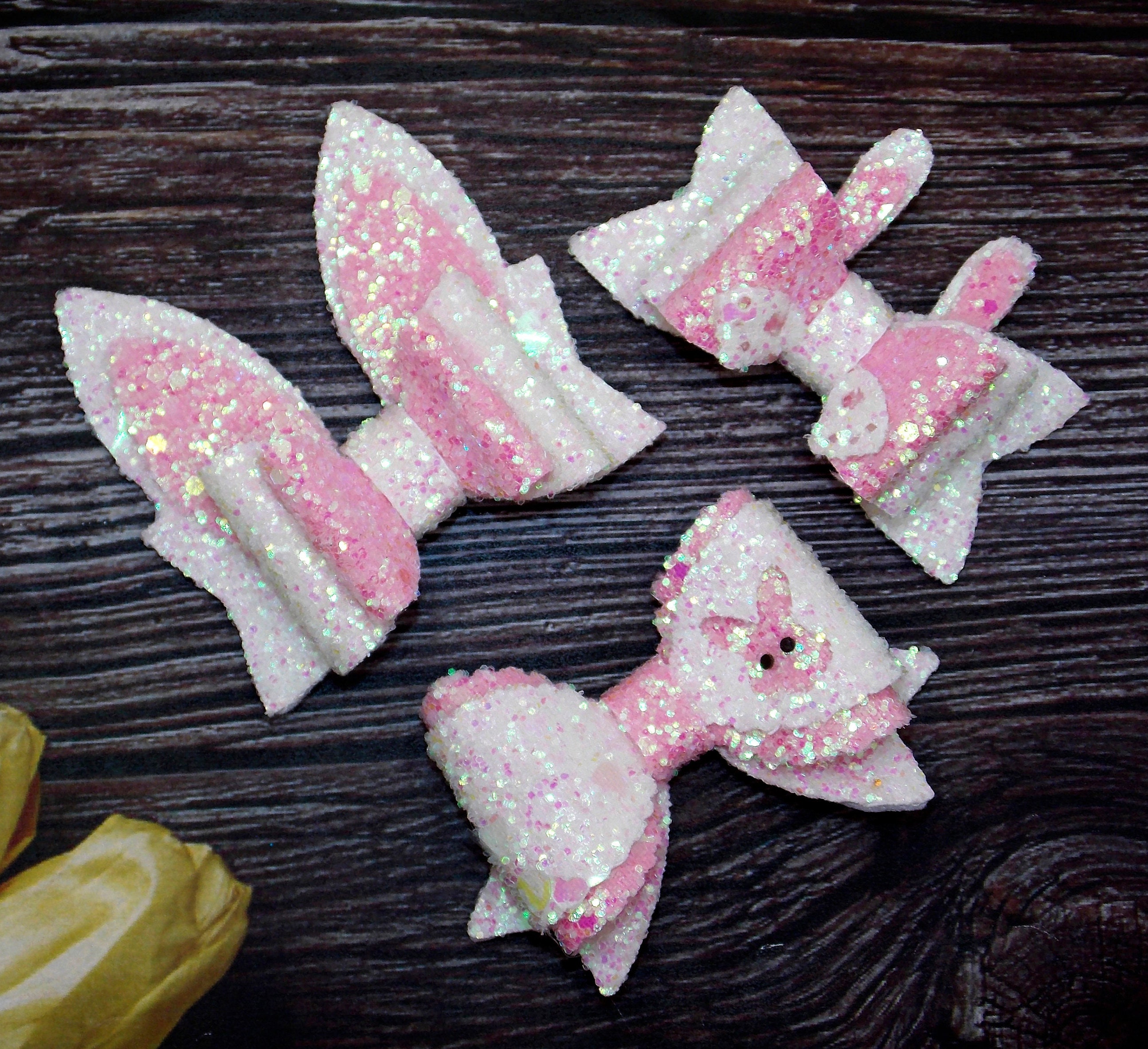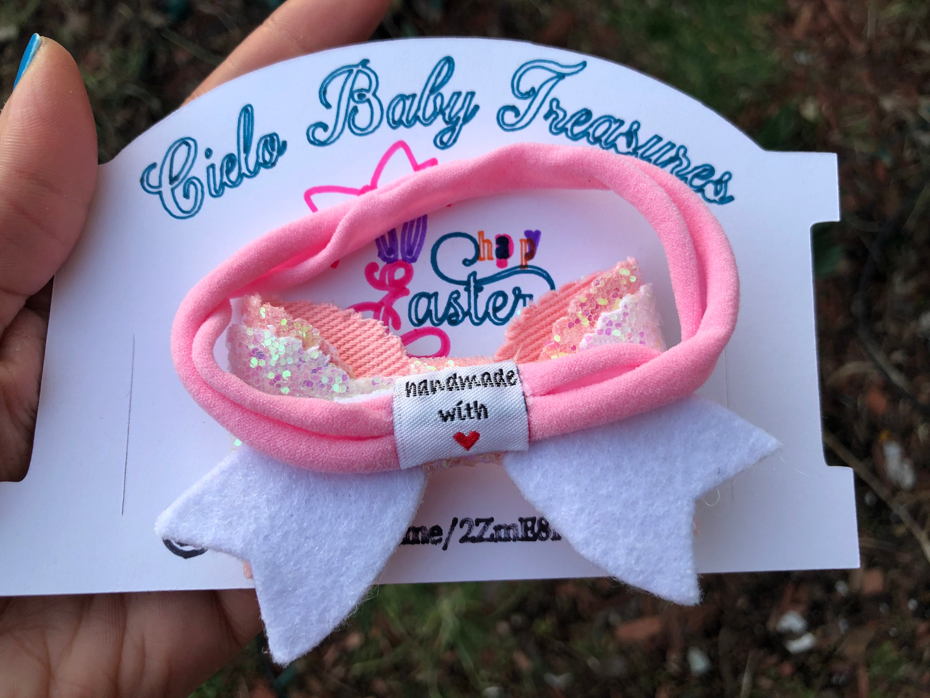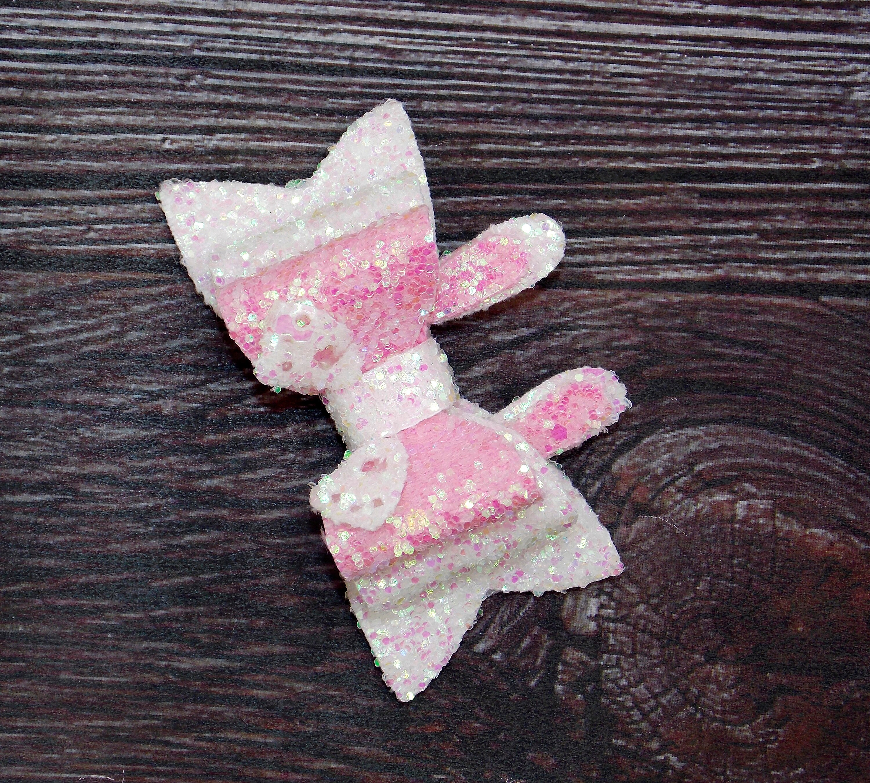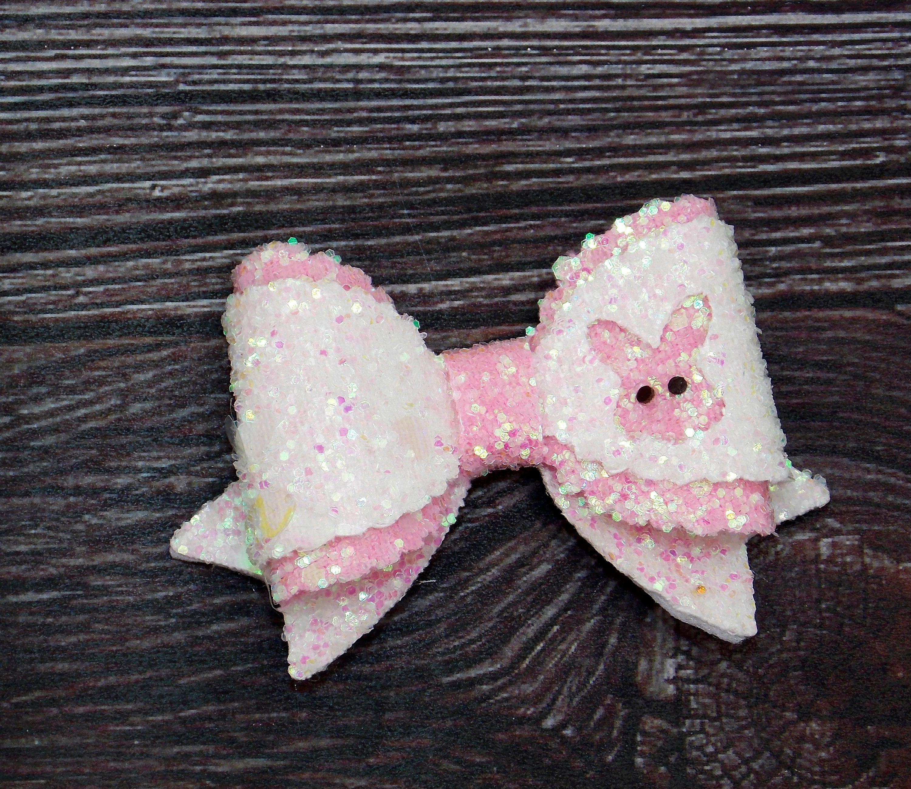 Bunny Ears Hair Bow* Assembled Easter Bow* White Sparkle Pink* glitter hair* Toddler Costume and Clothing Dress Up Accessories.
