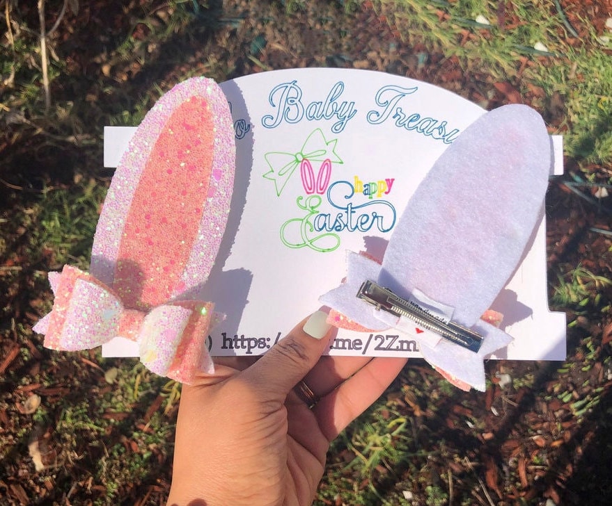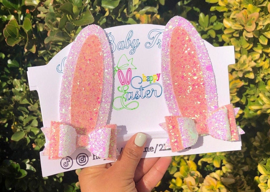 Bunny Ears Hair Bow* Assembled Easter Bow* White Sparkle Pink* glitter hair* Toddler Costume and Clothing Dress Up Accessories.