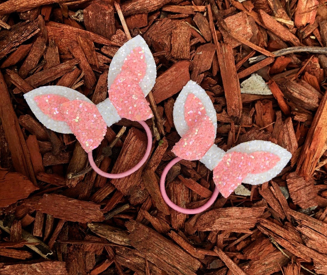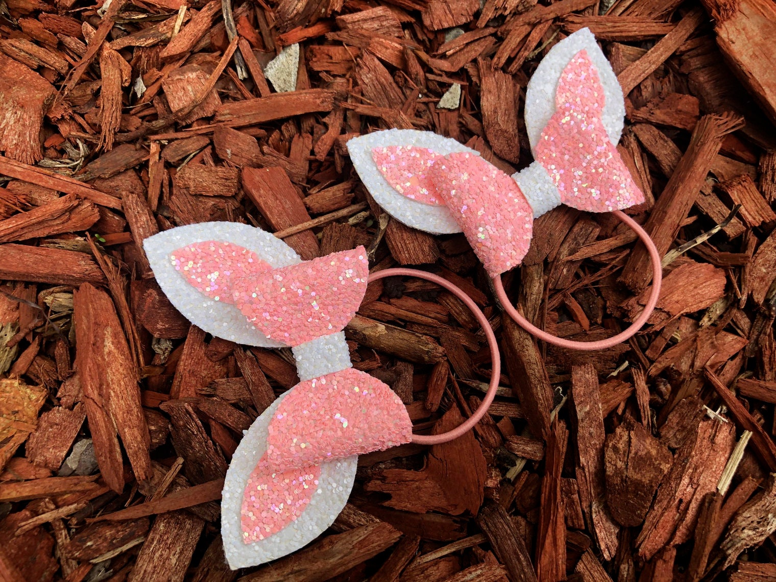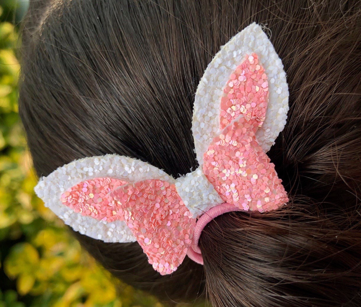 Bunny Ears Hair Bow* Assembled Easter Bow* White Sparkle Pink* glitter hair* Toddler Costume and Clothing Dress Up Accessories.