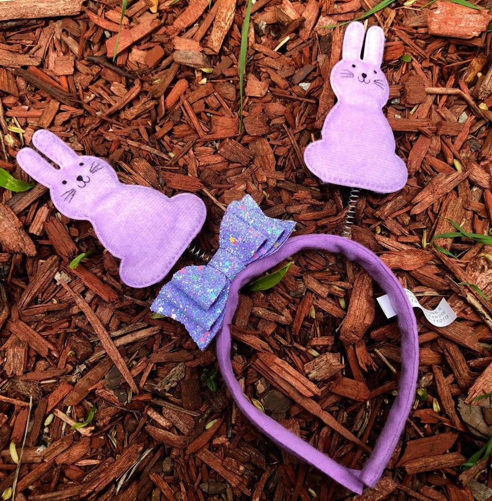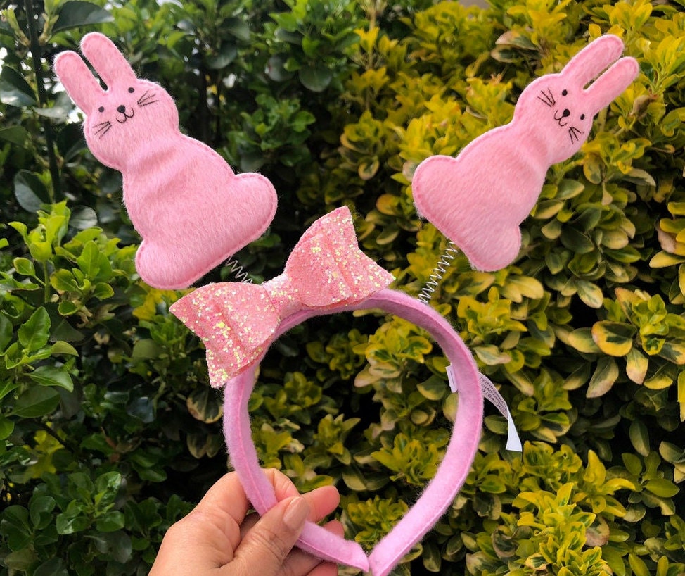Bow sprinkles Bunny Headband, Easter Hair Clip for Girls, Bunny Hair Tie, Animal Hairband, Rabbit Ear, Cute Kids Hair Ties, Easter Hair Bow Basket Gift, Double Stacked Glitter Bows Sparkle.