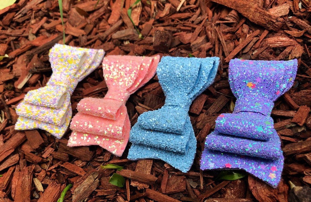 Double Stacked Glitter Bow, Bunny Ear Pink, Sparkle Blue glitter hair bow, girls hair bow, Glitter bows, Classic bows, Glitter Canvas, hair bows for Easter hair Bows.