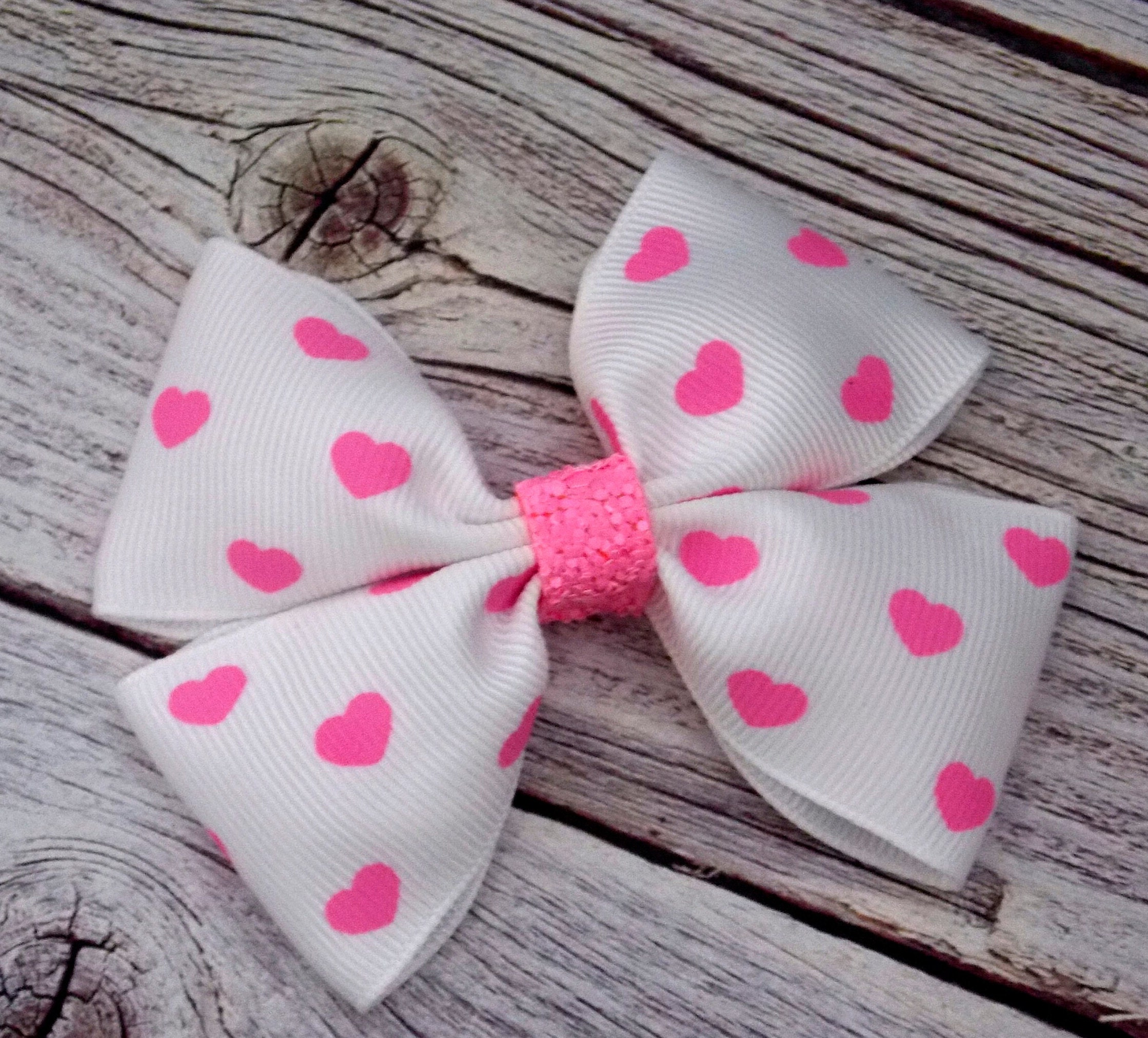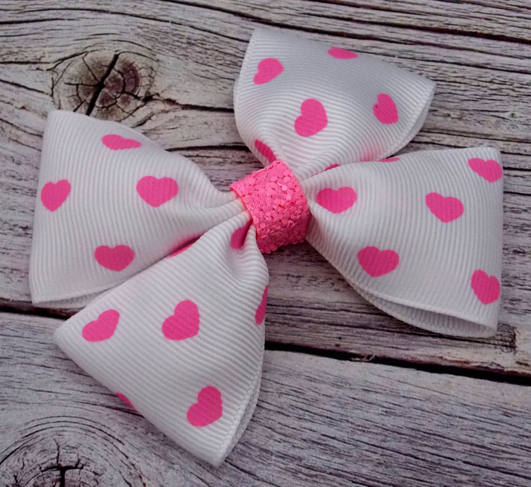 Hearts Valentine's day Hair Bows for Girls/Girls Love Hair Bow Alligator Clip/Pink, White and Pink Love Hair Bows Ponytail Holder, Love Hair Bows.