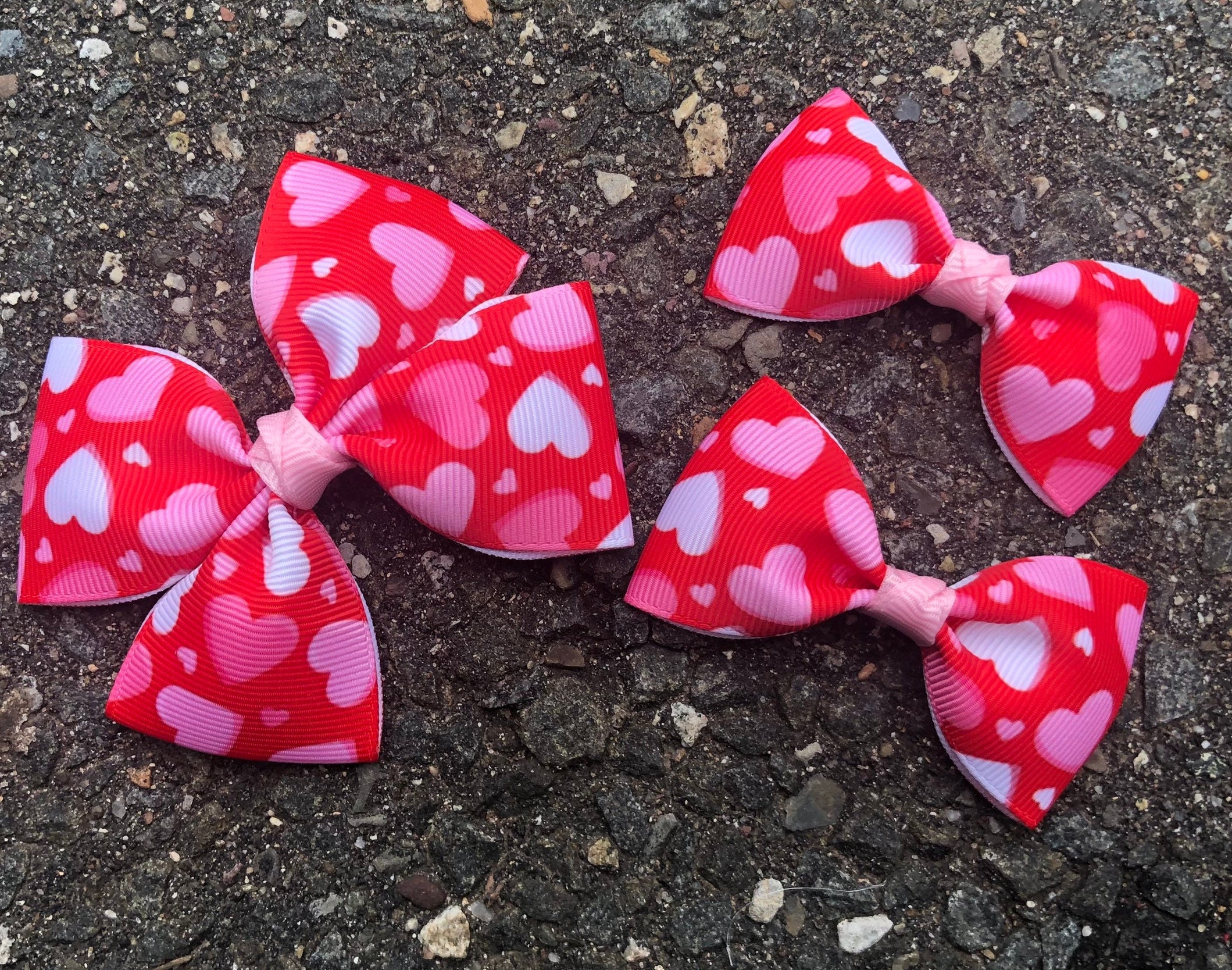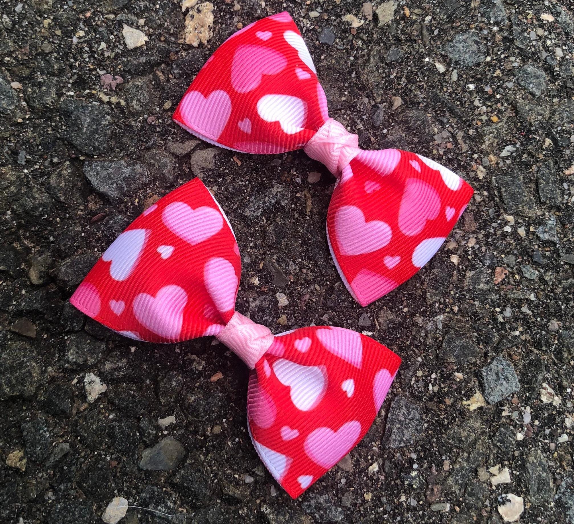 Hearts Valentine's day Hair Bows for Girls/Girls Love Hair Bow Alligator Clip/Red, White and Red Love Hair Bows Ponytail Holder, Love Hair Bows.