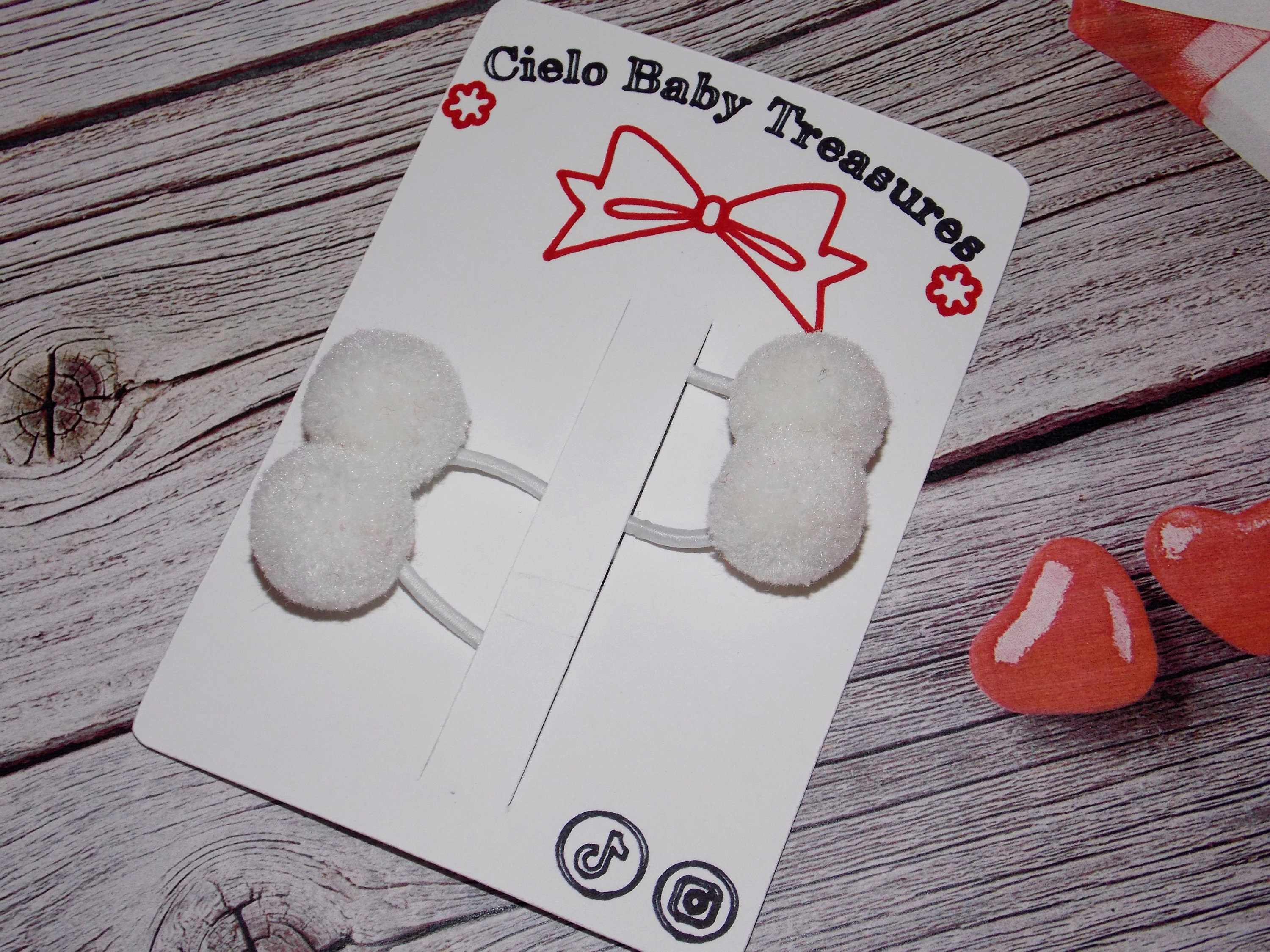 Set of 2 Elastic Bands with Pom Pom-Valentine's Day POM POM Red,Pink and White/Hair Bows for Baby Gilrs-Parties-Holiday-Summer Bows
