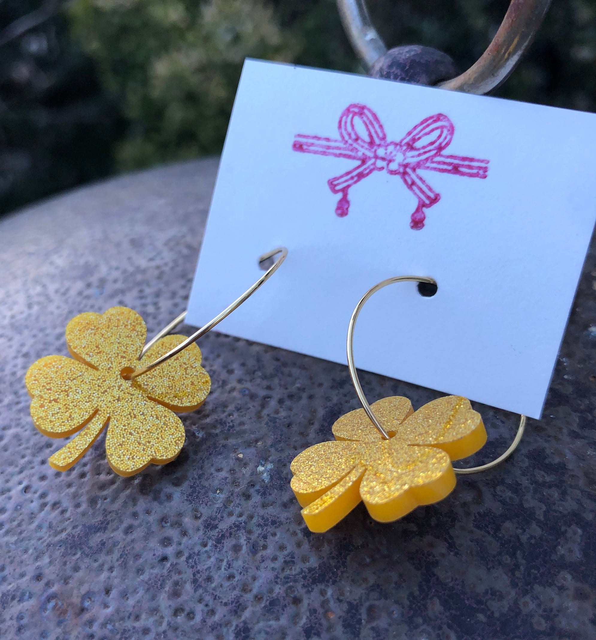 Four Leaf Clover Glitter Resin Stud Earrings-St Patrick's Day Earrings Green or Gold-Sparkly Glitter Earrings-Jewelry Women-Shamrock Earring.
