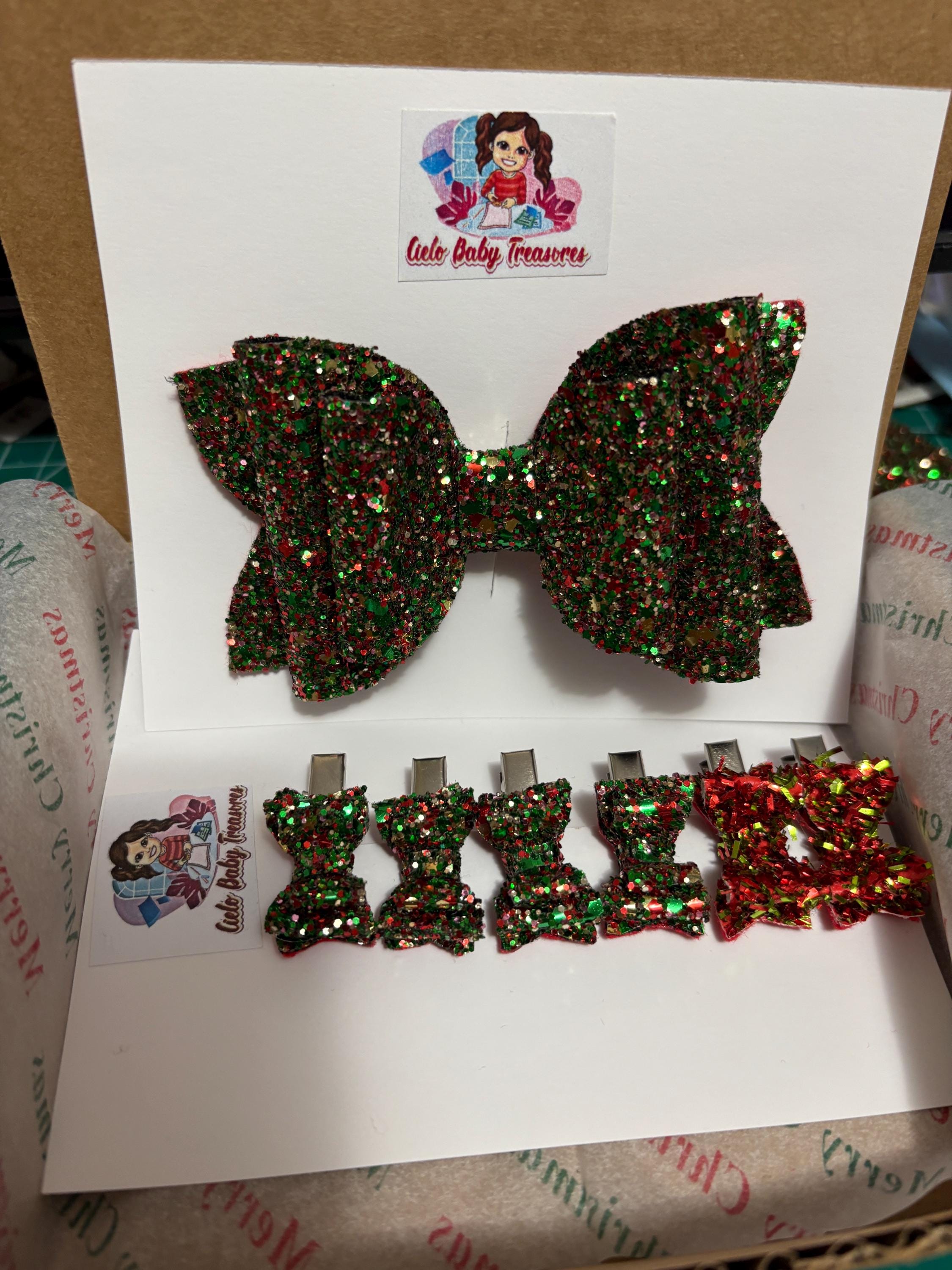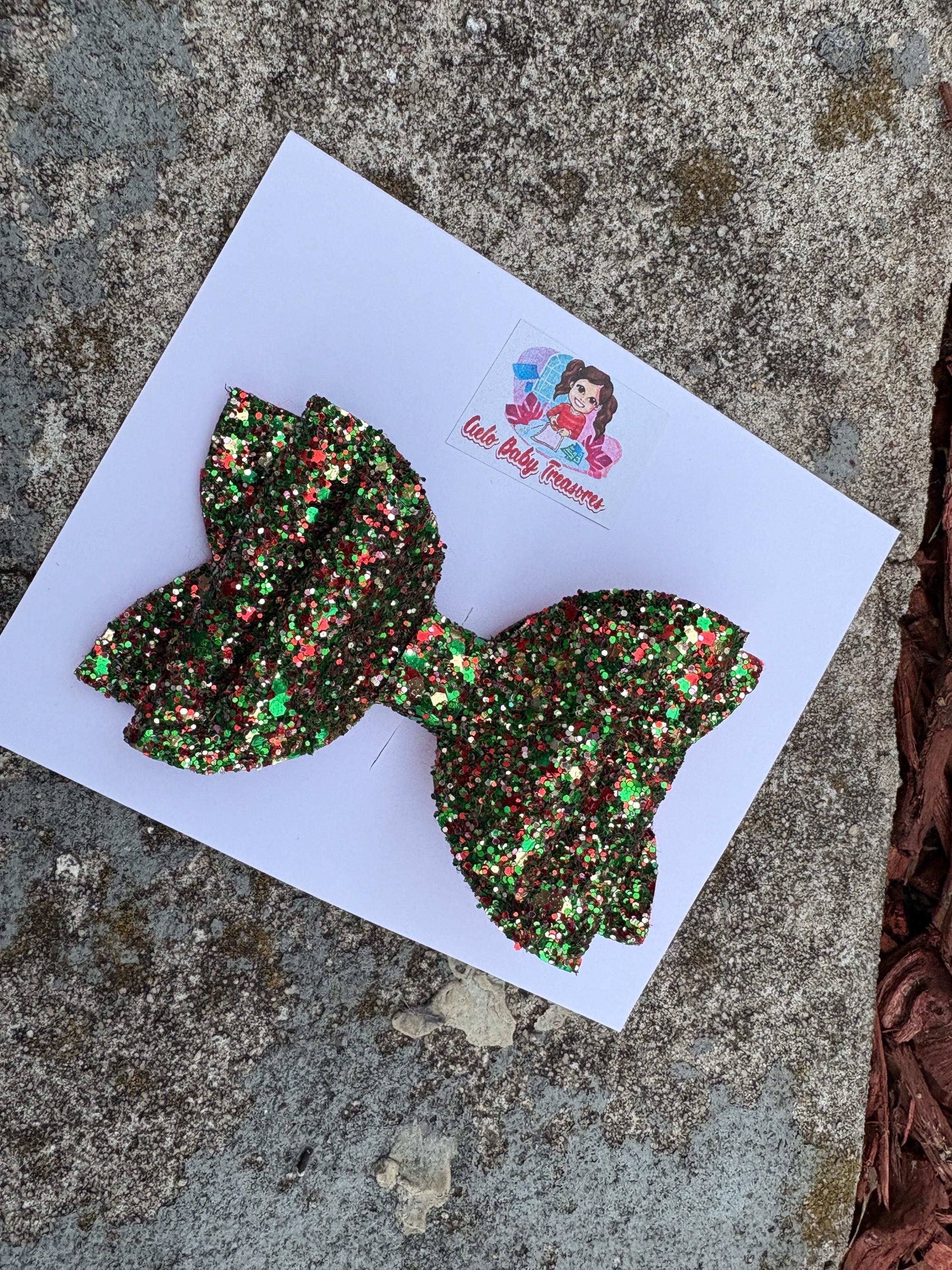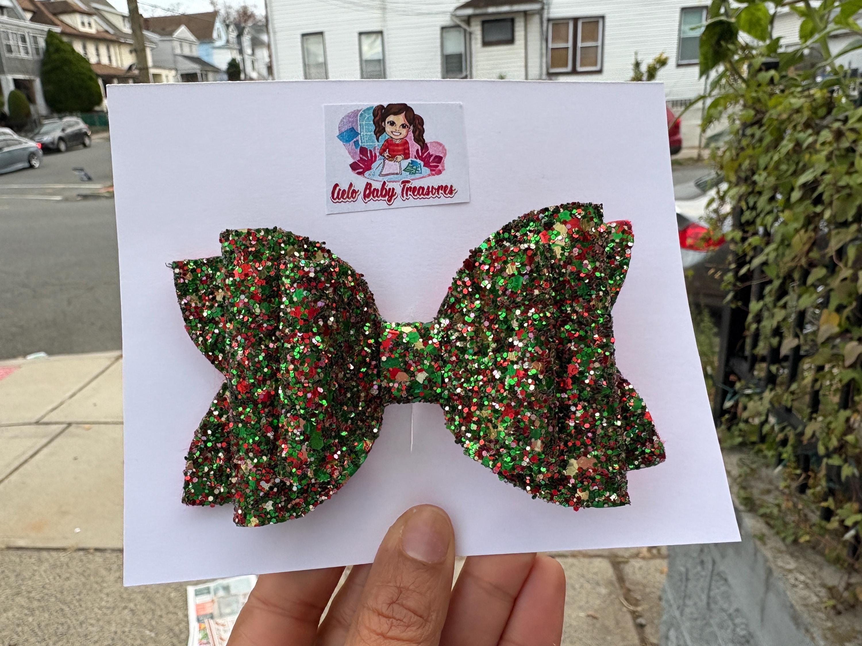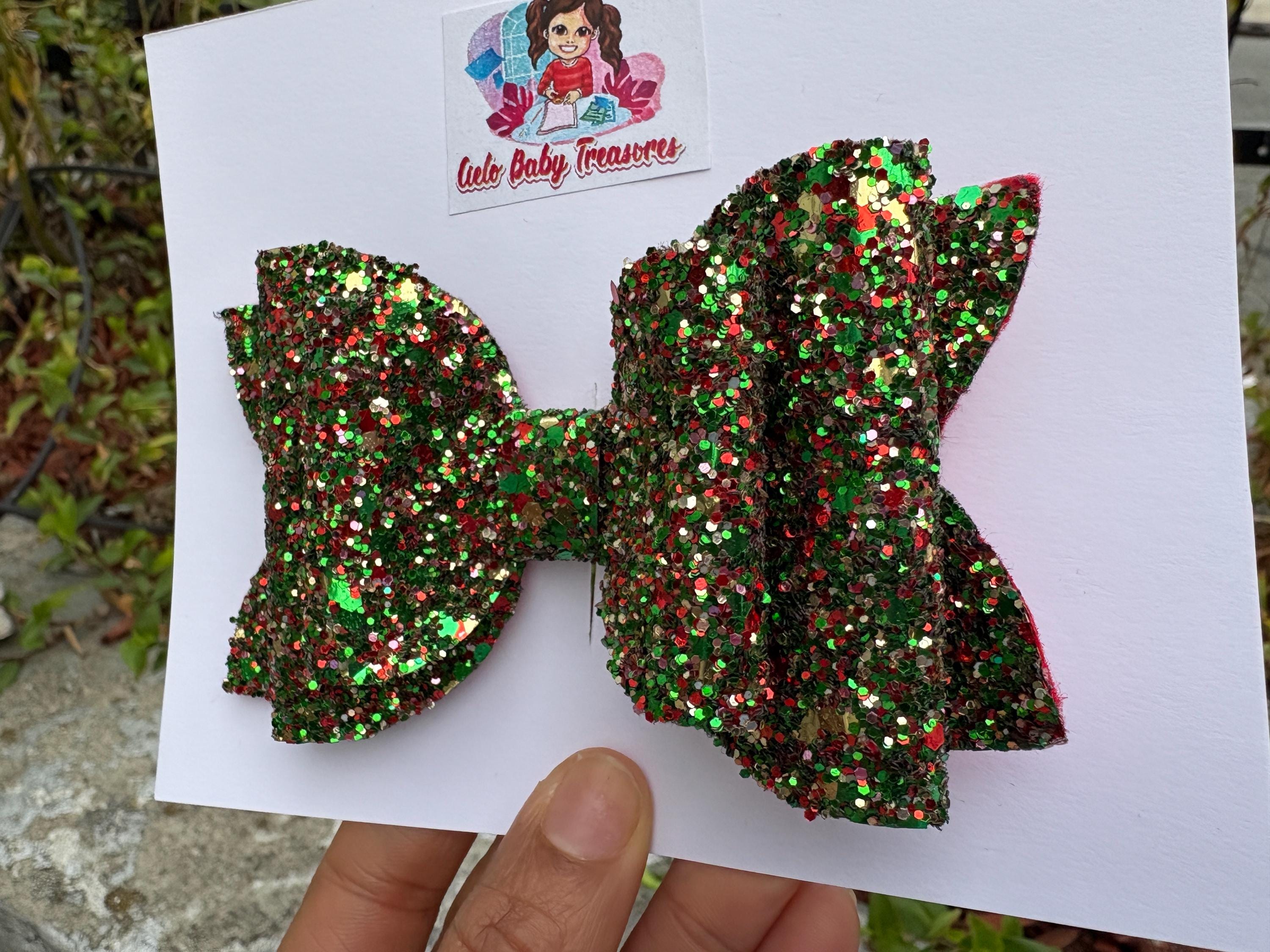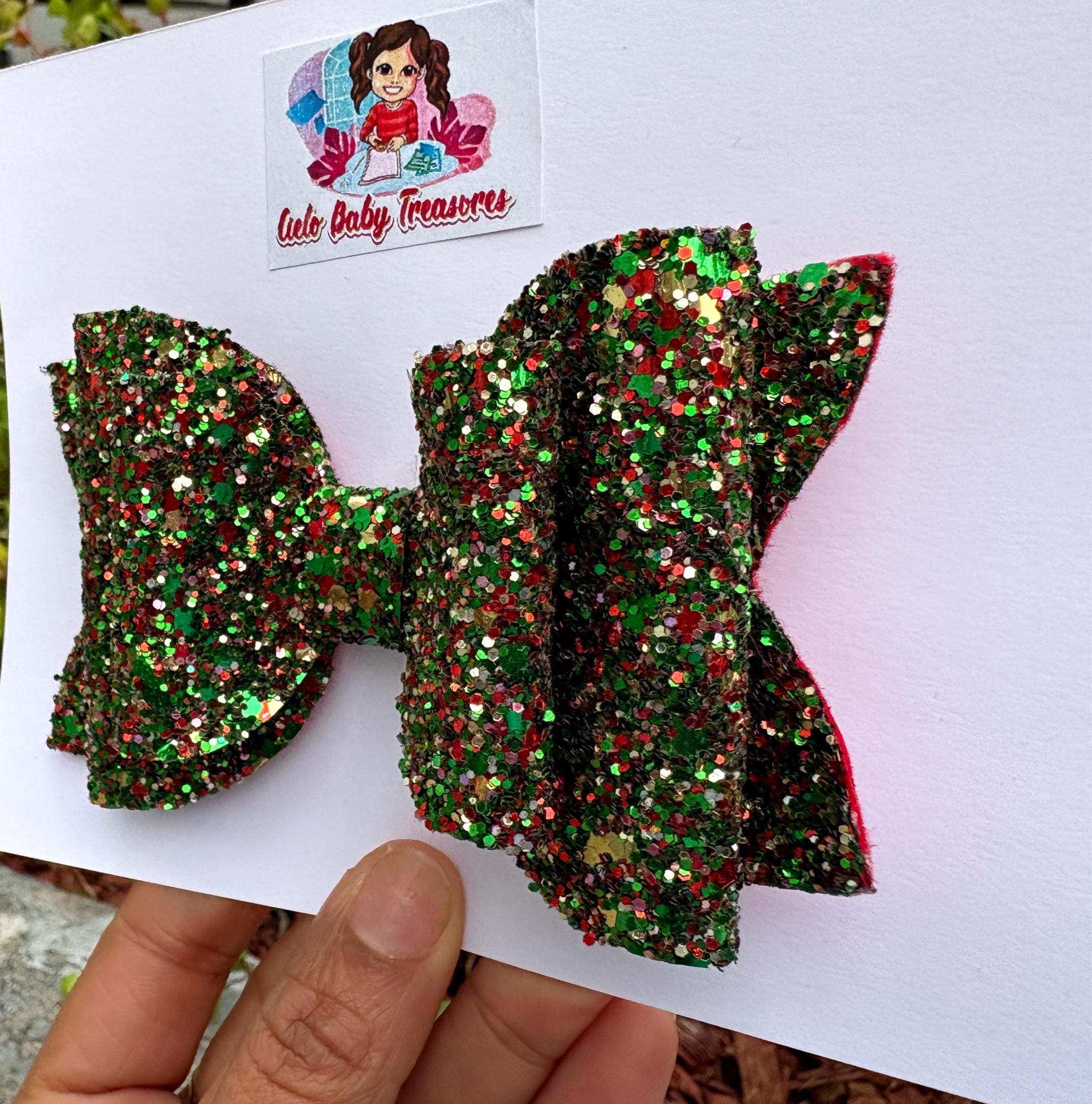 Lazo de doble capa con brillantina - Rojo brillante, lazo para el cabello con brillantina, lazo para niña, lazos de cumpleaños. Lazos navideños rojos y verdes para el cabello con coletas, lazos para el cabello, lazos navideños para niñas, diademas navideñas para mi primera Navidad.