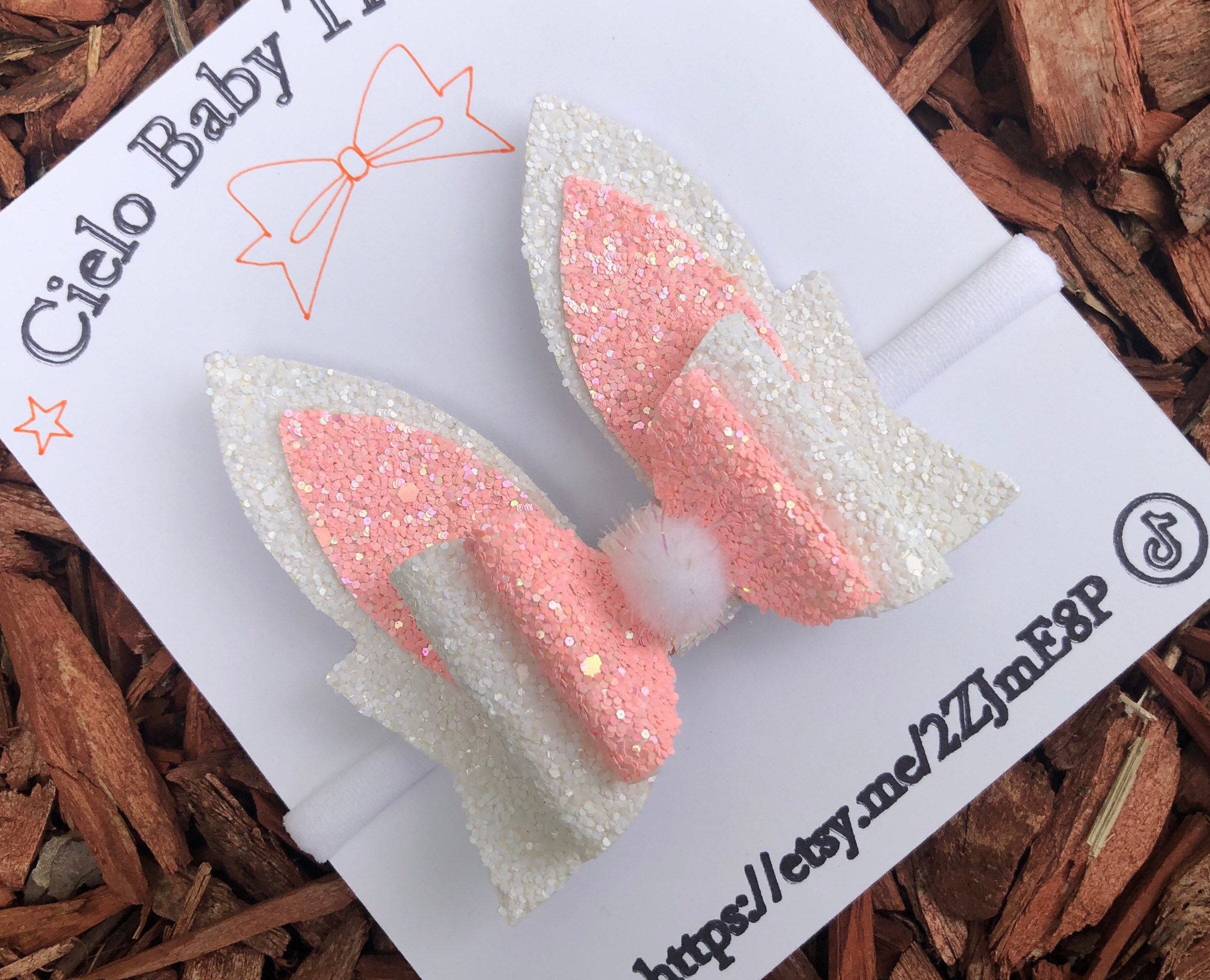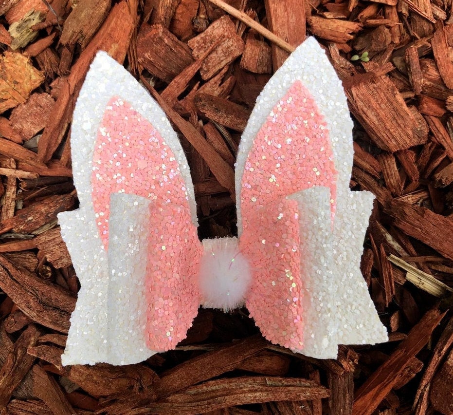Bunny Ears Hair Bow* Assembled Easter Bow* White Sparkle Pink* glitter hair* Toddler Costume and Clothing Dress Up Accessories.