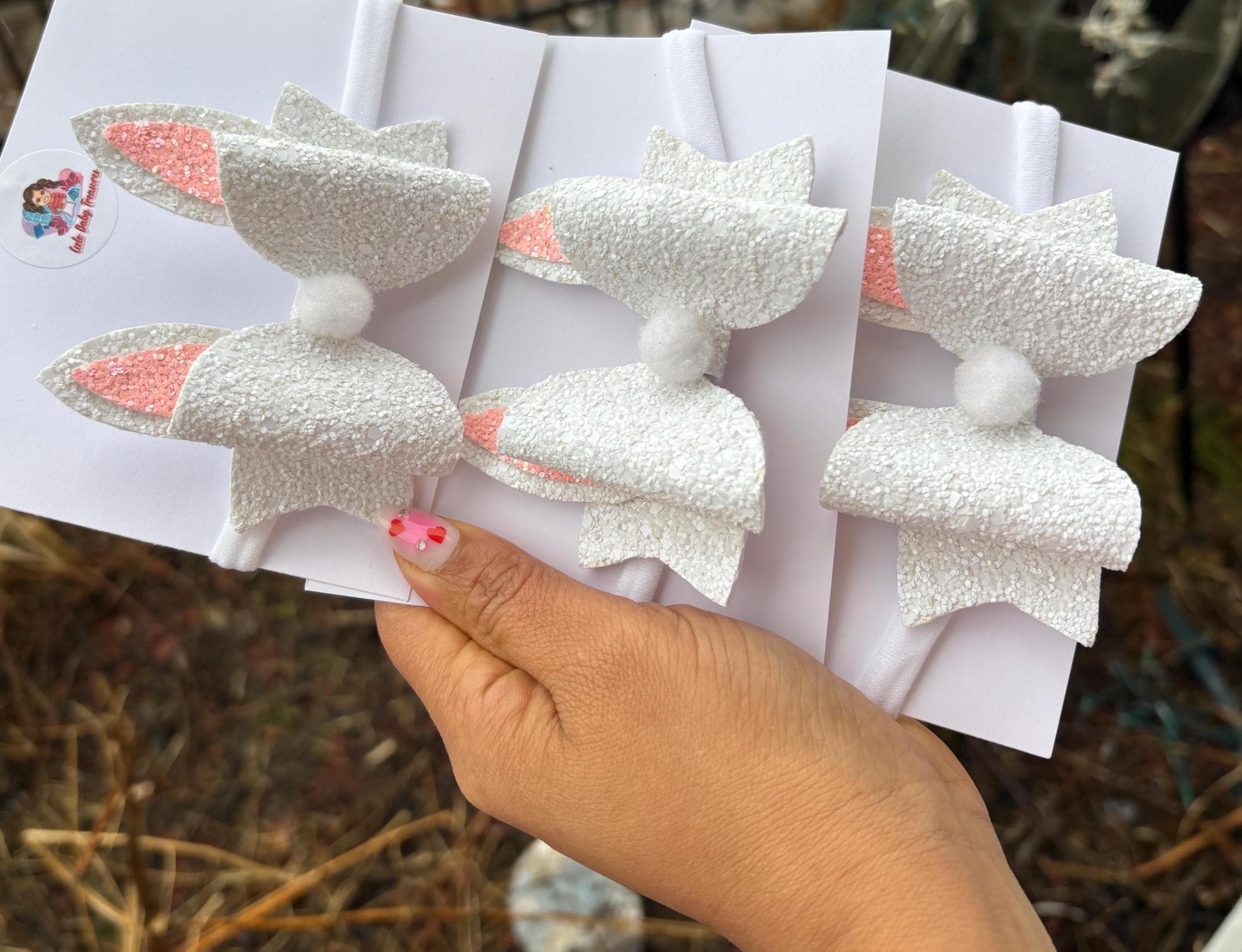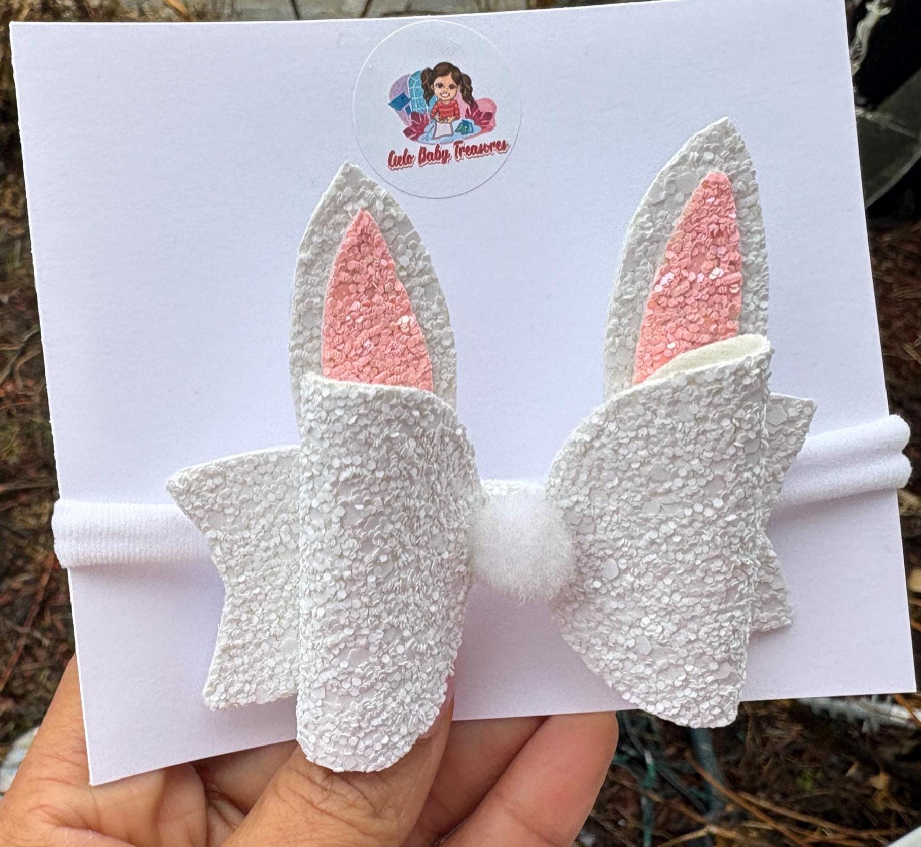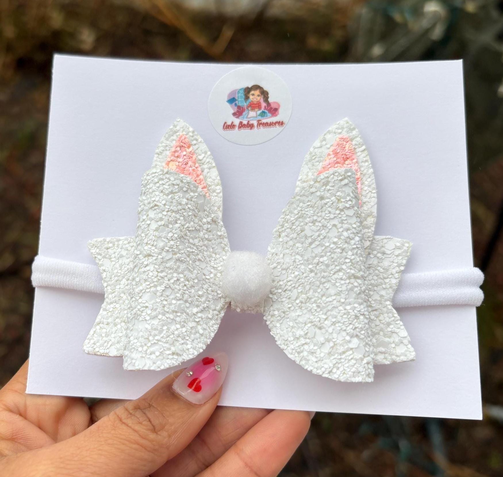 Bunny Ears Hair Bow* Assembled Easter Bow* White Sparkle Pink* glitter hair* Toddler Costume and Clothing Dress Up Accessories.