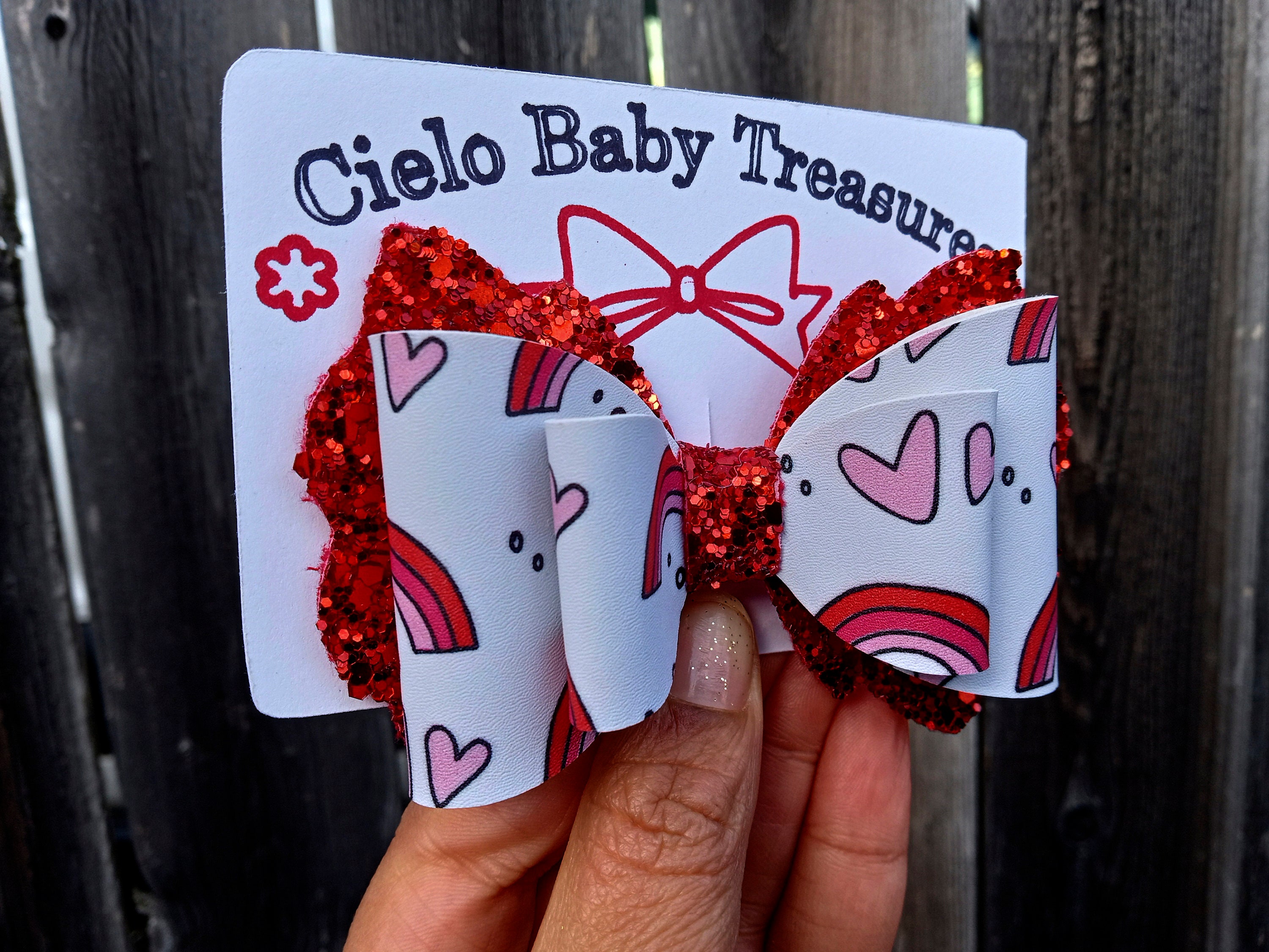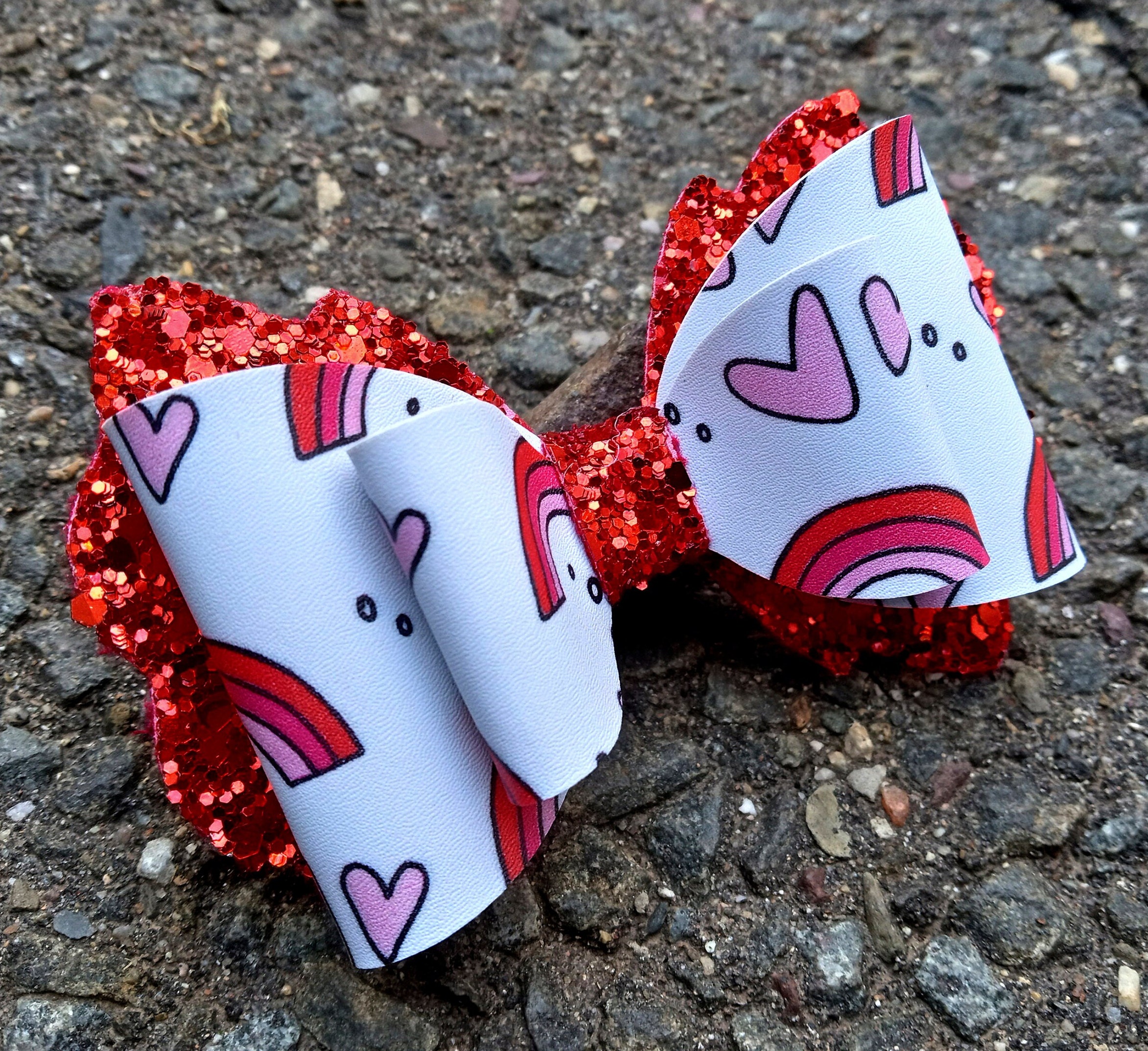 Rainbow of Love-Hearts Valentine's Day Hair Bow- Gift Toddler Baby Girl Birthday-Classic Hair Bow Pink & Red-Stacked Glitter Bow-Pigtail