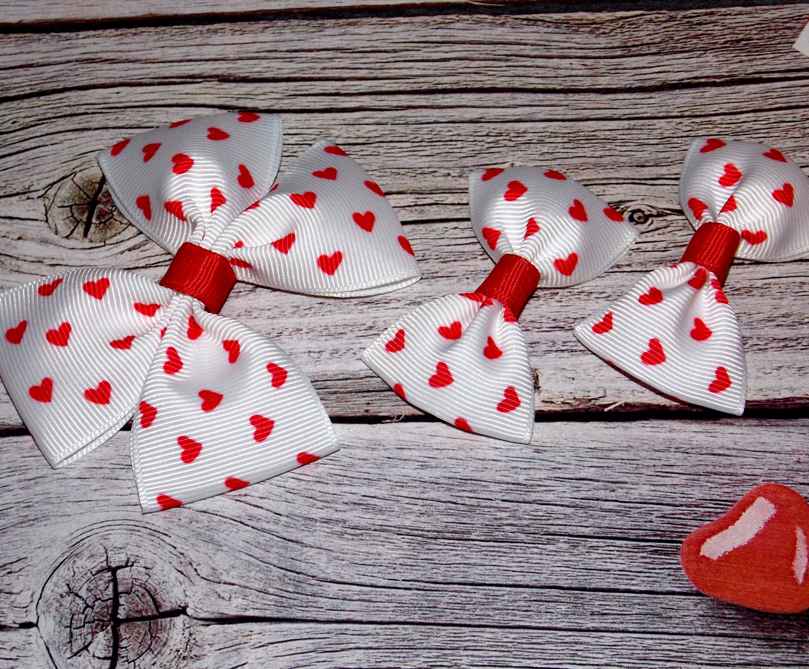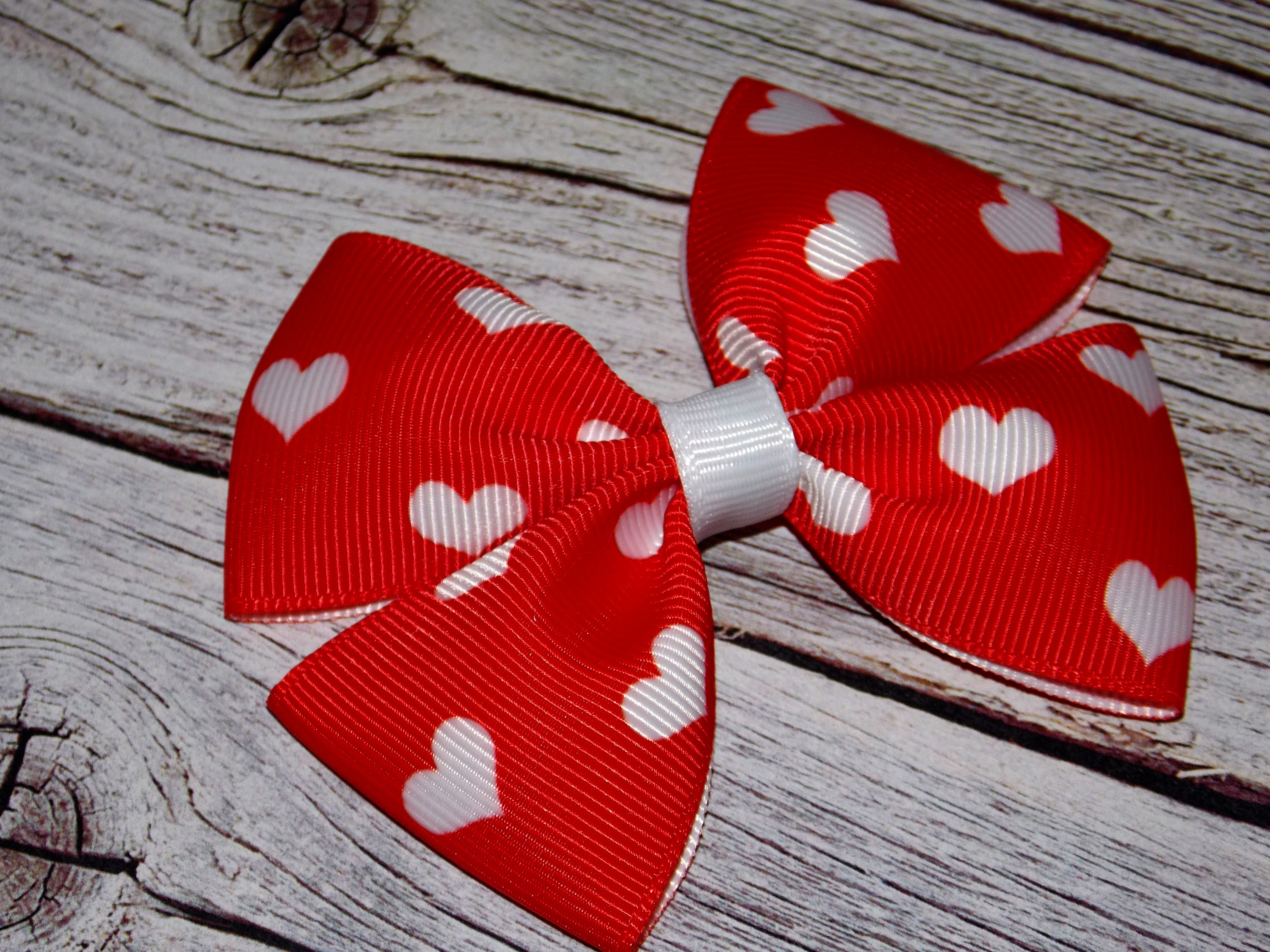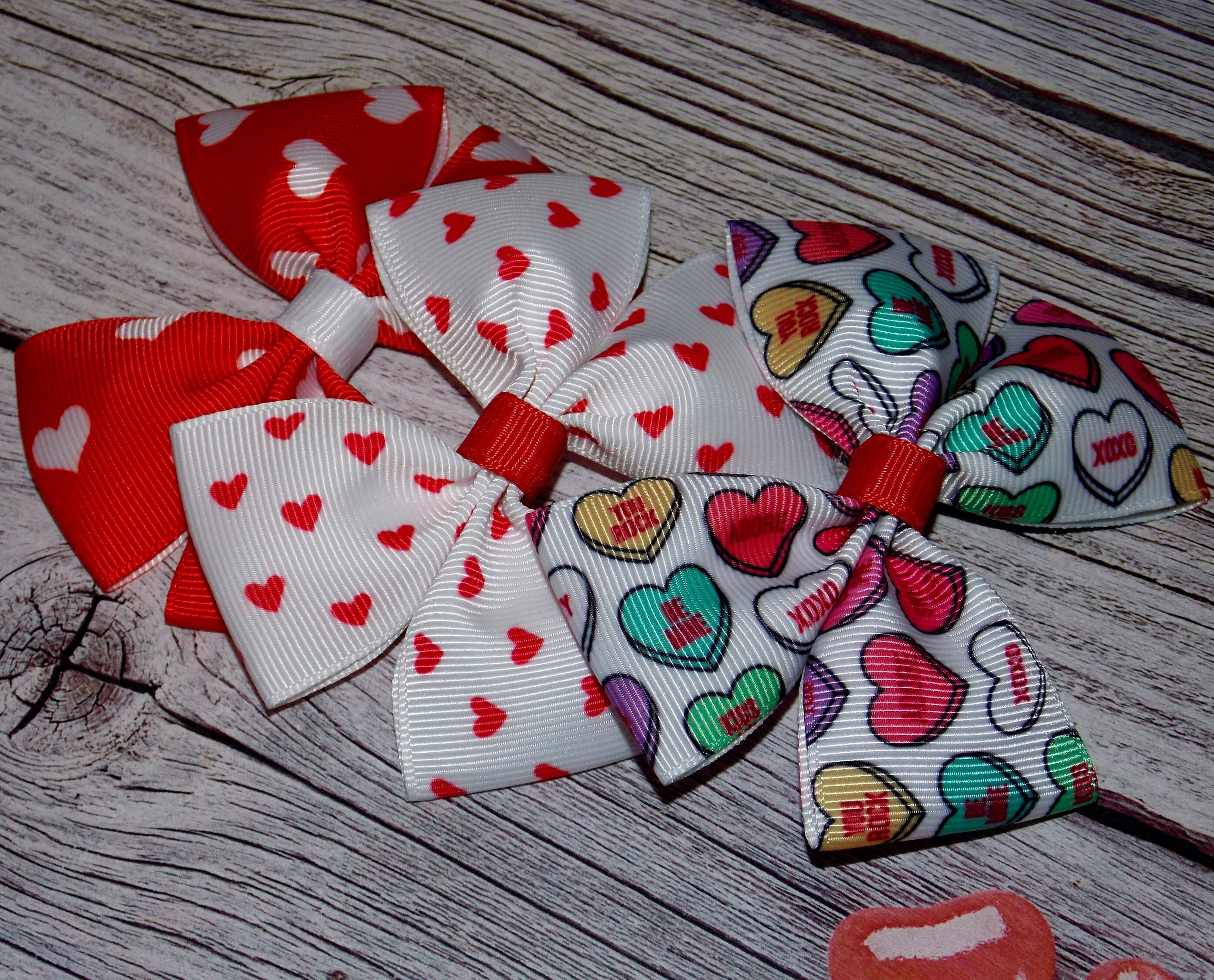 Hearts Valentine's day Hair Bows for Girls/Girls Love Hair Bow Alligator Clip/Red , White and Pink Love Hair Bows Ponytail Holder, Love Hair Bows.