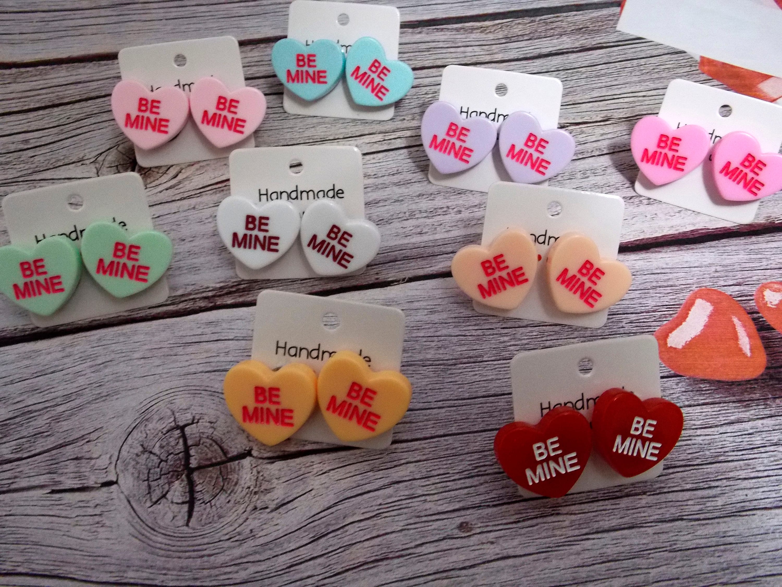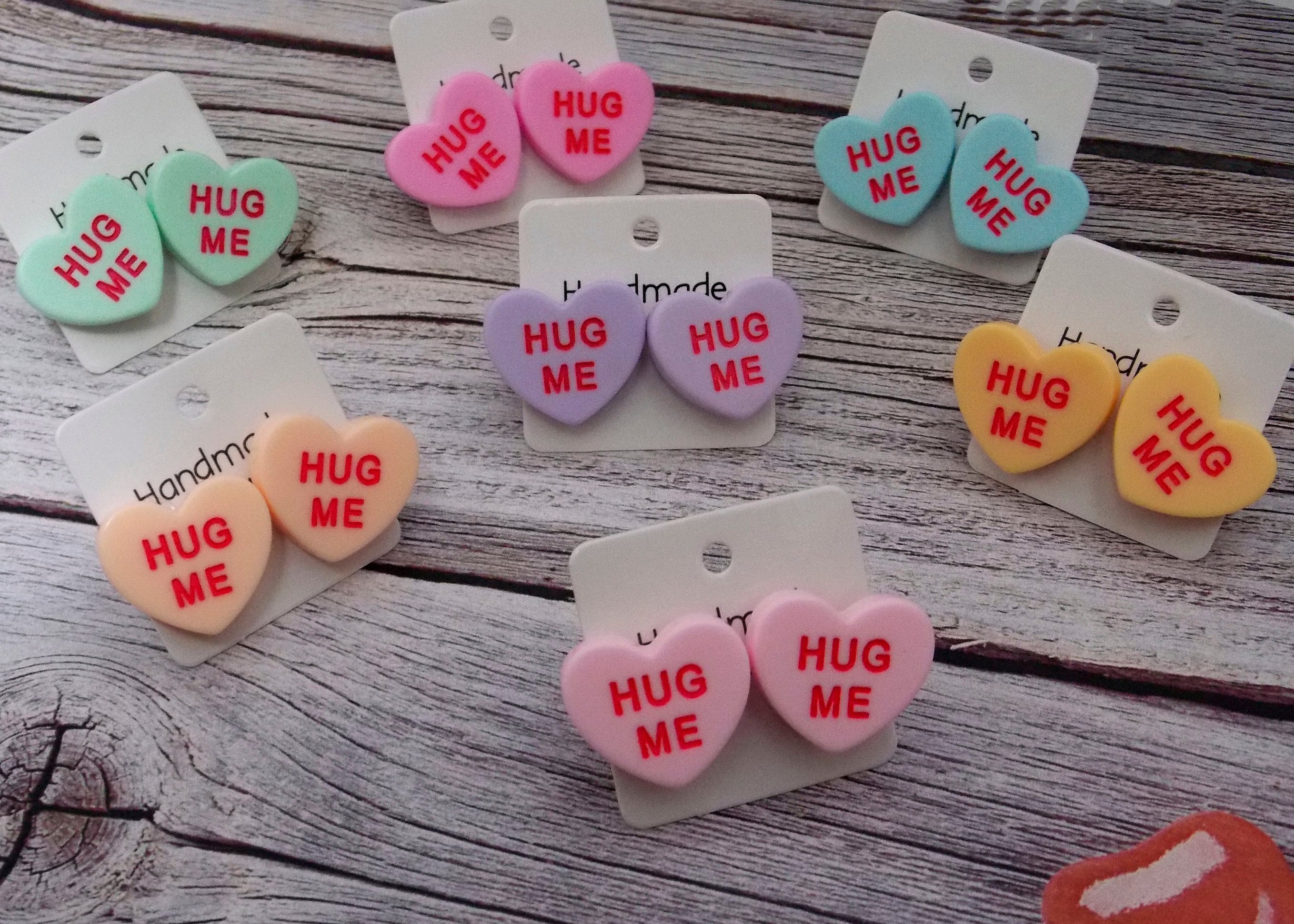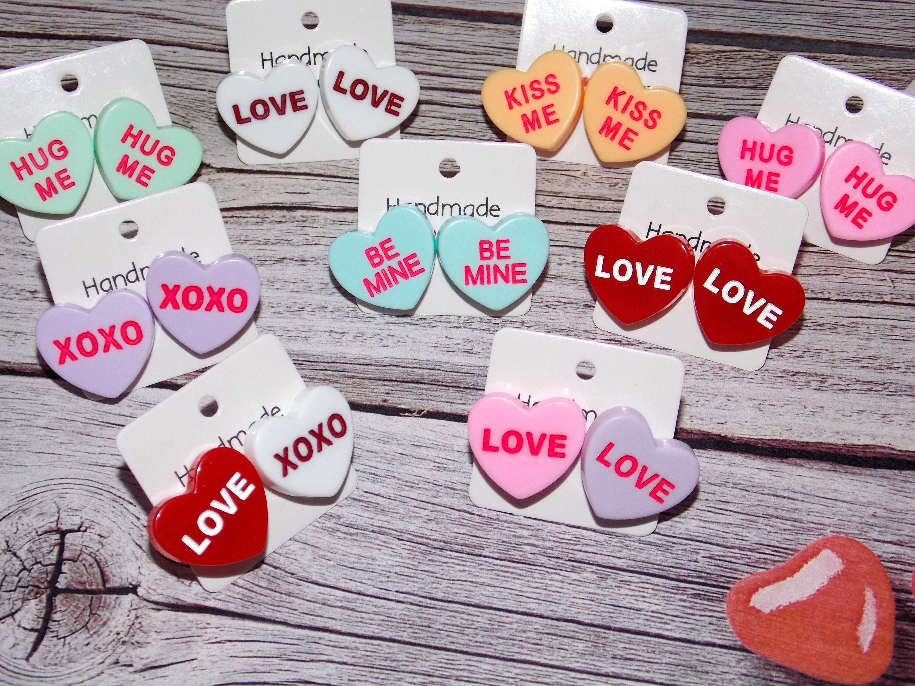 Conversation Hearts-Sweet heart-Valentine’s Earrings-Candy Heart Earring Stud-Heart Be Mine Gift-Hug Me Sweet-Colorful-Acrylic Mean Hearts