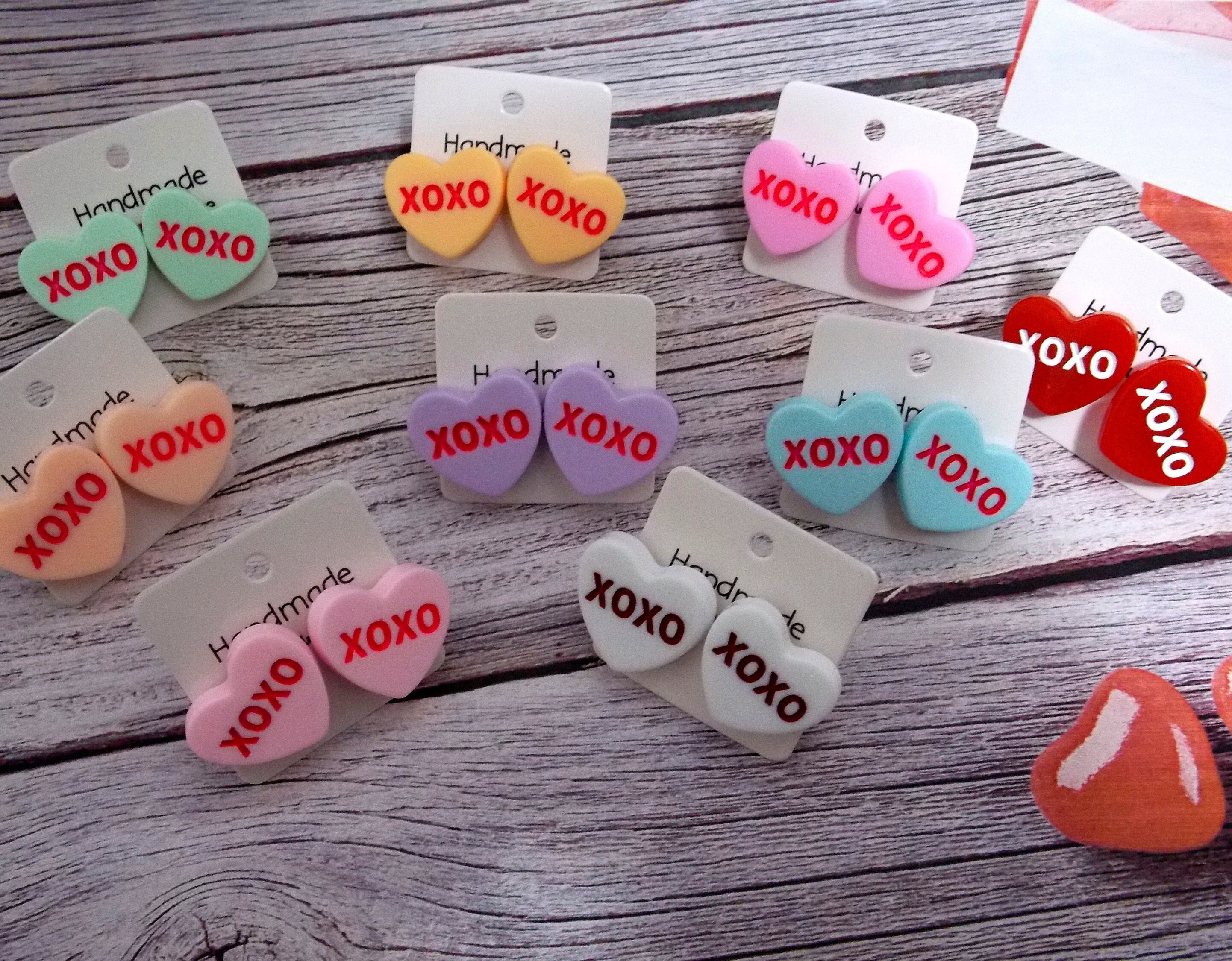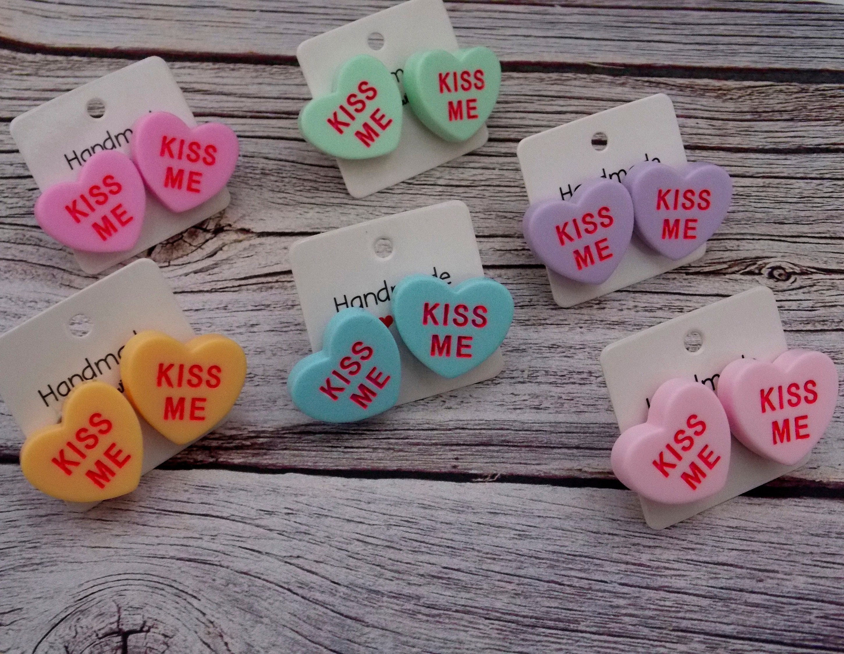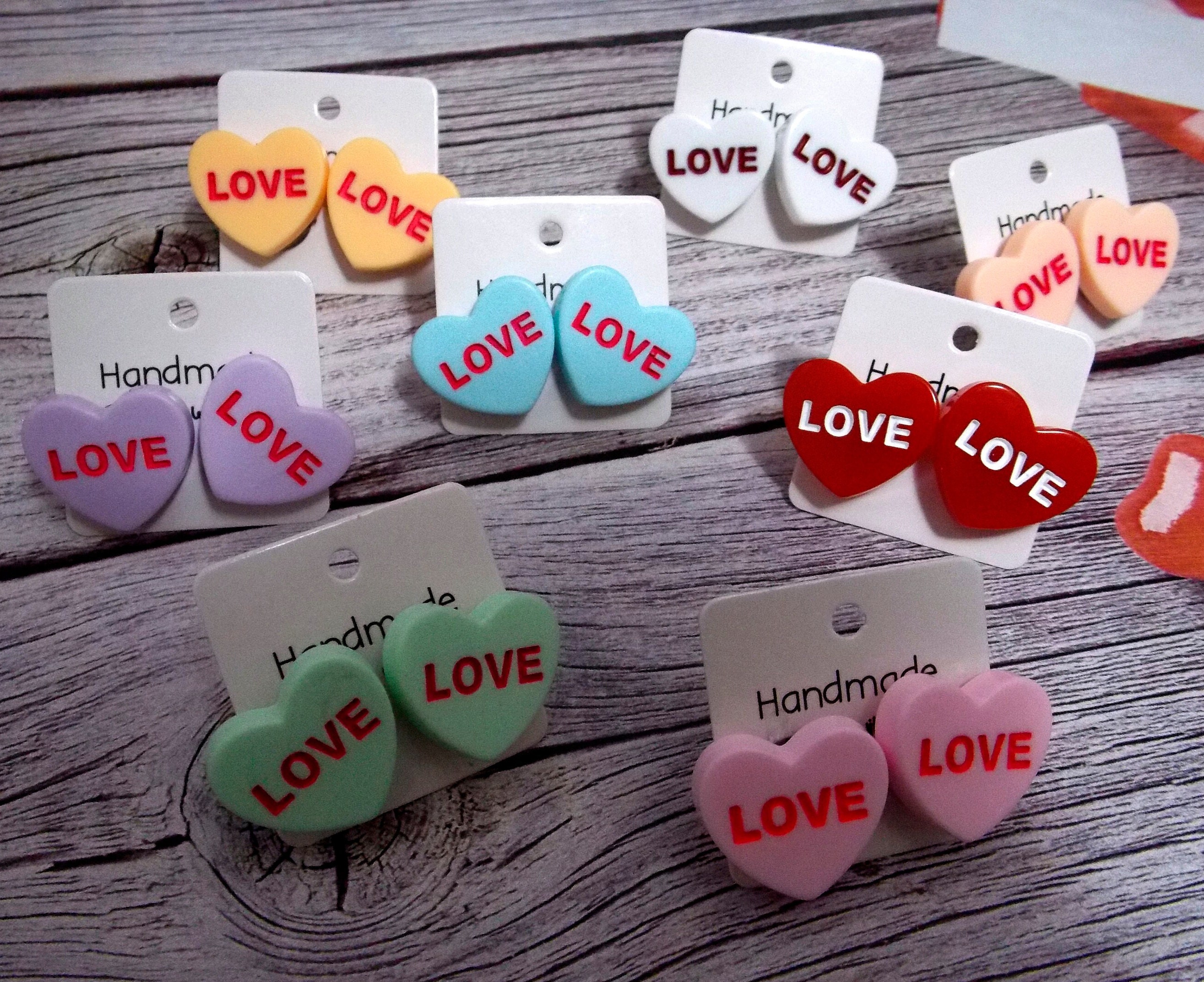 Conversation Hearts-Sweet heart-Valentine’s Earrings-Candy Heart Earring Stud-Heart Be Mine Gift-Hug Me Sweet-Colorful-Acrylic Mean Hearts