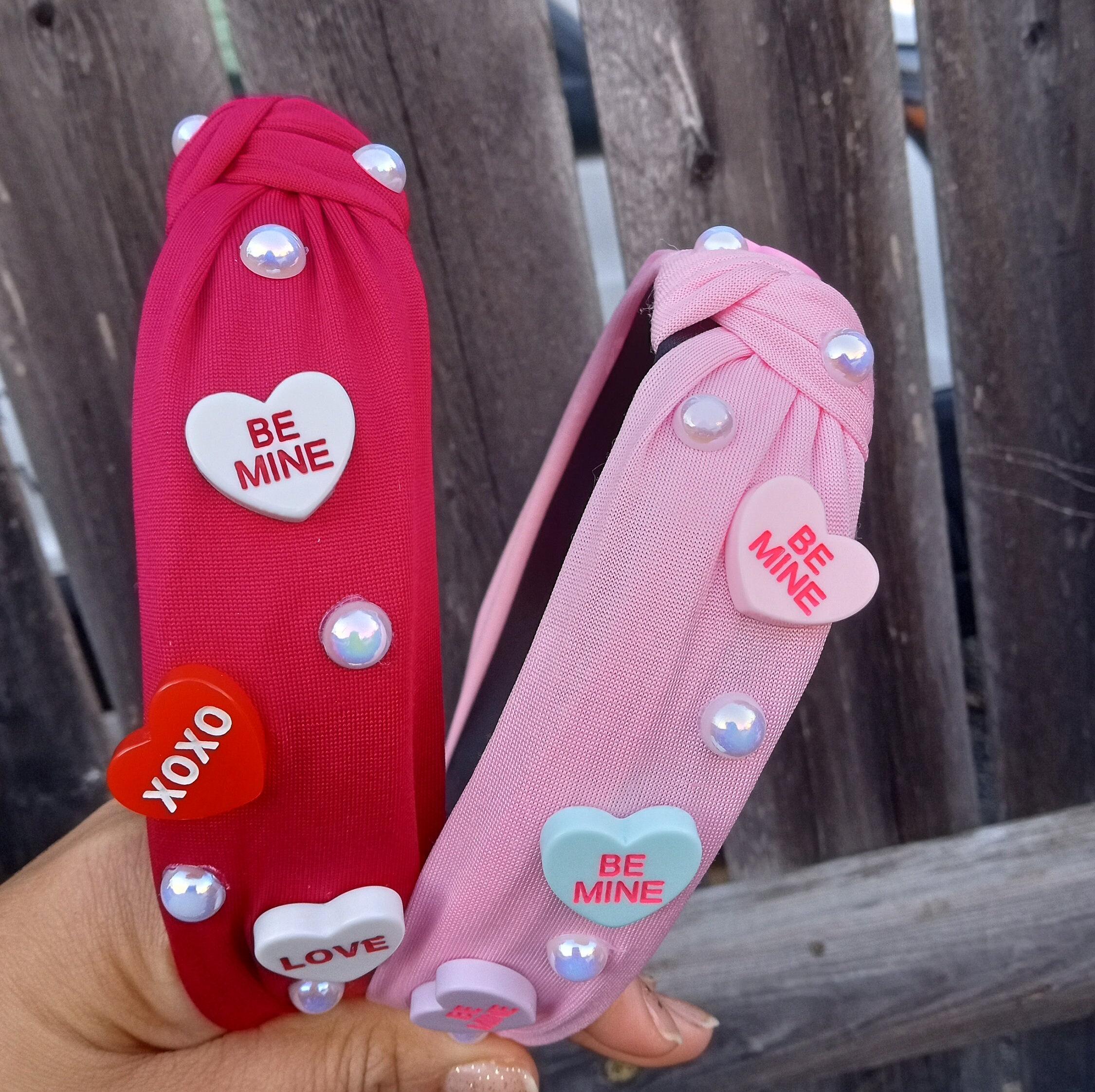 Thin and Soft Valentine's Day Knotted Headbands for Girls Hearts Conversation-Red,Pink,White-Women-Accessories Best Friend GiftCandy Hearts