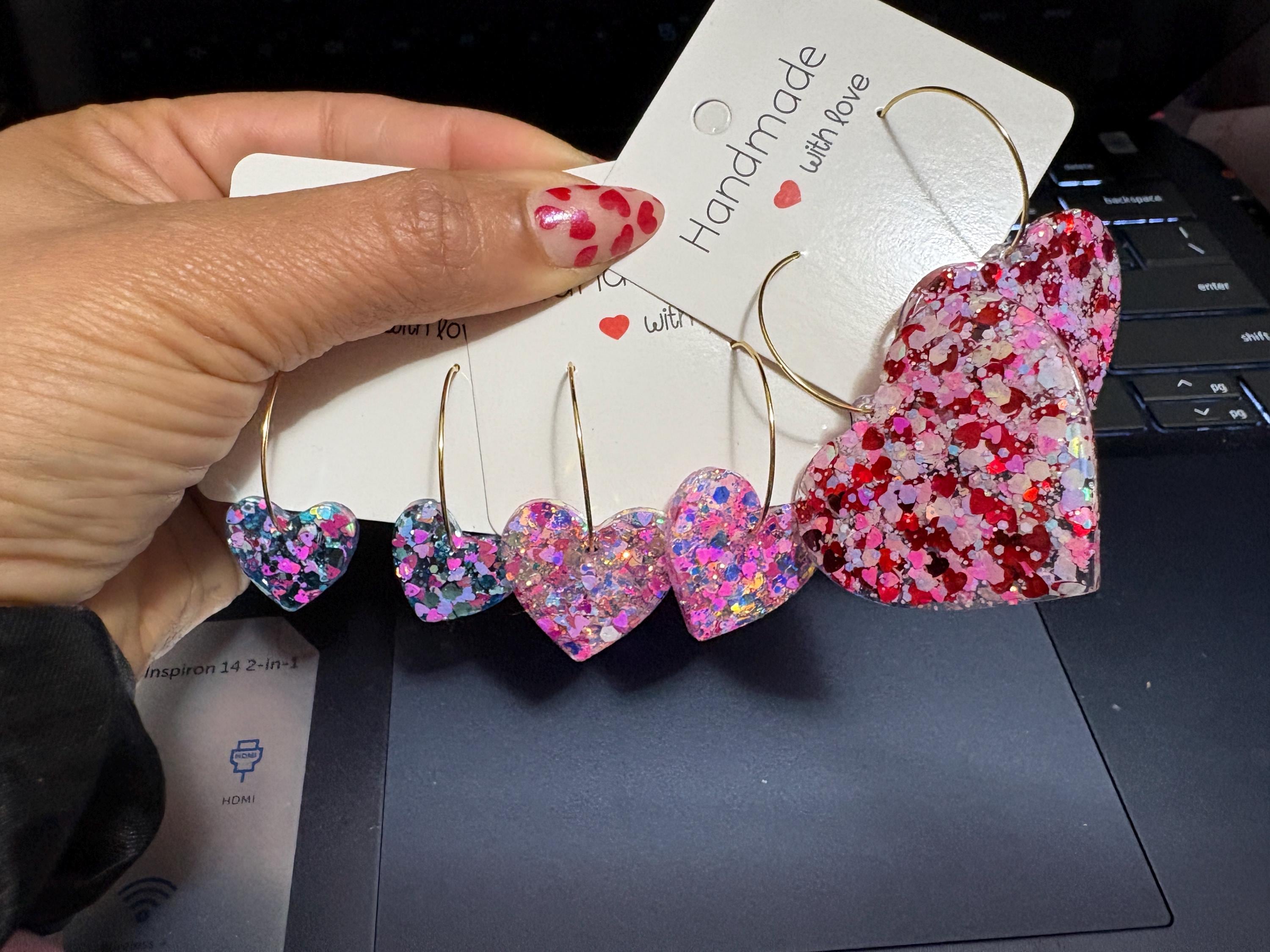 12 + Colors-Resin Glitter Earrings Hearts-Valentine’s Earrings-Confetti Heart Earring-Sweet-Colorful-Valentines gifts for women-Present-