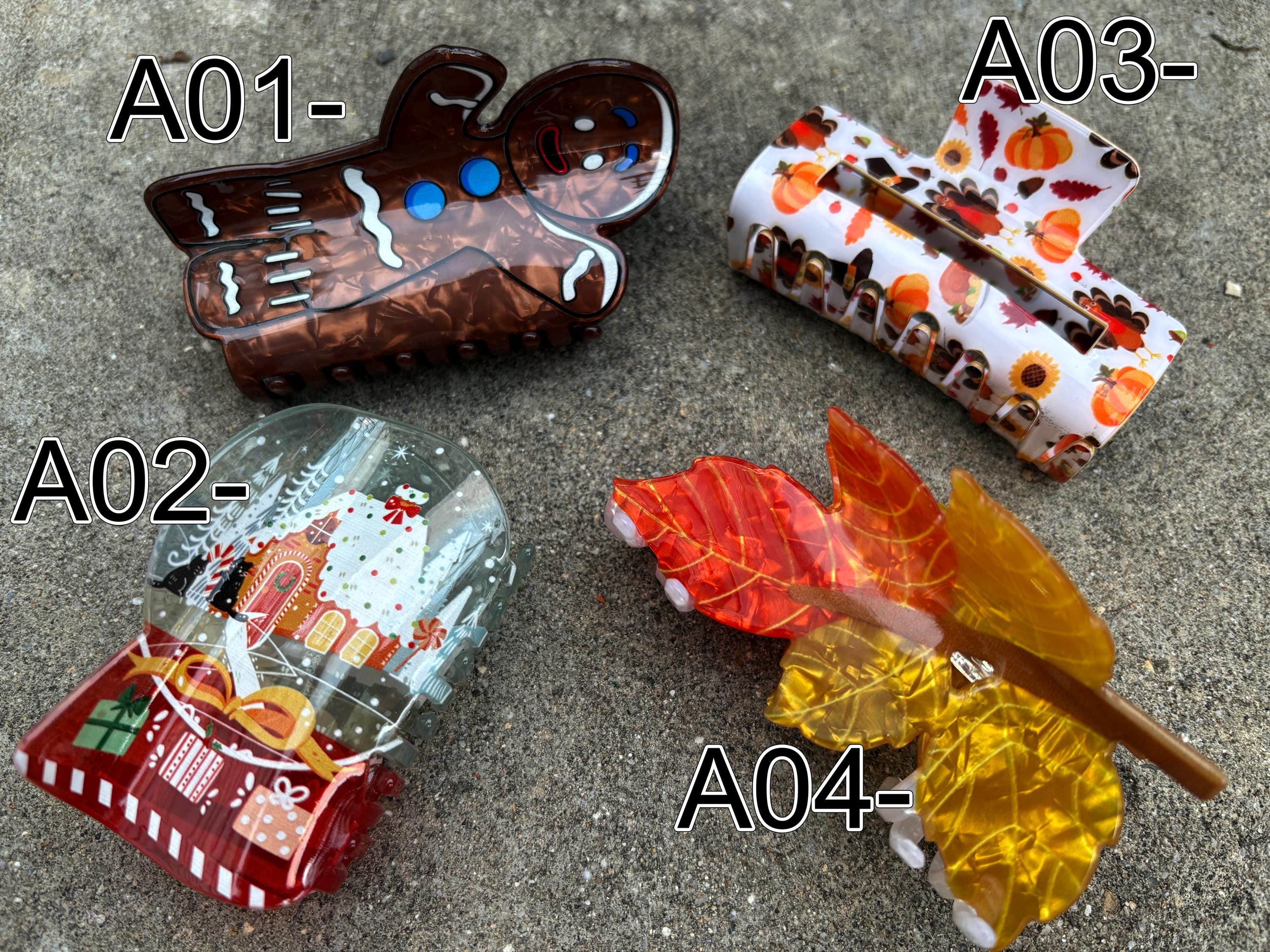 Christmas Hair Claw-Santa With Christmas Wrapping-Big Gingerbread-Snowman-Tree-Grinch-Hat-Women Girls-Clips-Winter-Party-Acetate-Text on Box