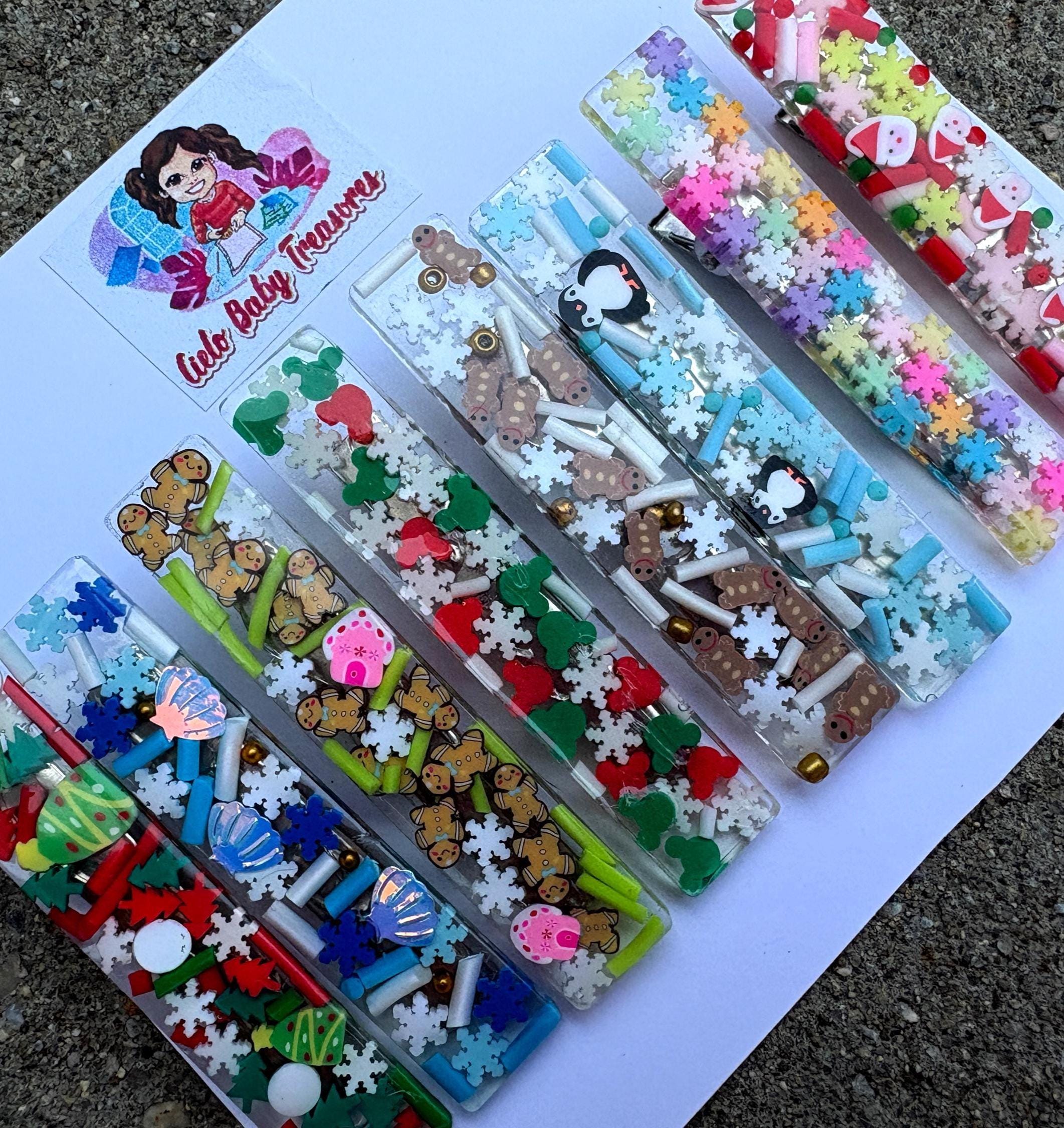 Personalized-Christmas Tree-Gingerbread-Resin Rainbow Sprinkles-Penguins-Accessory-Name Barrette Snowman-Snow-Santa-Gloves-Holiday Party, Mom Resin Rainbow Sprinkles Hair Accessory-Barrette Sprinkle Party Birthday Clip-Sprinkle Resin Clip, Birthday Clip for Girls-Gifts for Girls-