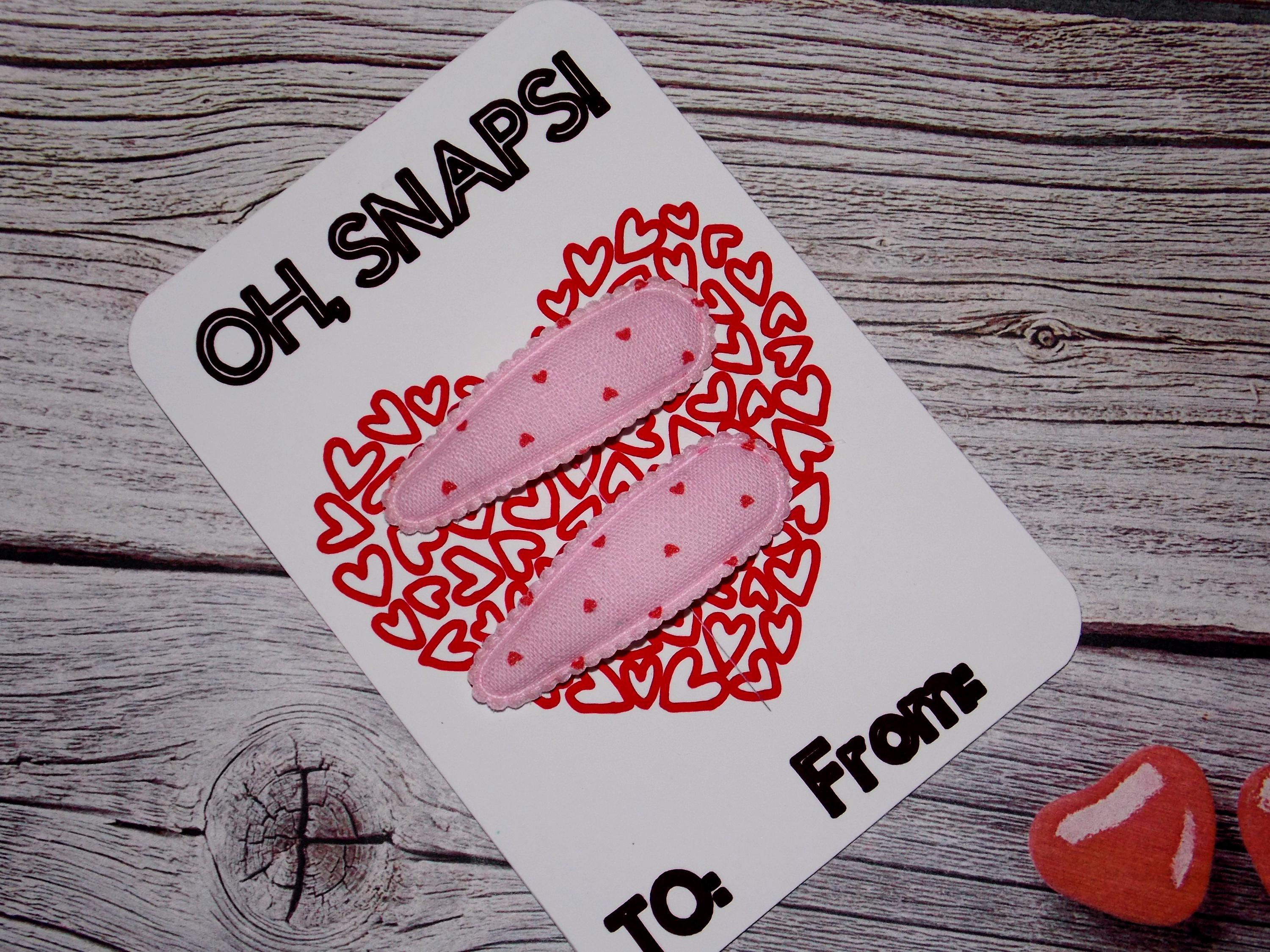 Set of 2 Pink Snap Hair Clips with Red Hearts-TO FROM-Valentine’s Day-Clip-Baby Clip Not Slippery Loop-Mini Clip-Baby Barrettes-Toddler Clip