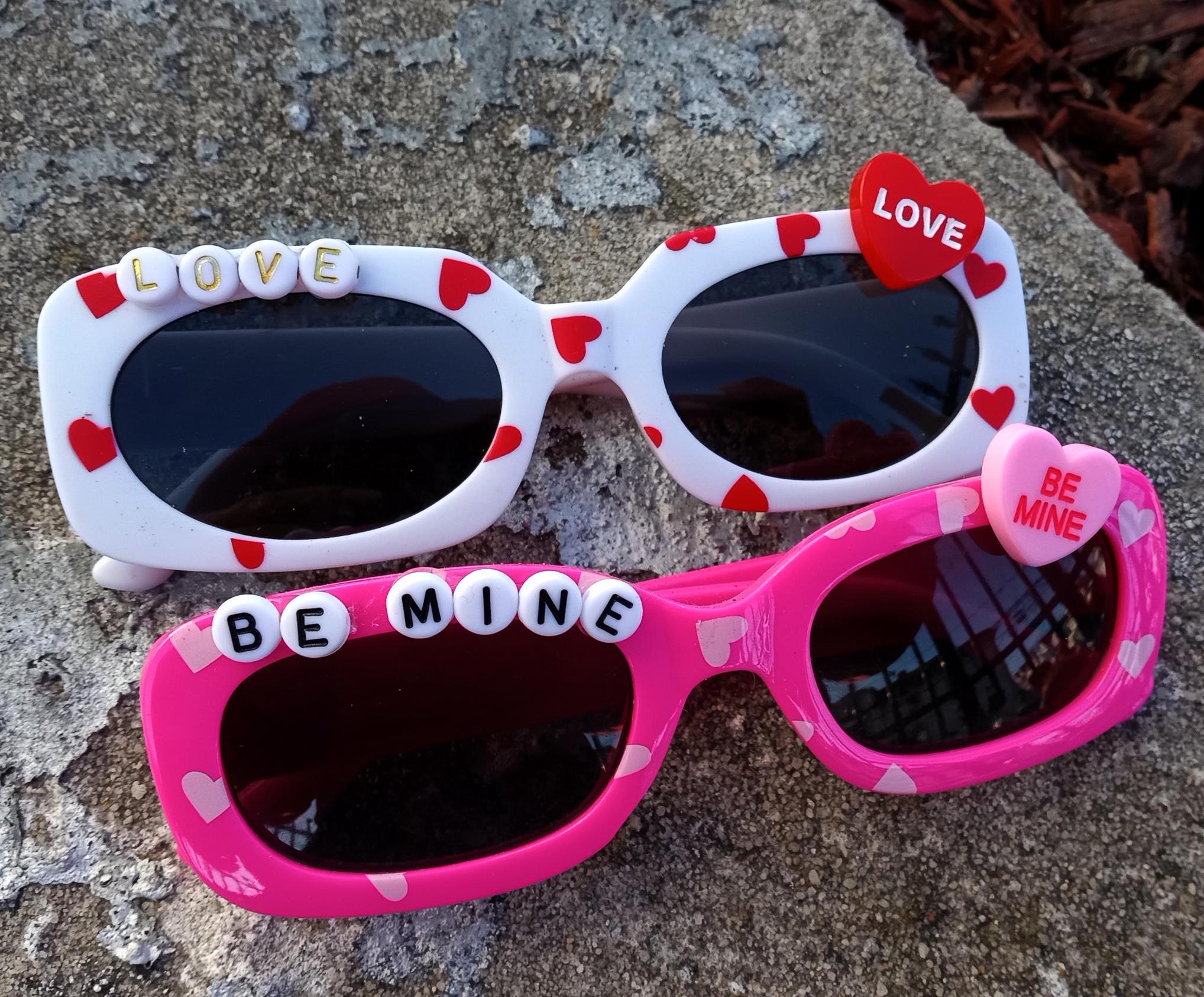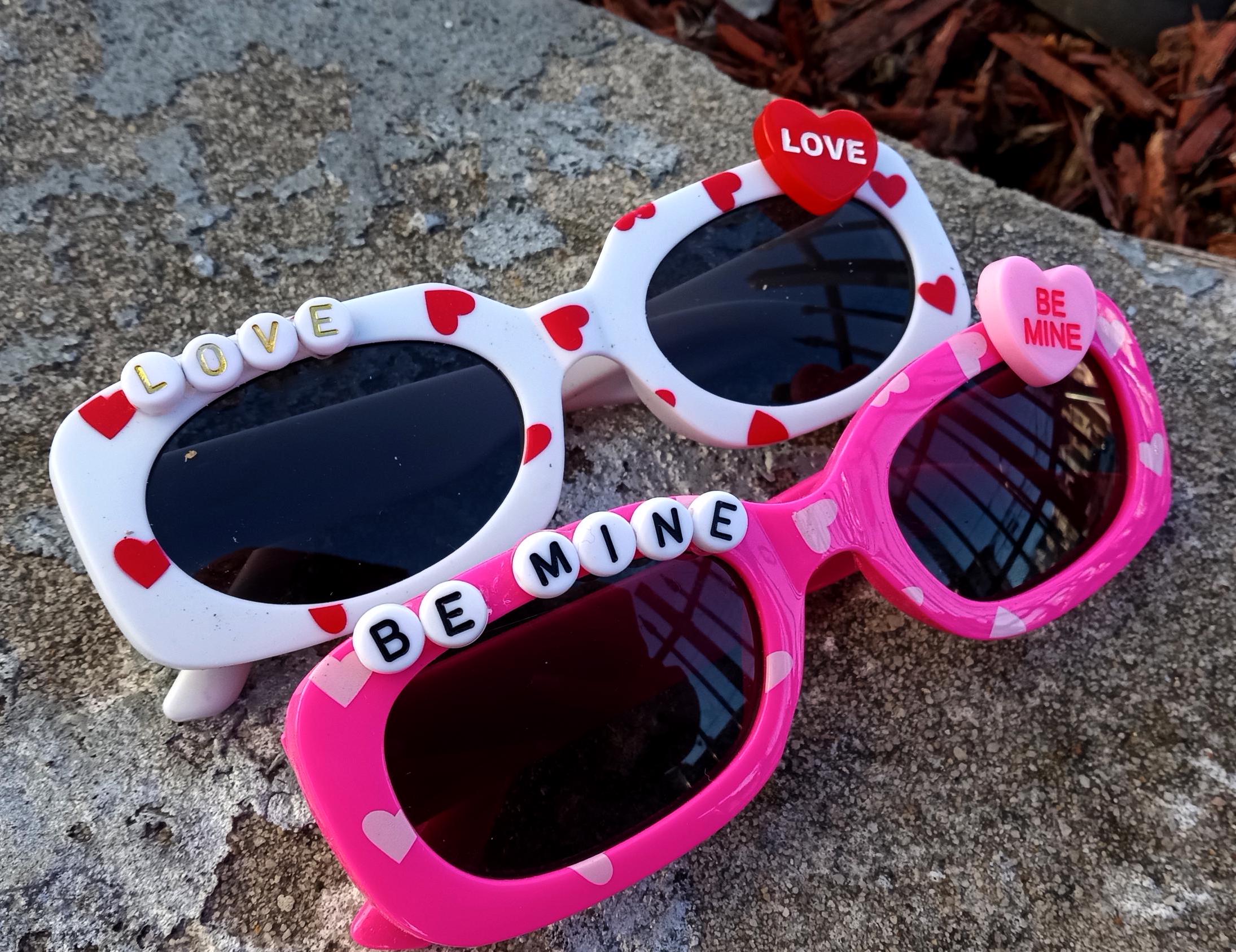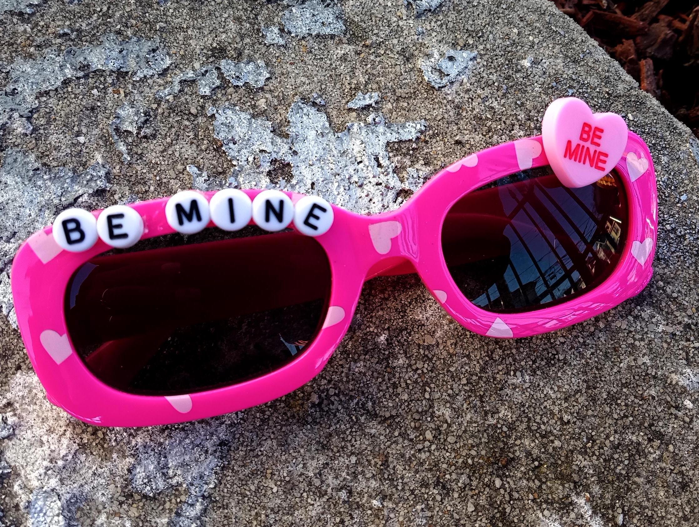 Cute Valentines Sunglasses with Hearts/Pink Be Mine or White Love/Personalized/Girls Fashion Glasses/Funny Baby Birthday/gift kid