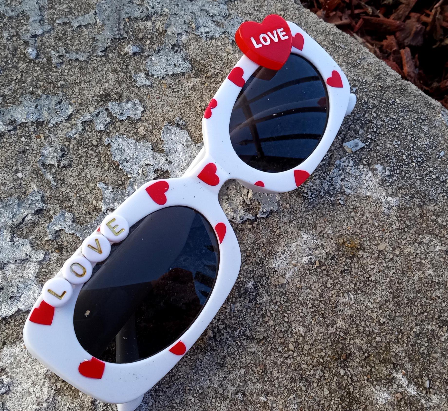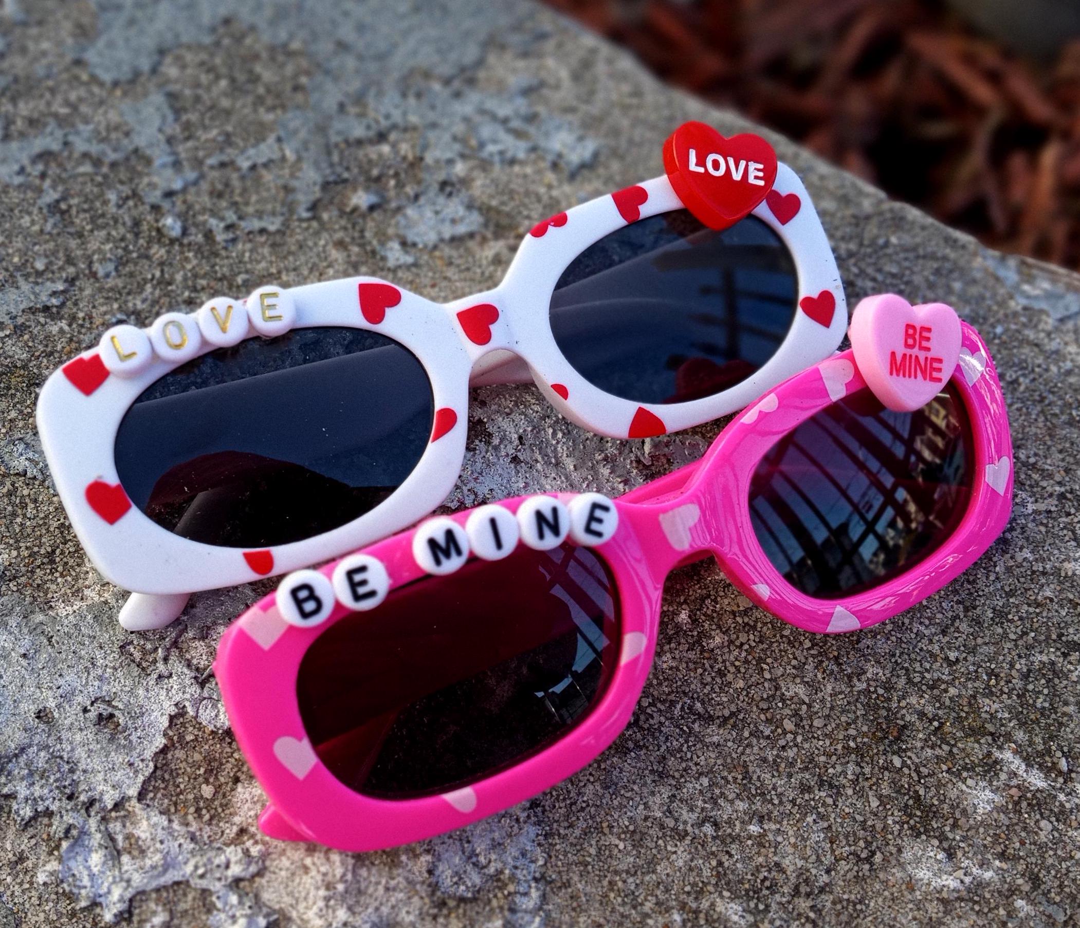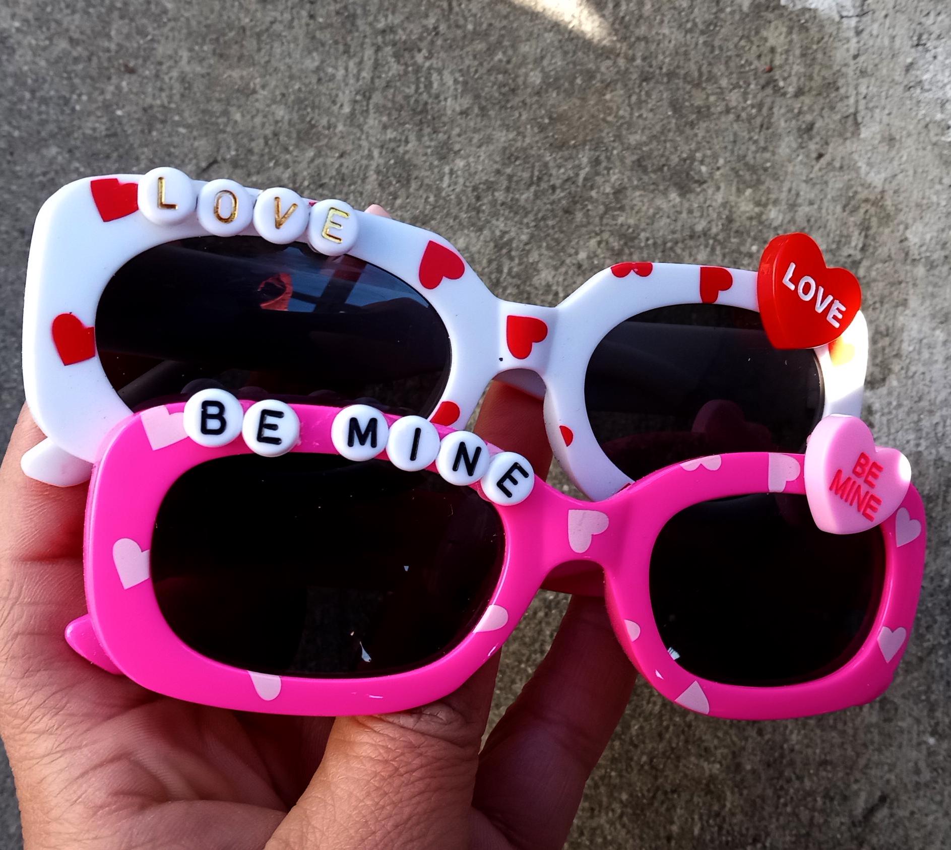 Cute Valentines Sunglasses with Hearts/Pink Be Mine or White Love/Personalized/Girls Fashion Glasses/Funny Baby Birthday/gift kid