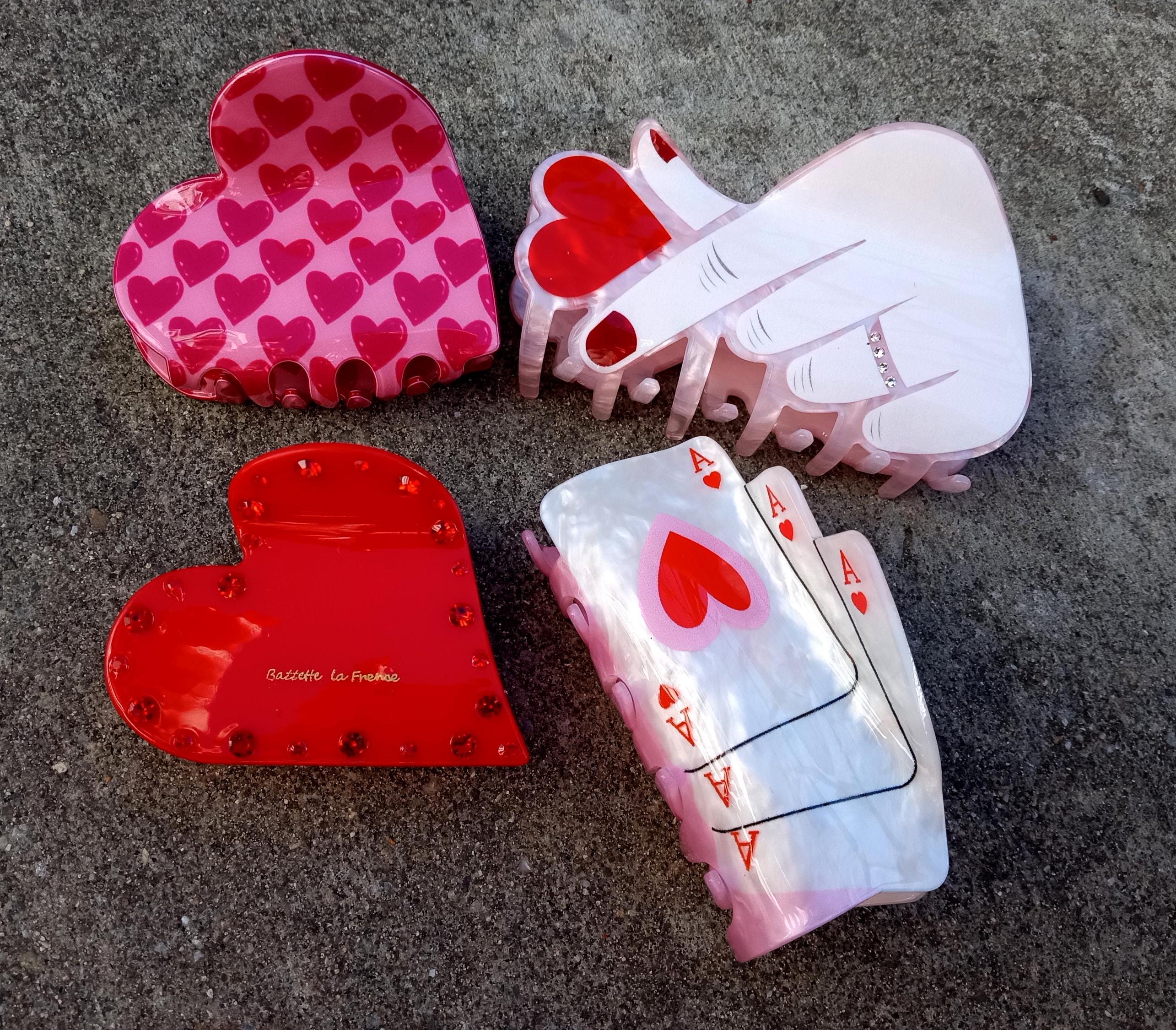 🎀 Valentine Hairpin-Hair Clips Love-Pink Acetate-Red Heart Acrylic claw-hand with heart Plastic-Resin-Accessories-Letter Clip-Barrette