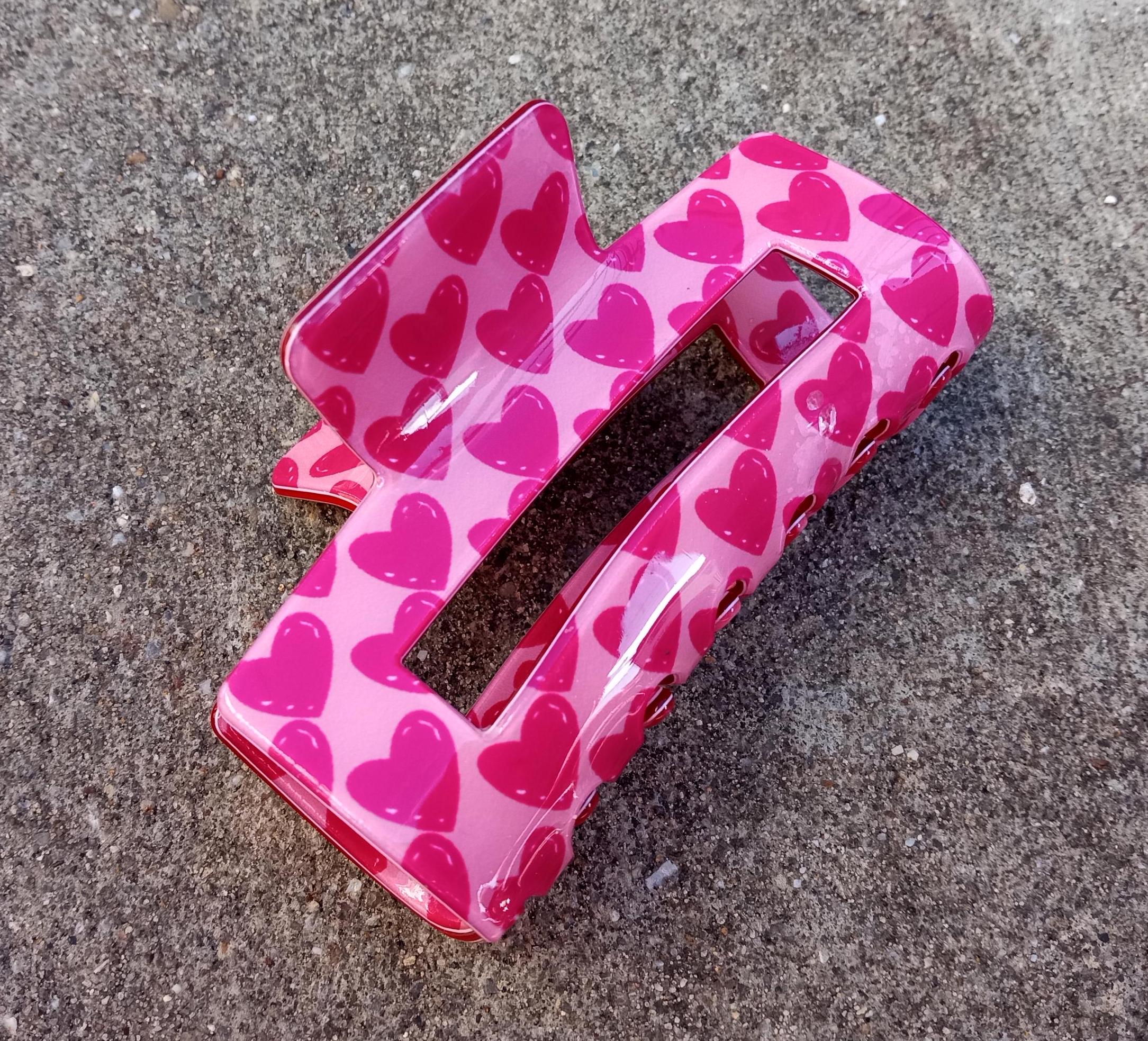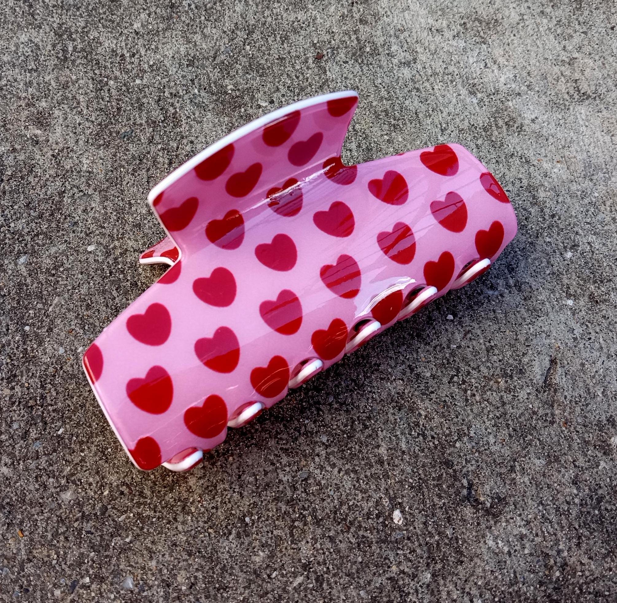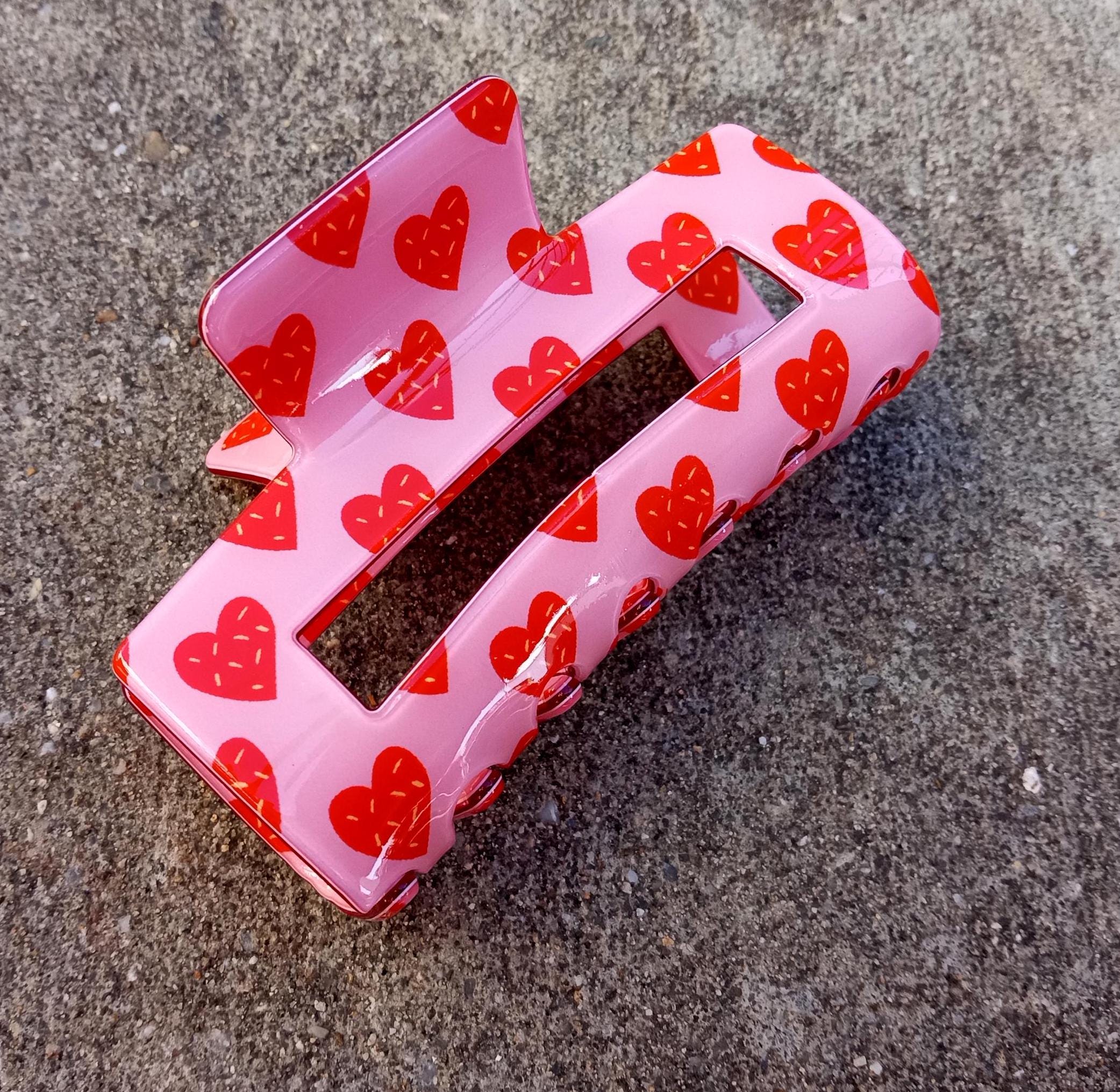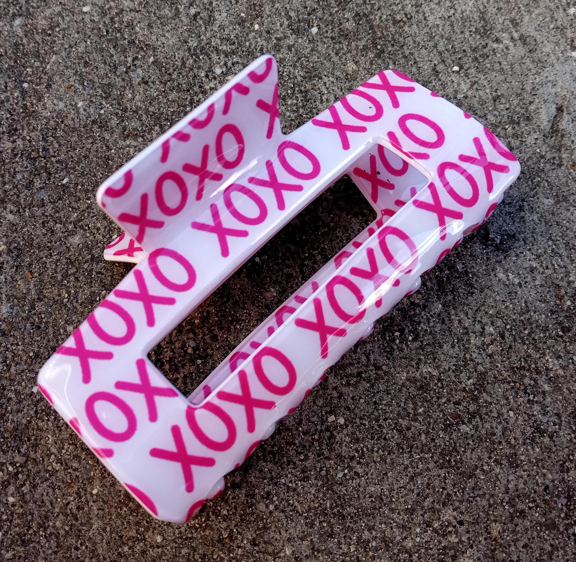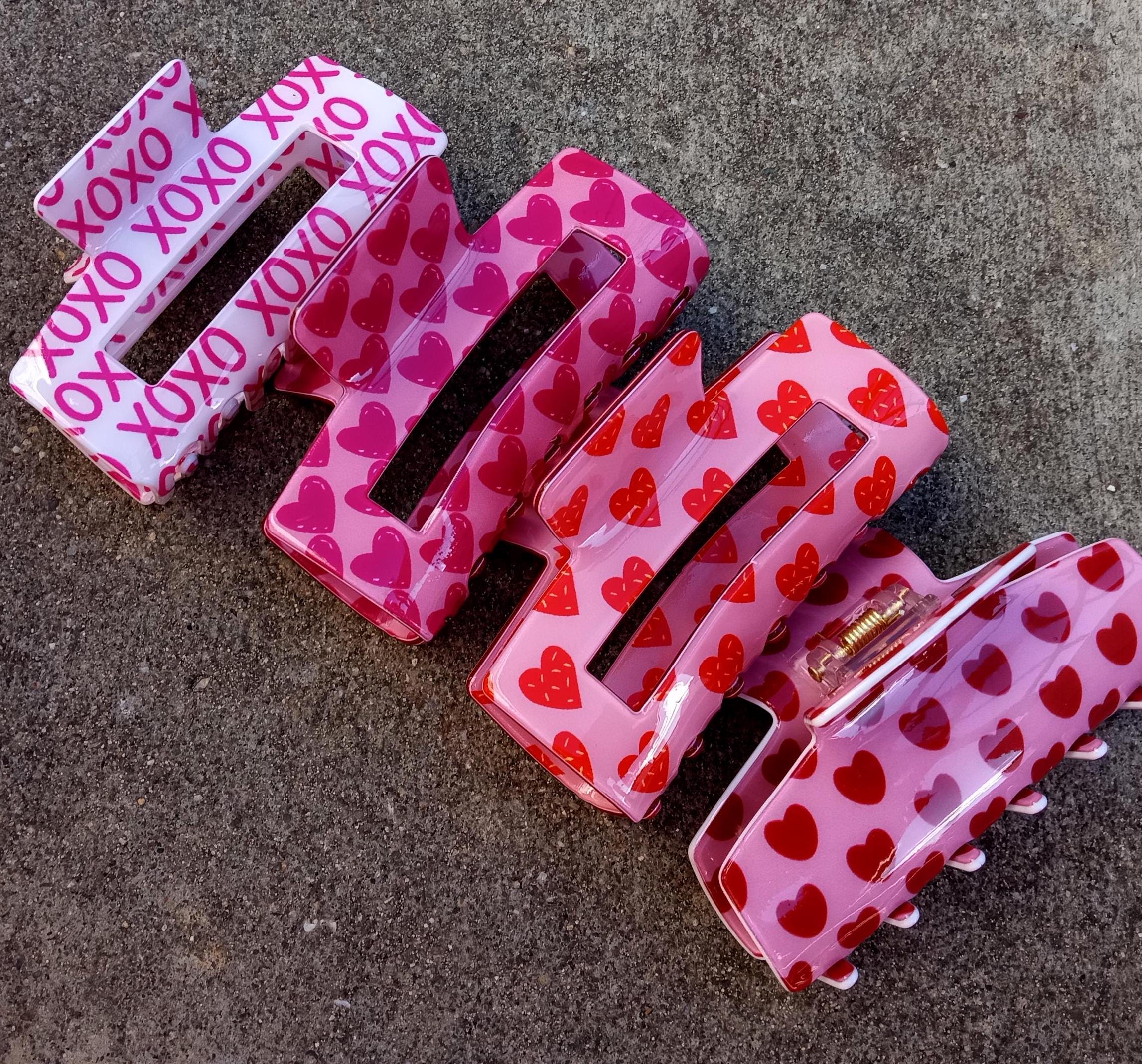 White XOXO Valentine-Acetate-Red Heart Acrylic claw-Hairpin-Hair Clips Love-Pink Plastic-Resin-Accessories-Toddler Clip-Love Big Barrette