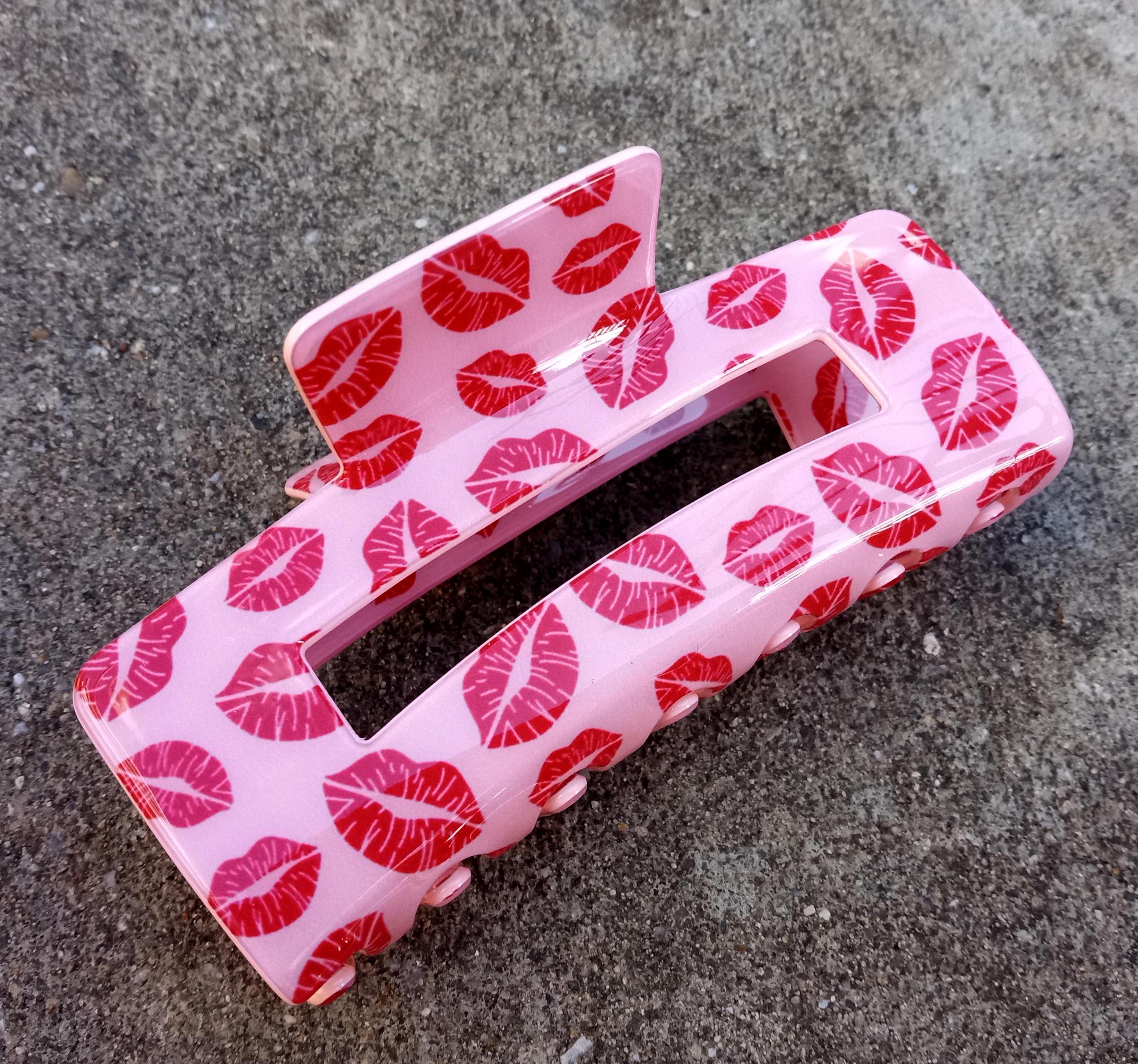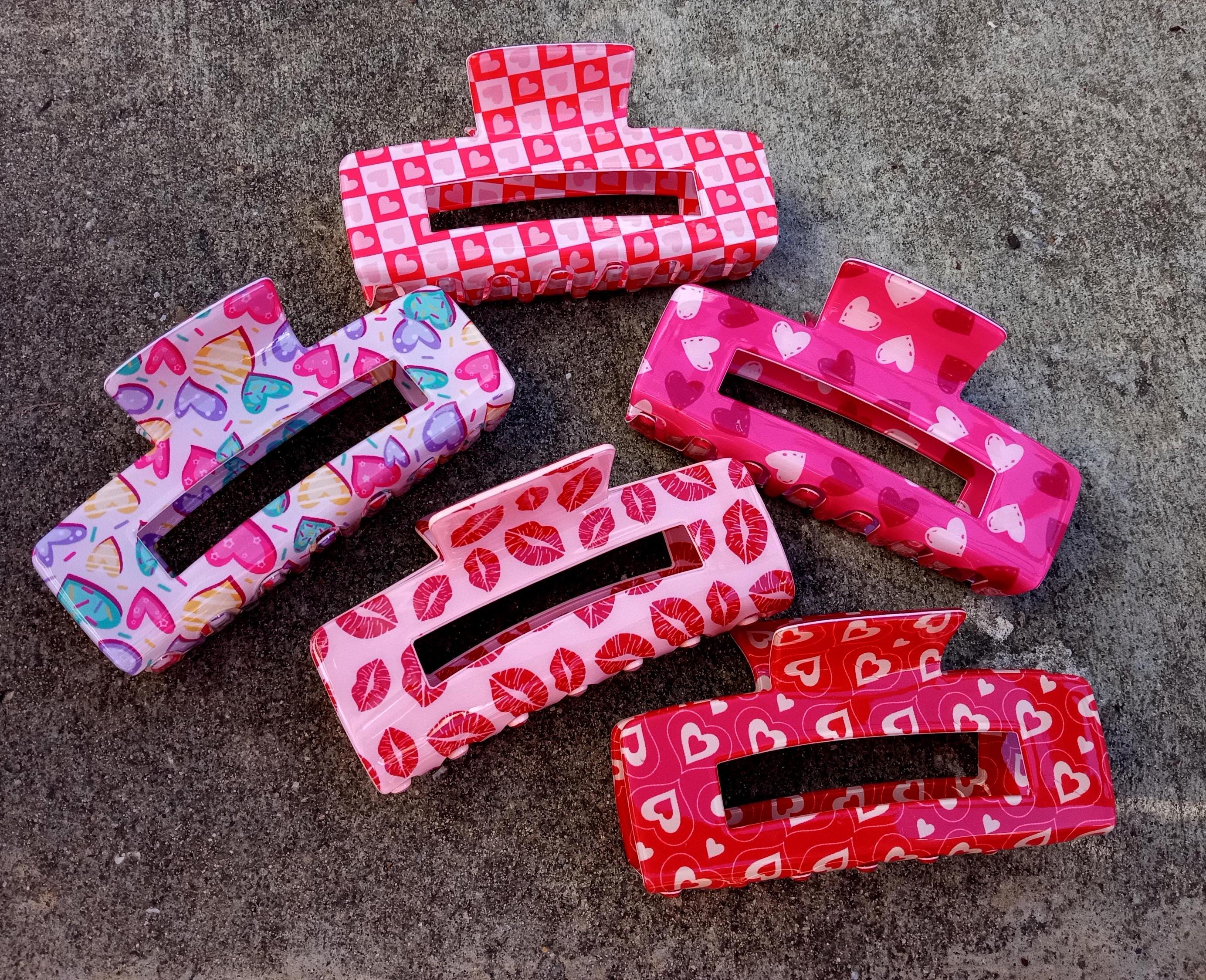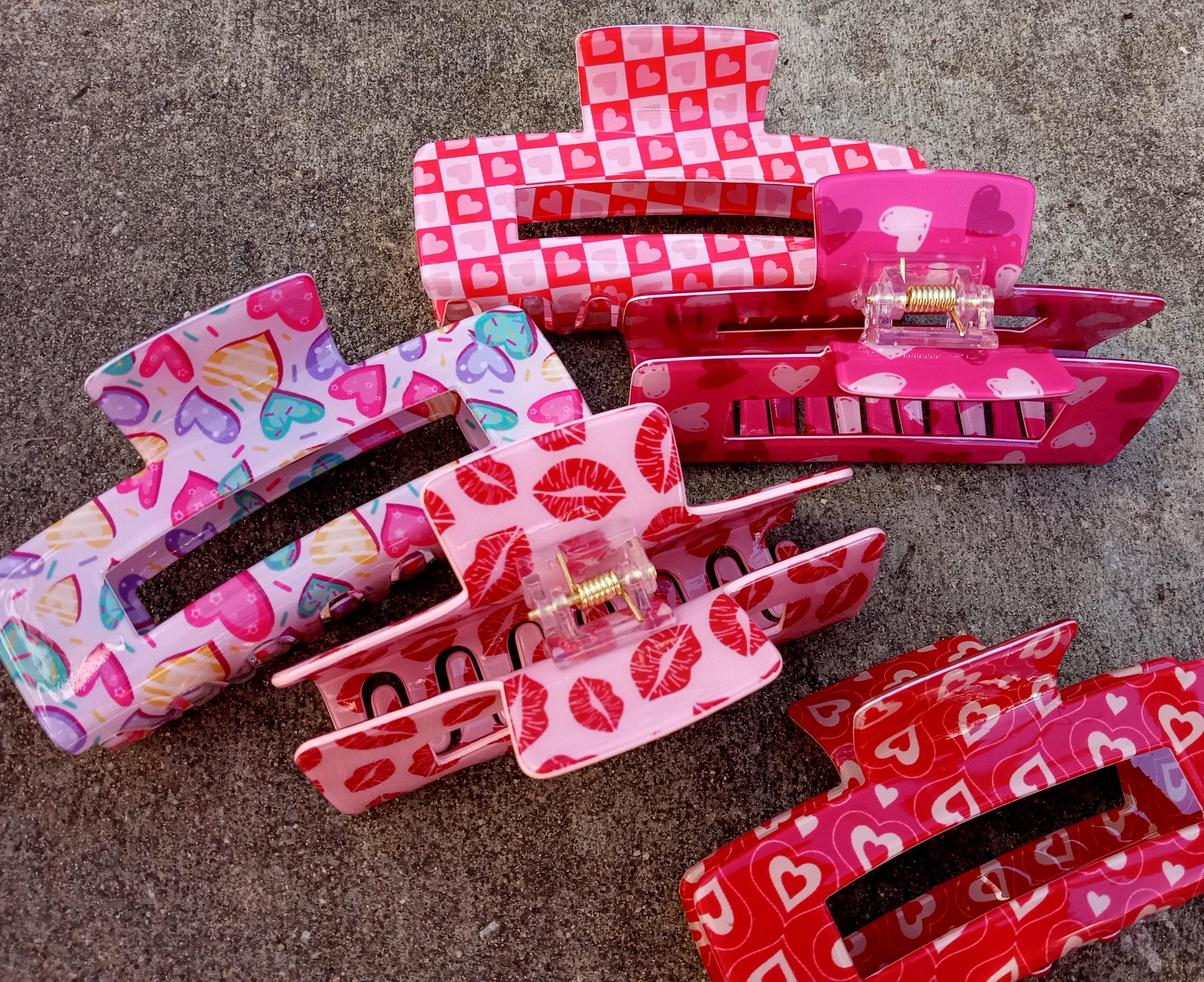 Red Heart Acrylic claw-Plastic-Lips Resin-Sprinkles Large Valentine Hairpin-Hair Clips Love-Pink Acetate-kisses Toddler Clip-Big Barrette
