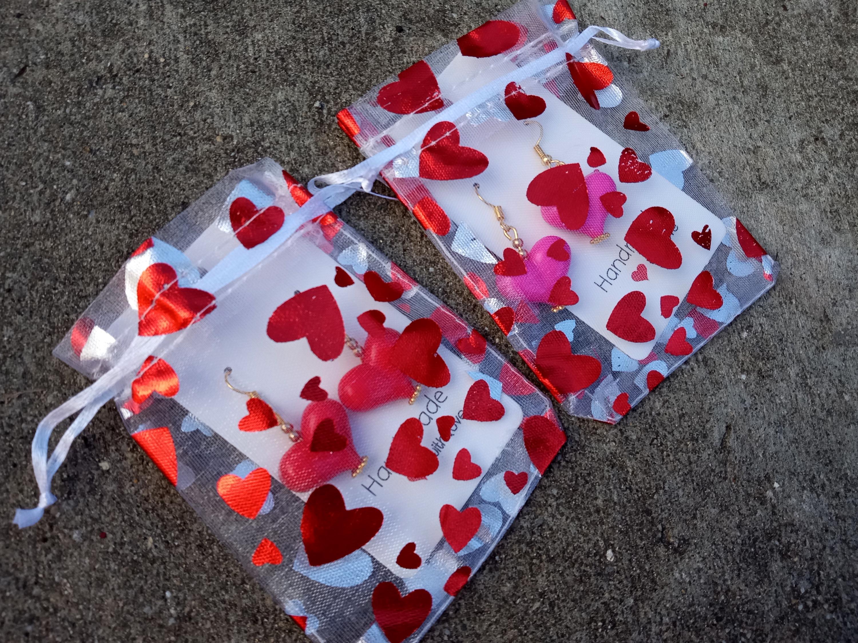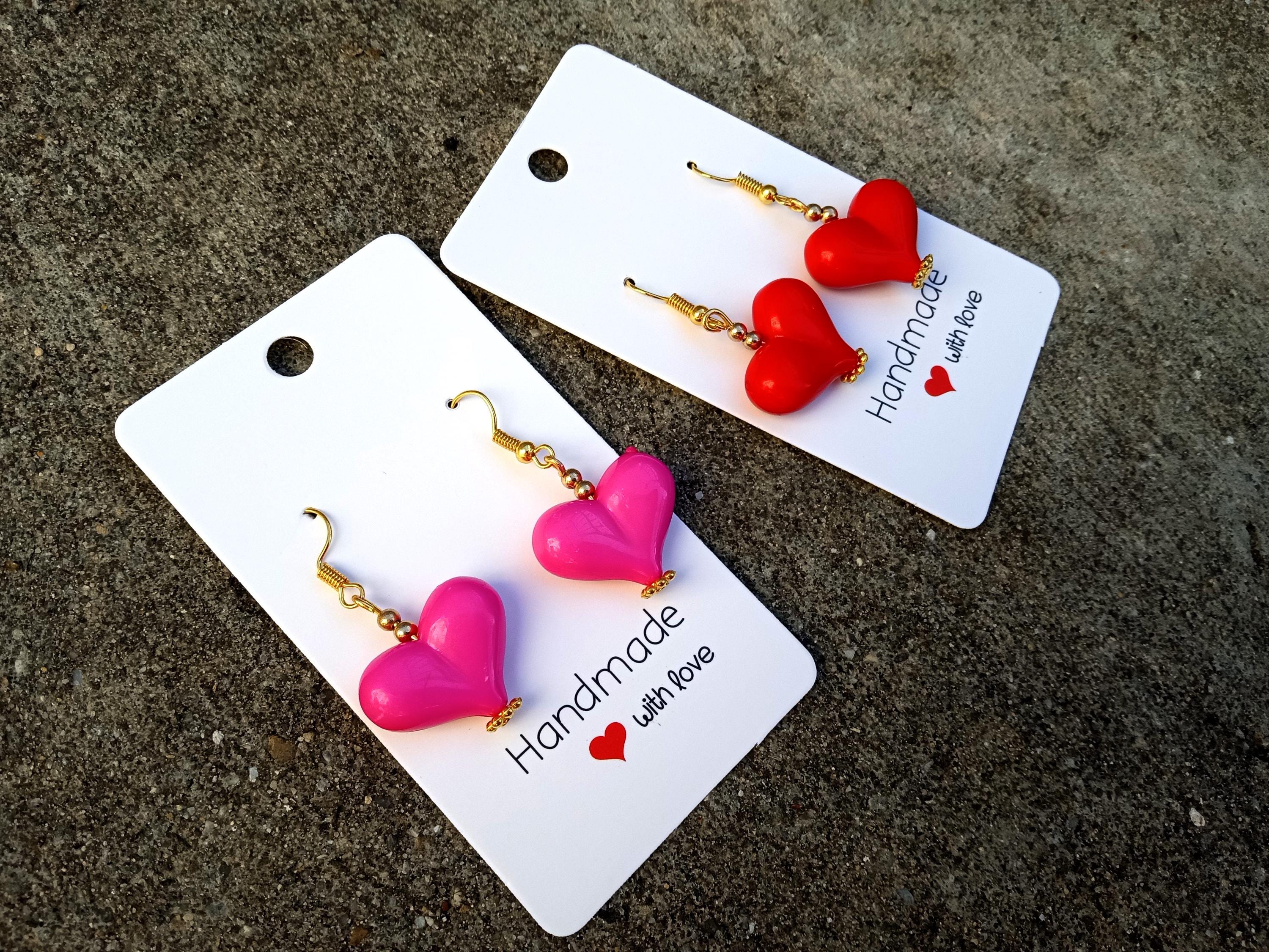/Red or Pink Earrings/Handmade Clay Earrings/Birthday Gift for Women/Resin Heart/Red Earrings/