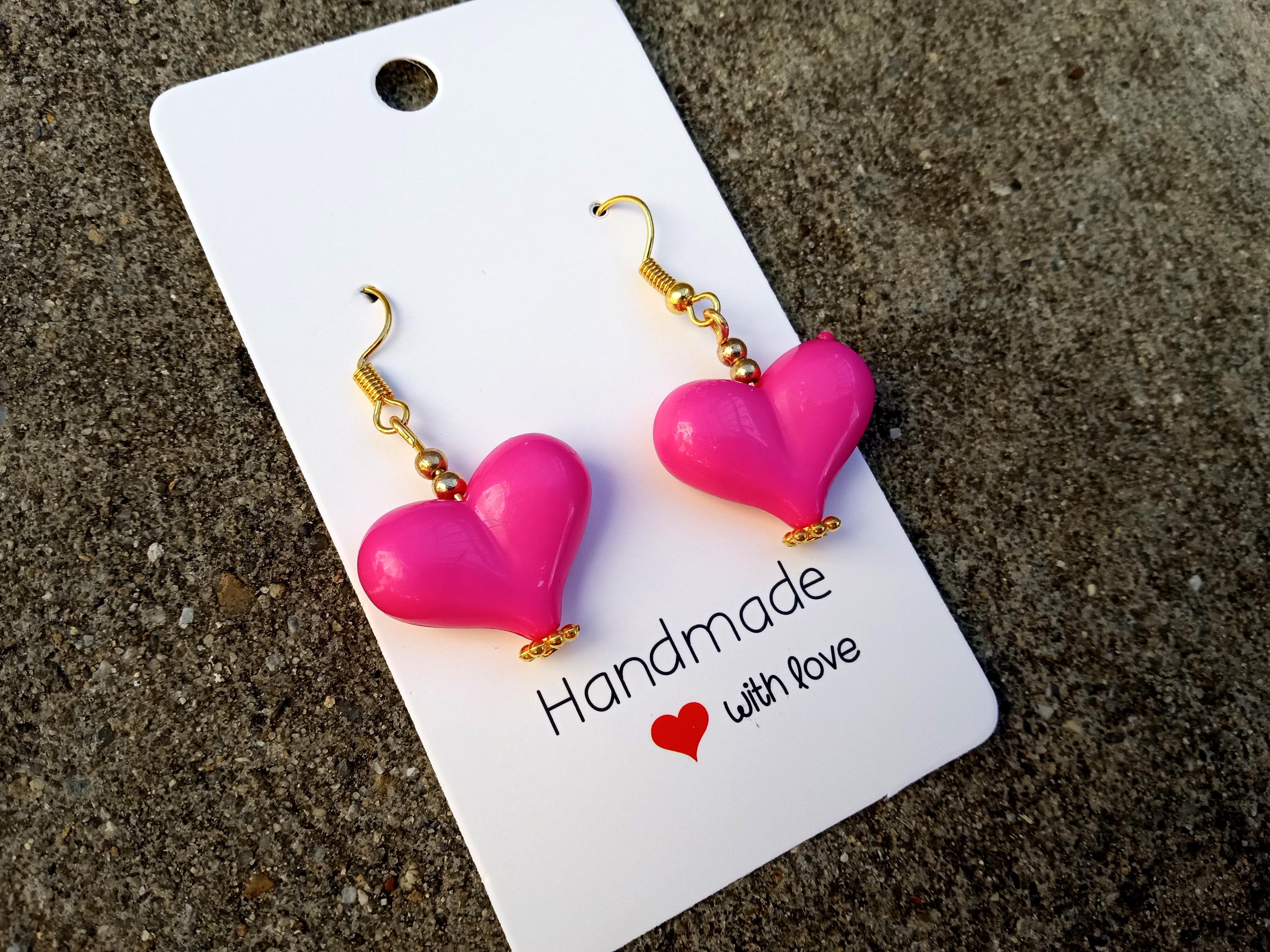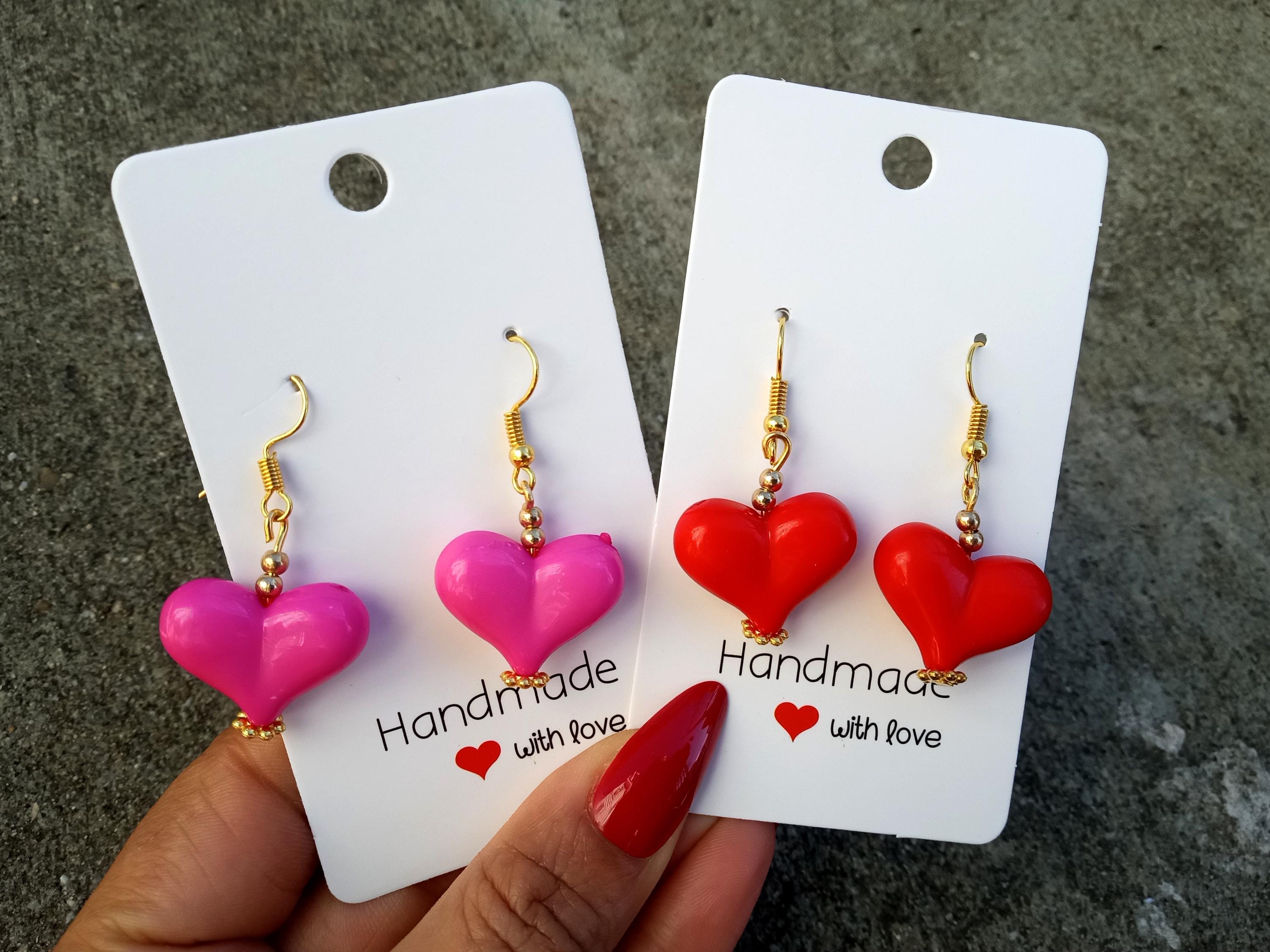 Cute Valentine's Day Heart Dangle Earrings/Red or Pink Earrings/Kawaii heart shaped Handmade Love Clay Earrings/Birthday Women/Gold Earring