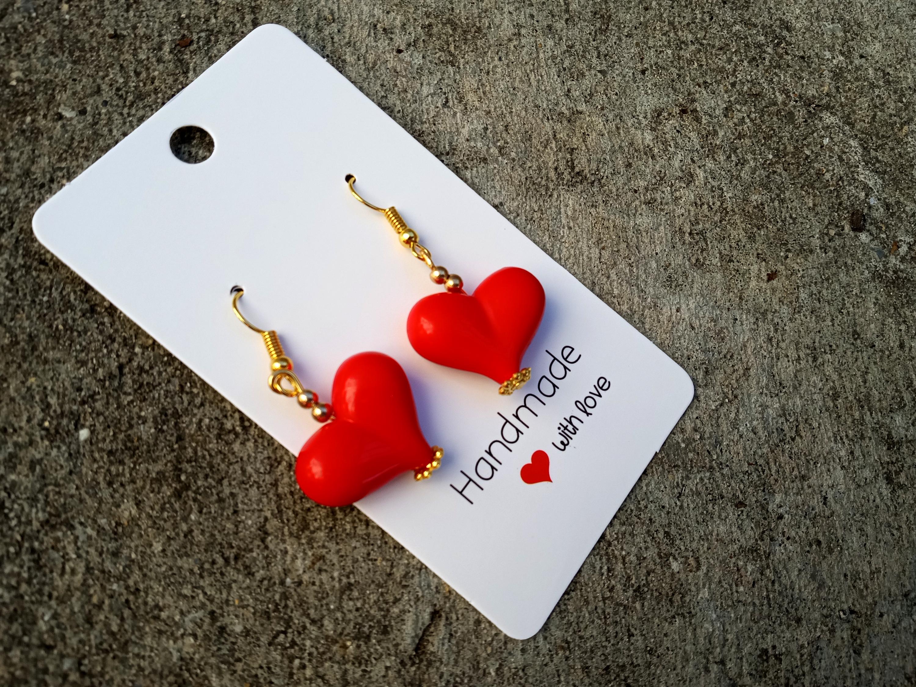 π Heart Earrings/Valentineβs Day /Kawaii heart shaped Love earrings in red.
