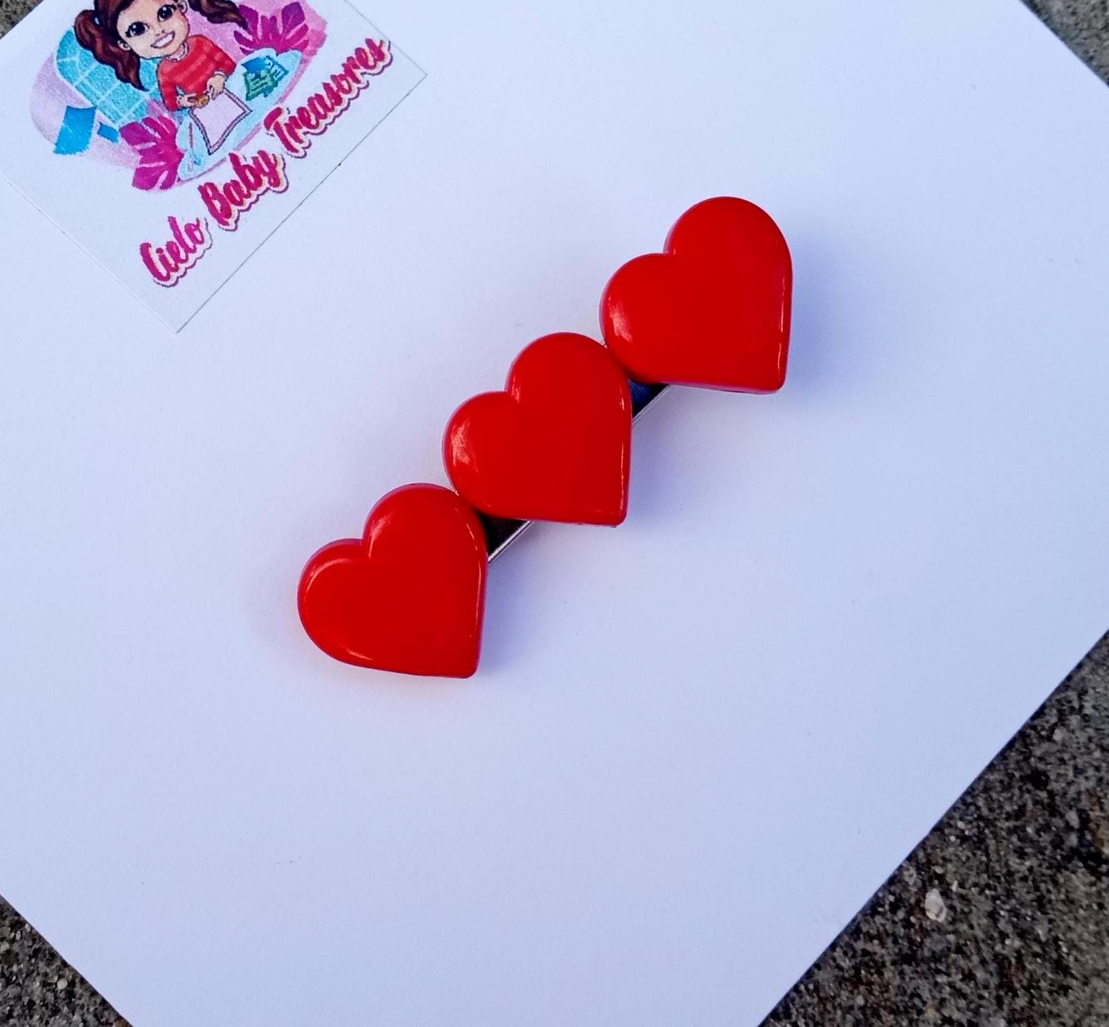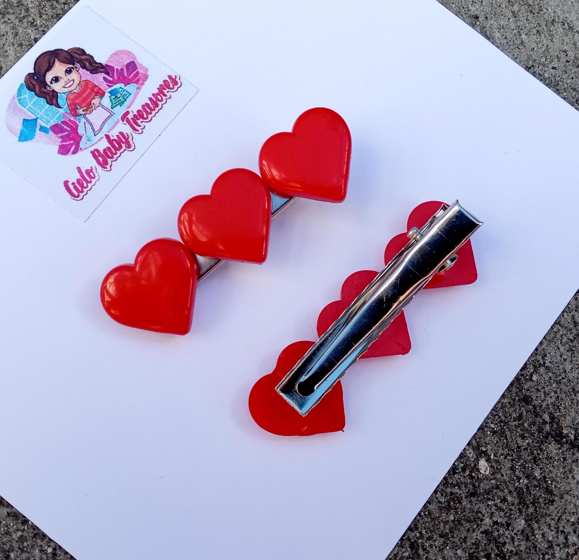 Red Hearts Love Large or Set 2 Alligator Clips-TO FROM-Clip-Girl Clip- Barrette-Toddler Clip-Accessories-Not Slippery-Perfect trimming bang