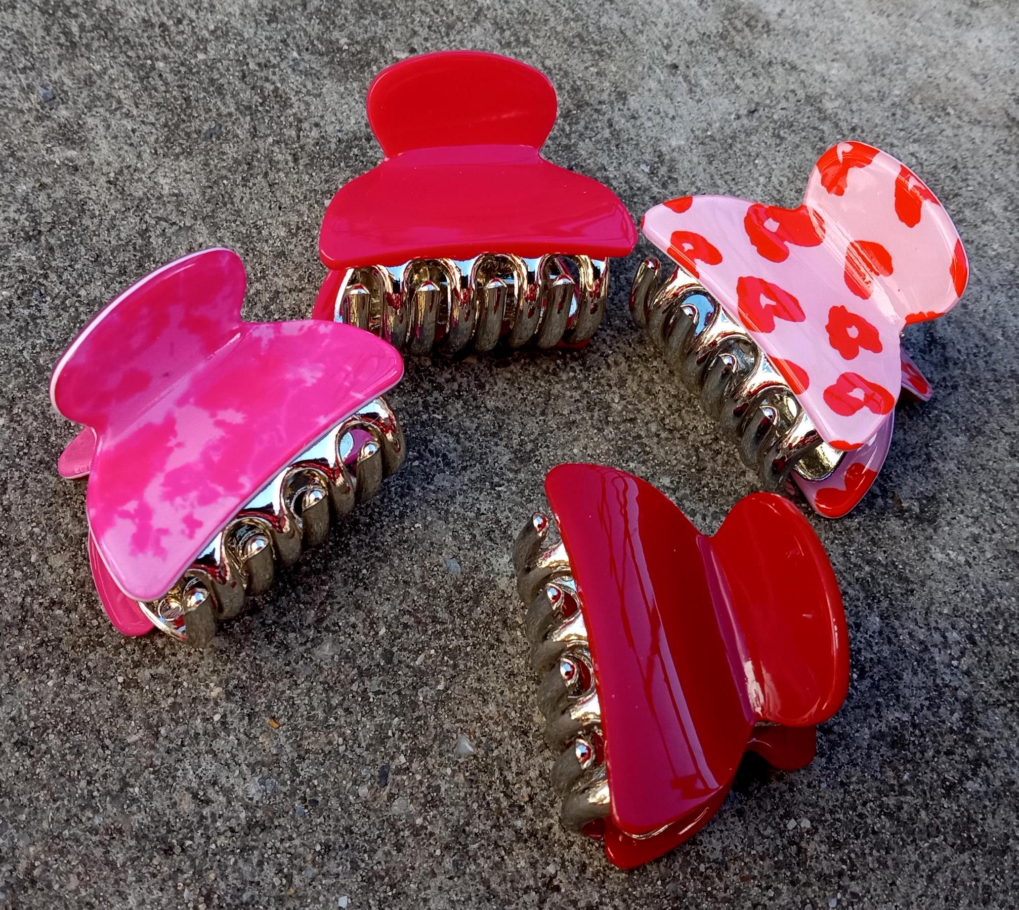 Valentine Hairpin-Hair Clips Love-Red ,Pink-Acetate-Heart Acrylic claw-Gold-Plastic-Resin-Plastic Accessories-Toddler Clip-Acrylic-Barrette