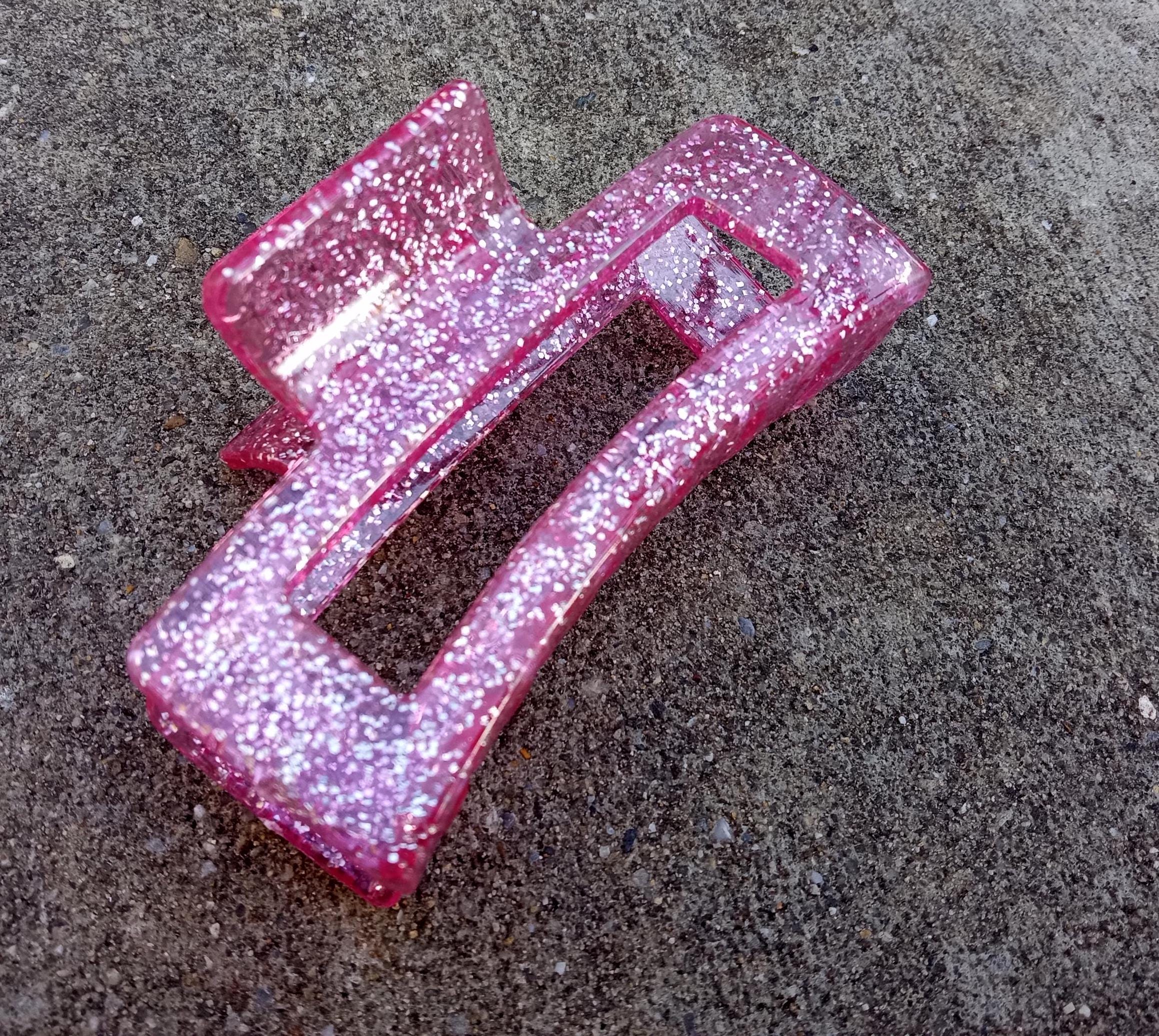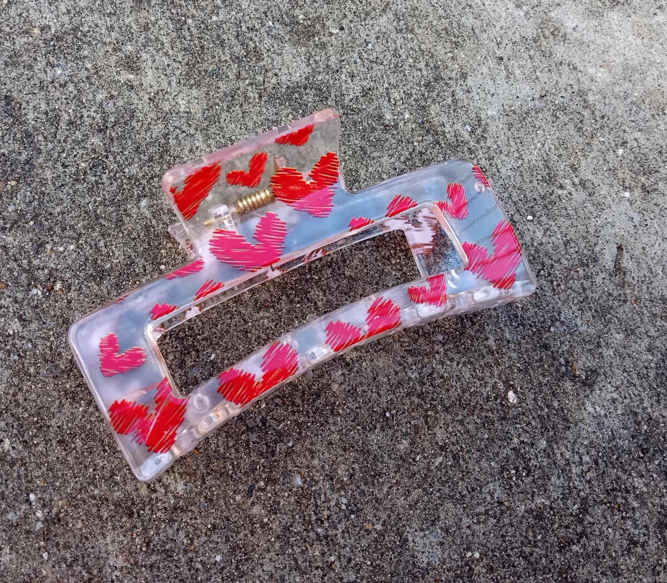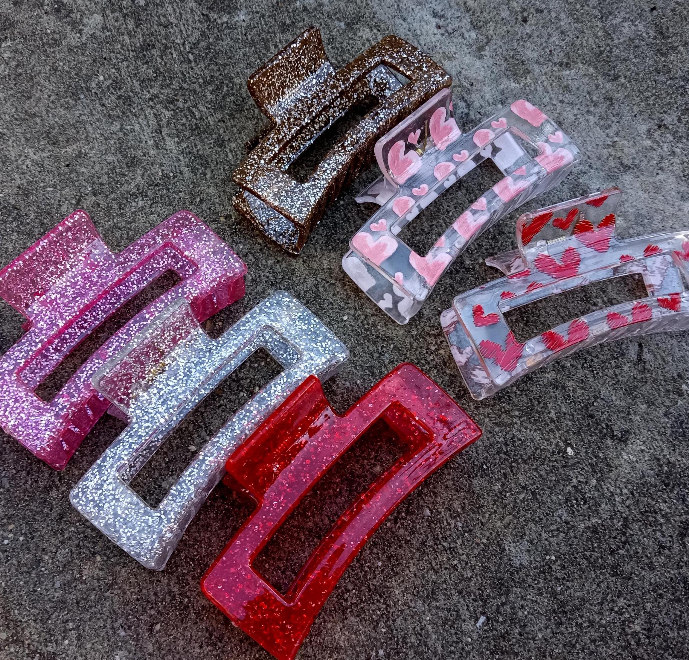 Glitter Valentine Hairpin-Hair Clips Love-Clear Acetate-Red Heart Acrylic claw-Pink Plastic-Resin-Accessories-Toddler Clip-Big Barrette