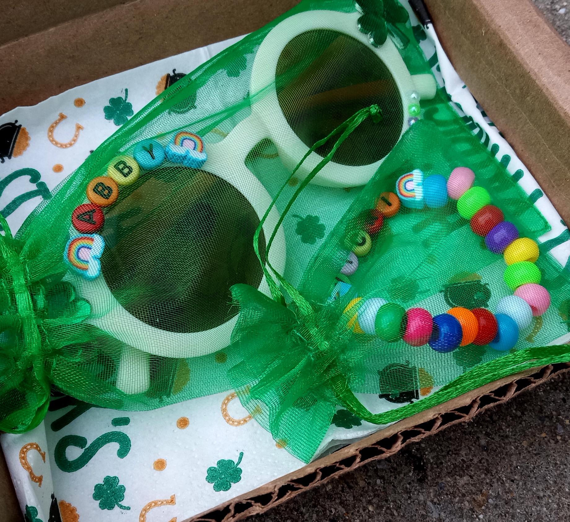 St. Patrickβs Day Bracelet and Sunglass-Party Shamrock Green/Personalized/Gift for girls Toddler/Rainbow Name Jewelry Girls/kids Gift/Custom