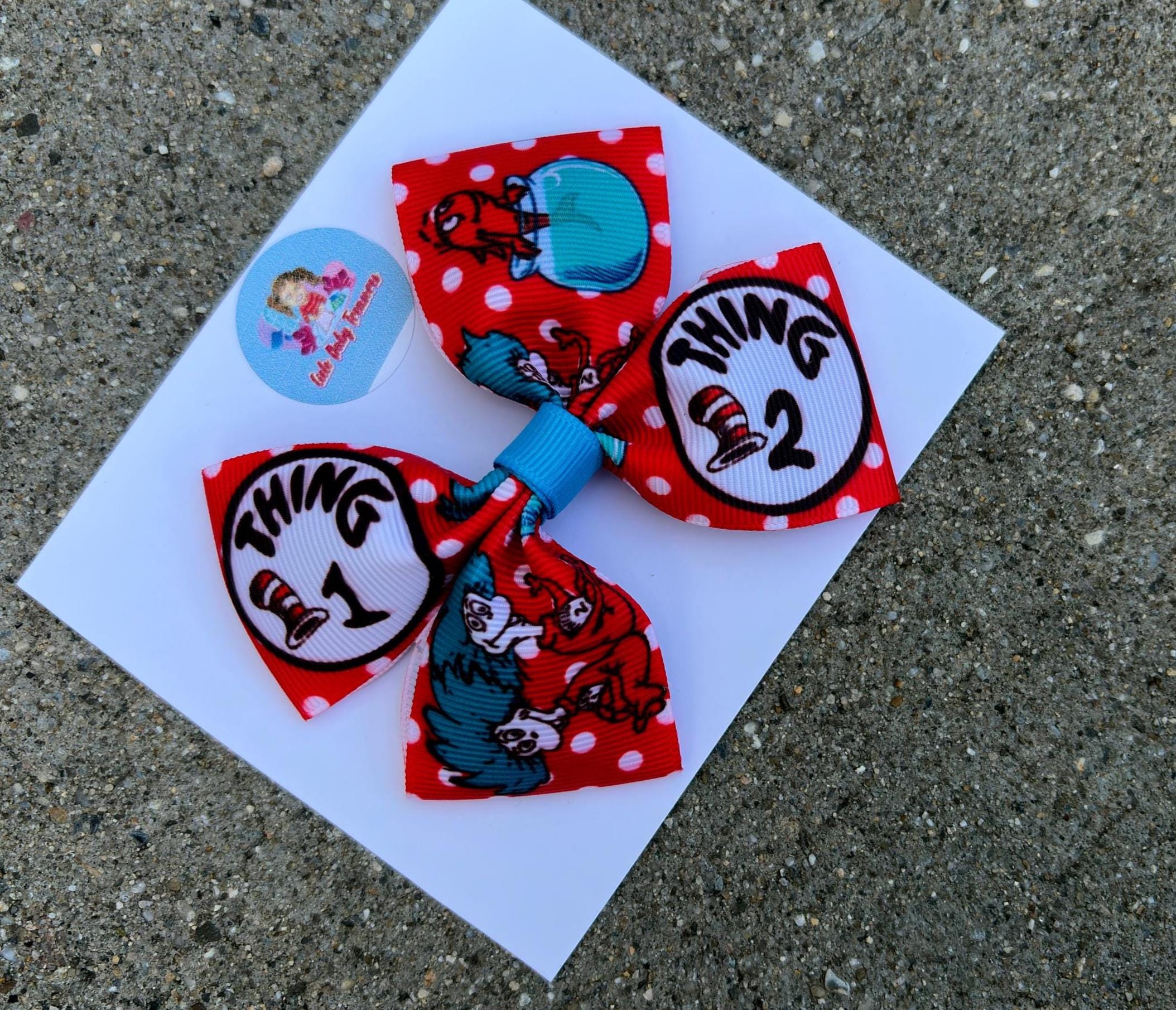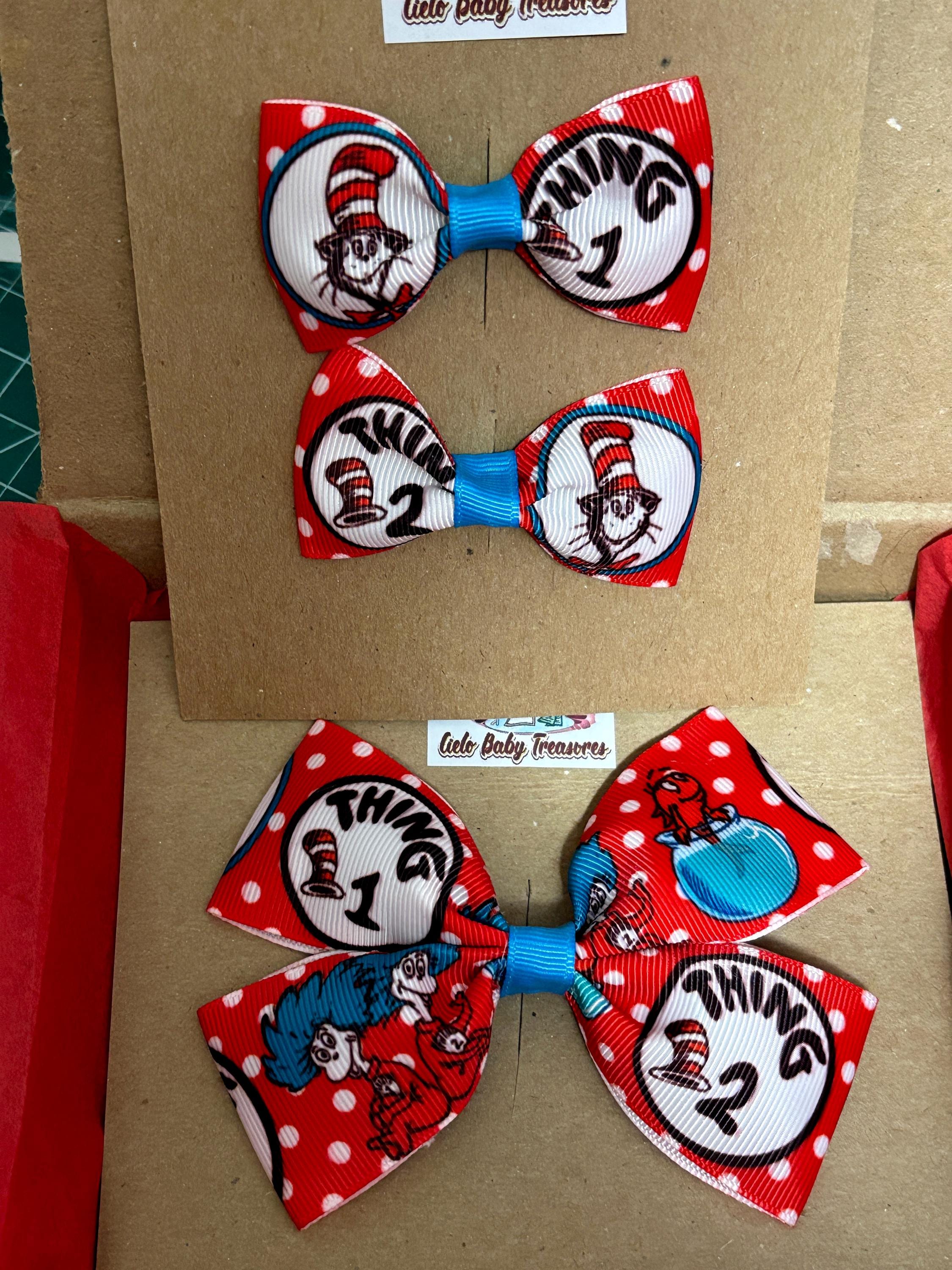 Elige la talla: Cosa 1, Cosa 2, Cosa 1, Cosa 2, Lazo, Lazo inspirado en el Dr. Seuss, Día de la Lectura Infantil, Día del Dr. Seuss, Cumpleaños del Dr. Seuss, Traje del Gato con Sombrero, Fiesta, Lazo para el Cabello Cosa 1, Cosa 2, Lazo para el Cabello con Cinta de Grosgrain, Lazos para el Cabello Dr. Seuss, Diadema con Lazo, Feliz Cumpleaños. Lazo para el Cabello para Hermana, Mamá, Niñera, Maestra de Todo.