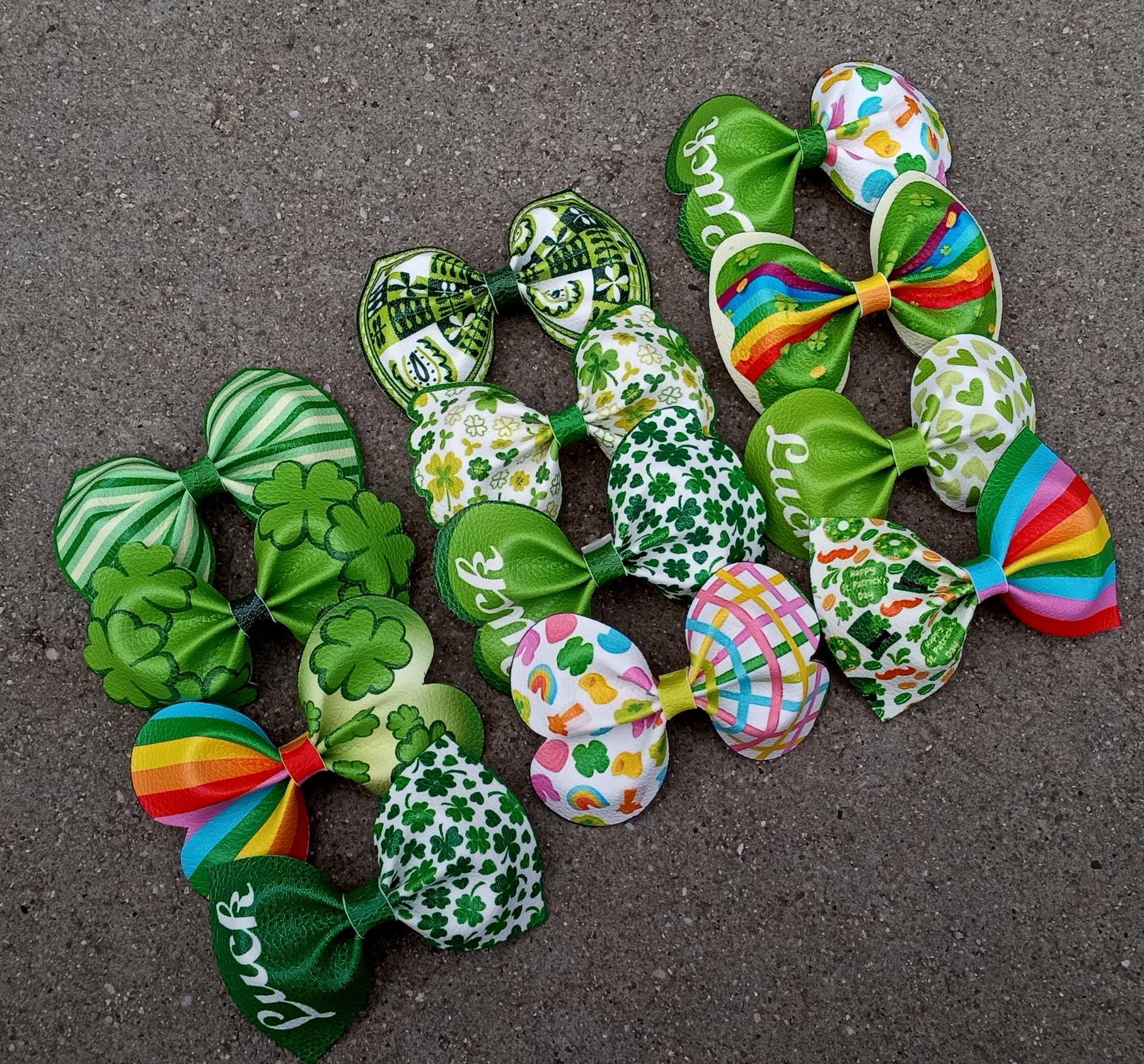 Green Hair Bows-Rainbow-Pennants-Shamrock-St Patrick’s Day-Bow Outfit-Green Hat-Bow-Flowers-Fungus Bow-Dog lucky charm-Sassy little lassie