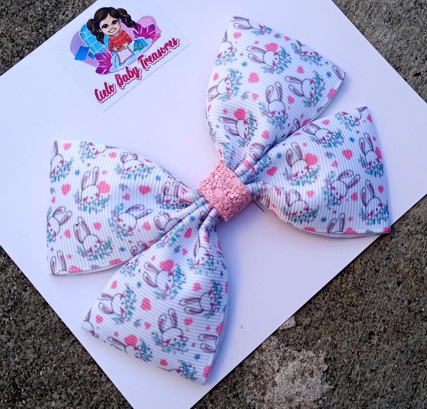 4 Inch White Bunny Hair Bow-Pink Easter Hair Bow For Toddlers-Bunny Grosgrain Ribbon-Party Girls Boutique Bow-Bow Easter Big-Summer-Birthday