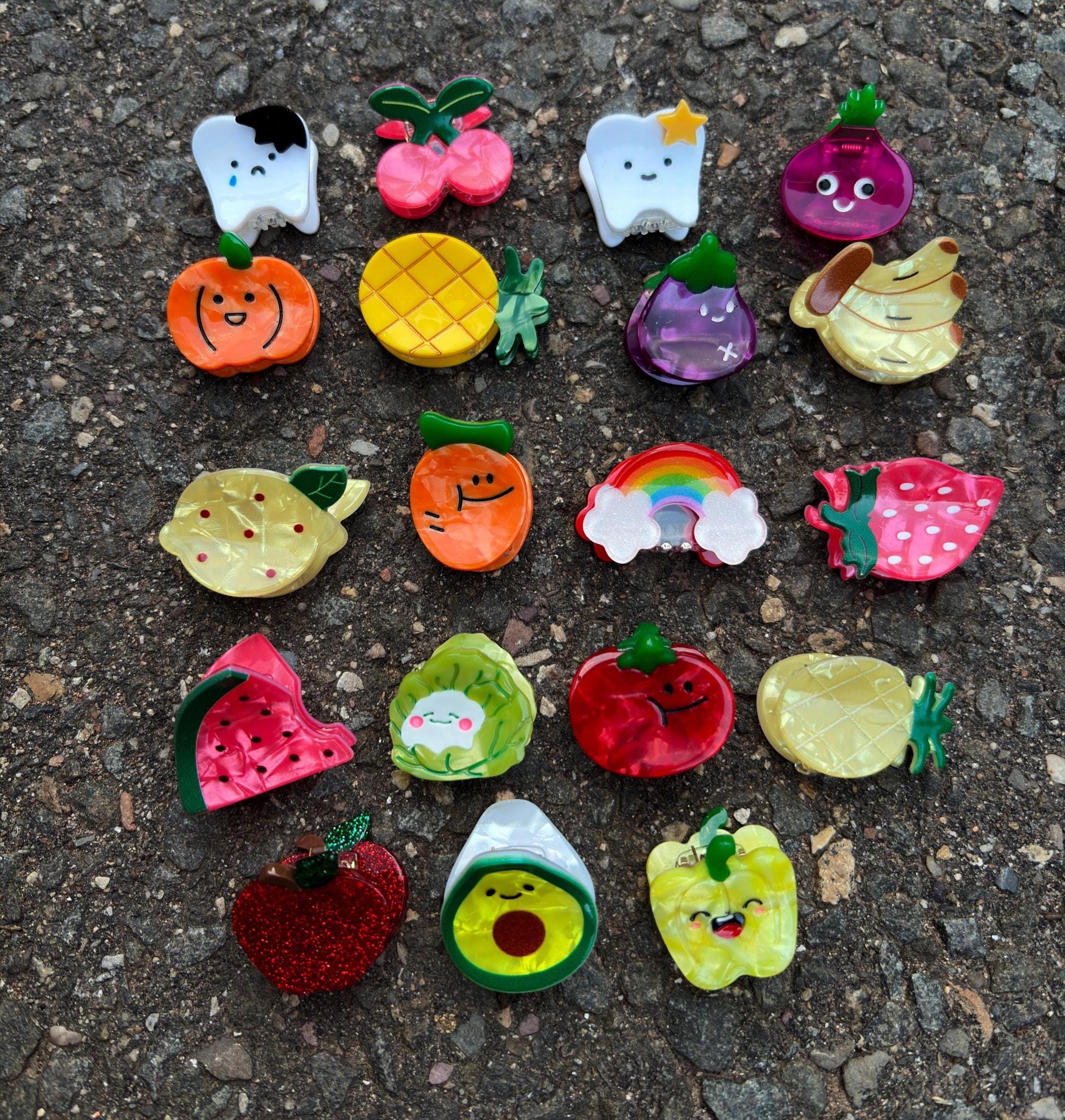 Small Fruits Hair Clips/Claws Fruits Plastic/Girls or Women/Her gift Summer/Minimalist Acetate/Tortoise Barrette/Flowers Acrylic Hairpin-Claws Happy Face,perfect tooth, damaged tooth .