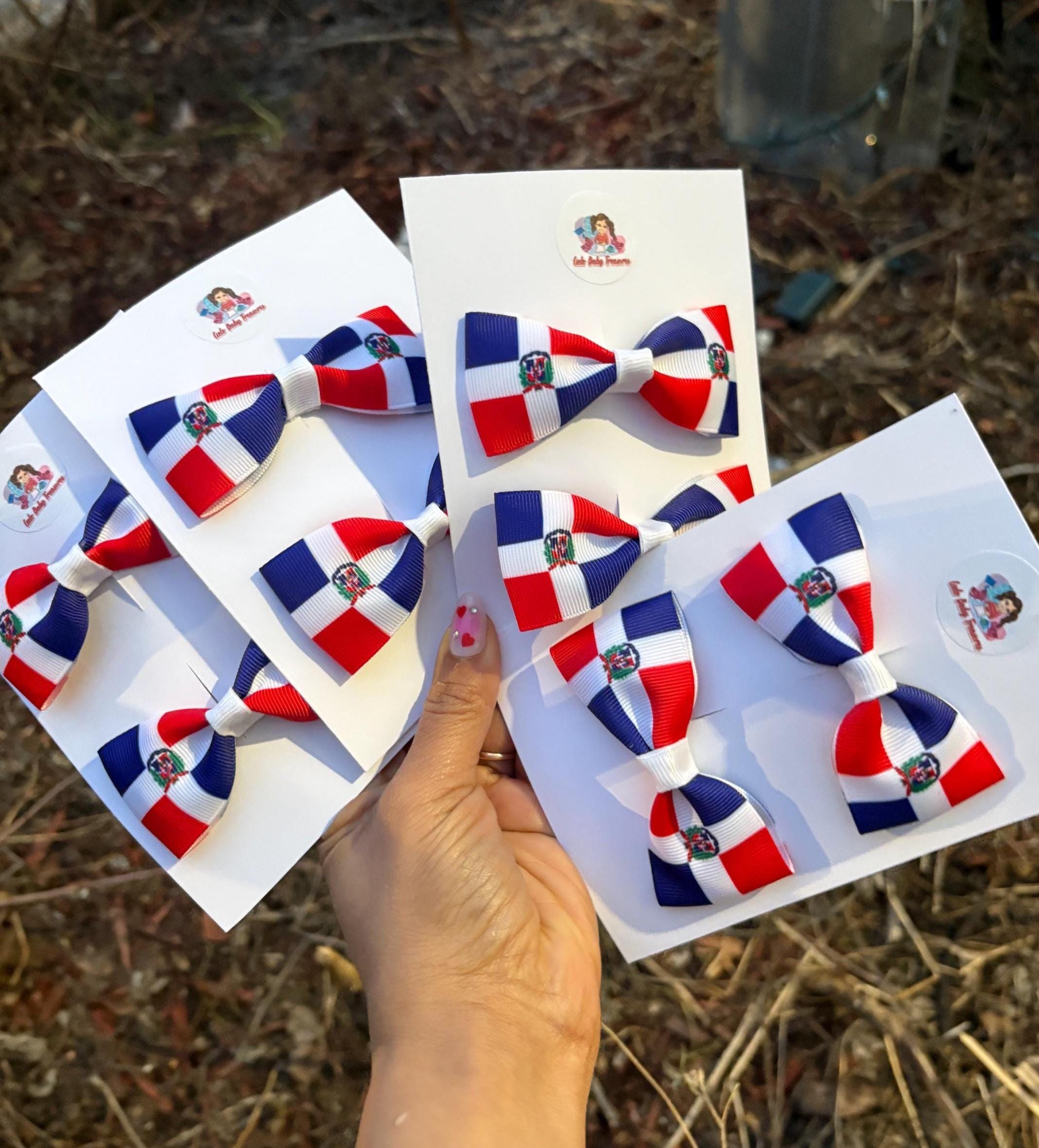 π΅βͺπ΄ Dominican Republic Hair Bows-Red, White & Blue-February 28th pigtail bows-Soy Dominicana-Party-outfit-February 28th-Independence Day-study. pigtail Hair bows for birthday-Small or Medium birthday Party-outfit print clip-Headband Bee design bow for Baby Girl-Mini bow Toddler- Hair Tie, Ponytail Holder, Hair Streamer, Bee Bow, Ponytail Streamer, Party Favor-Headband-Boutique Hair Bow for Girls-Bumble Hair bow-Hair Accessories.