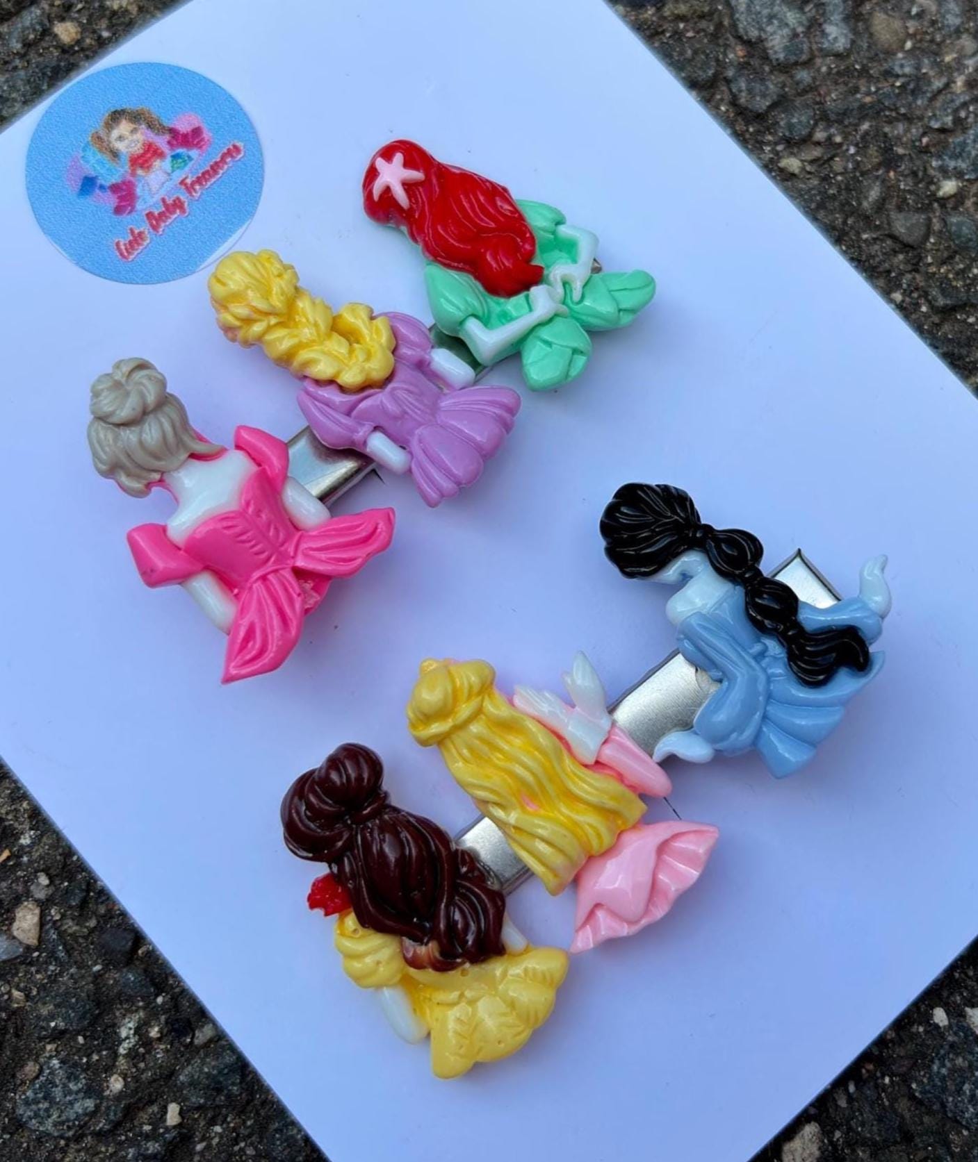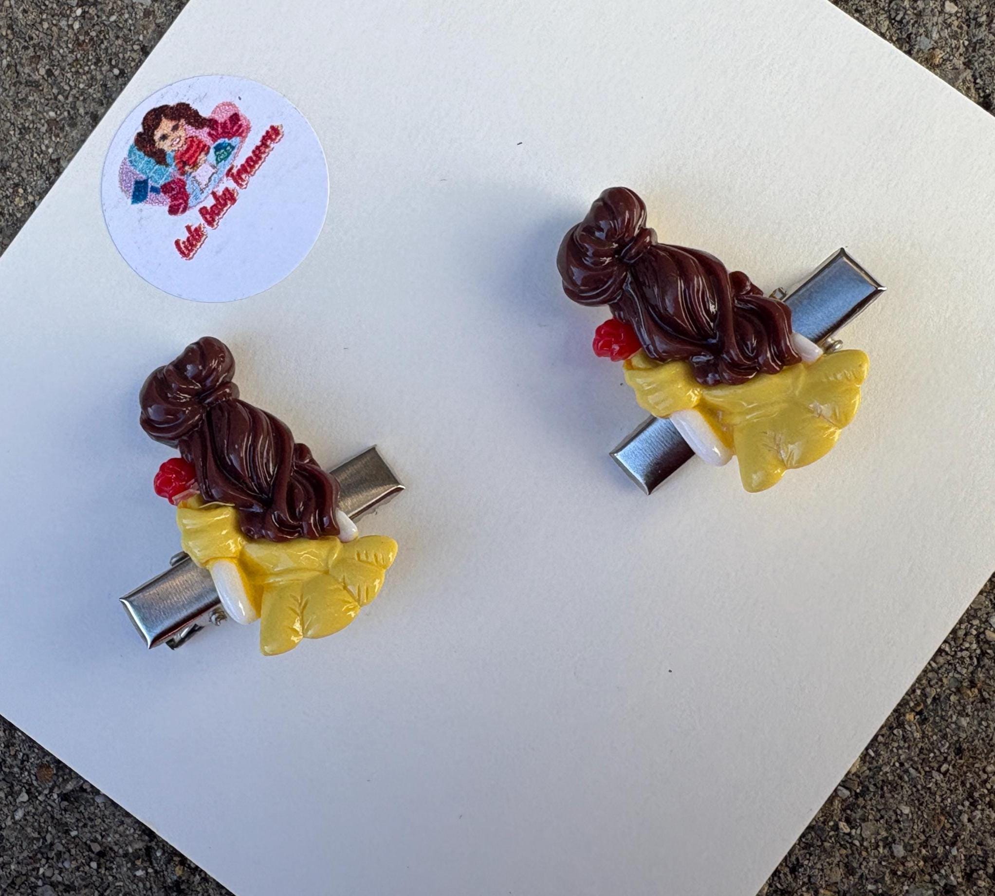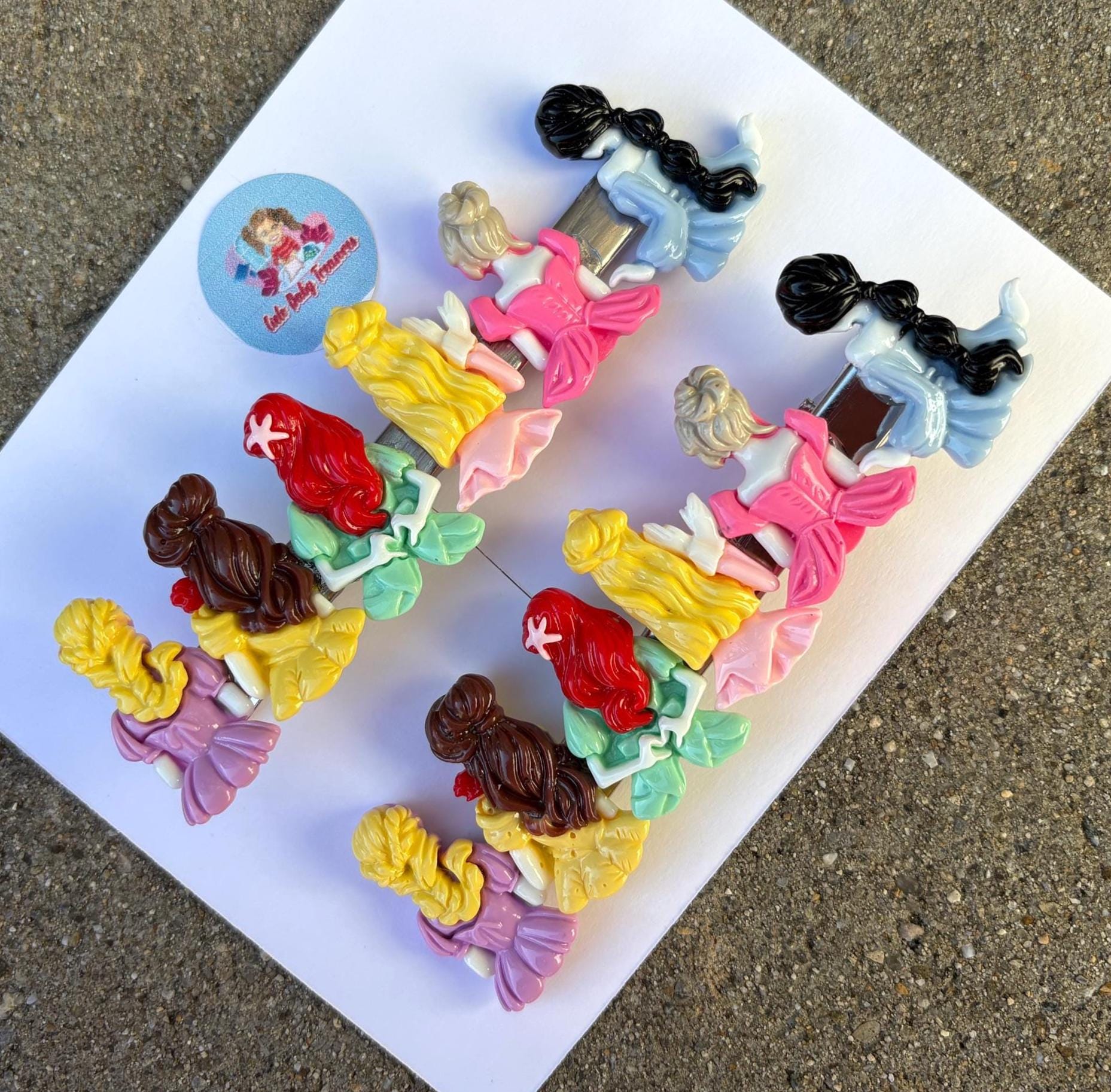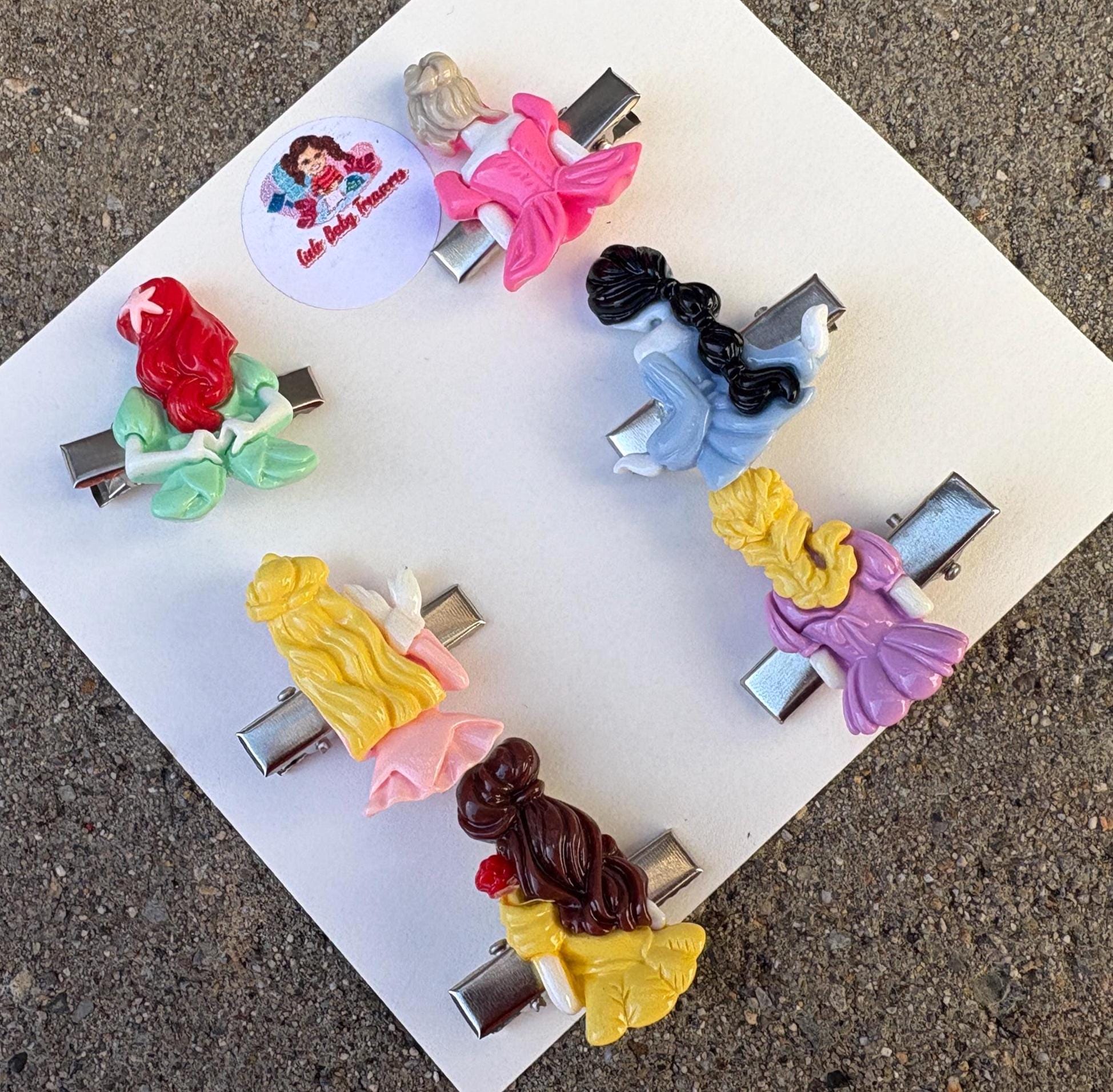 princess from back from Hair Clip-Birthday Toddler-Custom Baby-Party-Girl-Outfit-accessories-Resin Clay Hair-Inspired-Group of Princesses