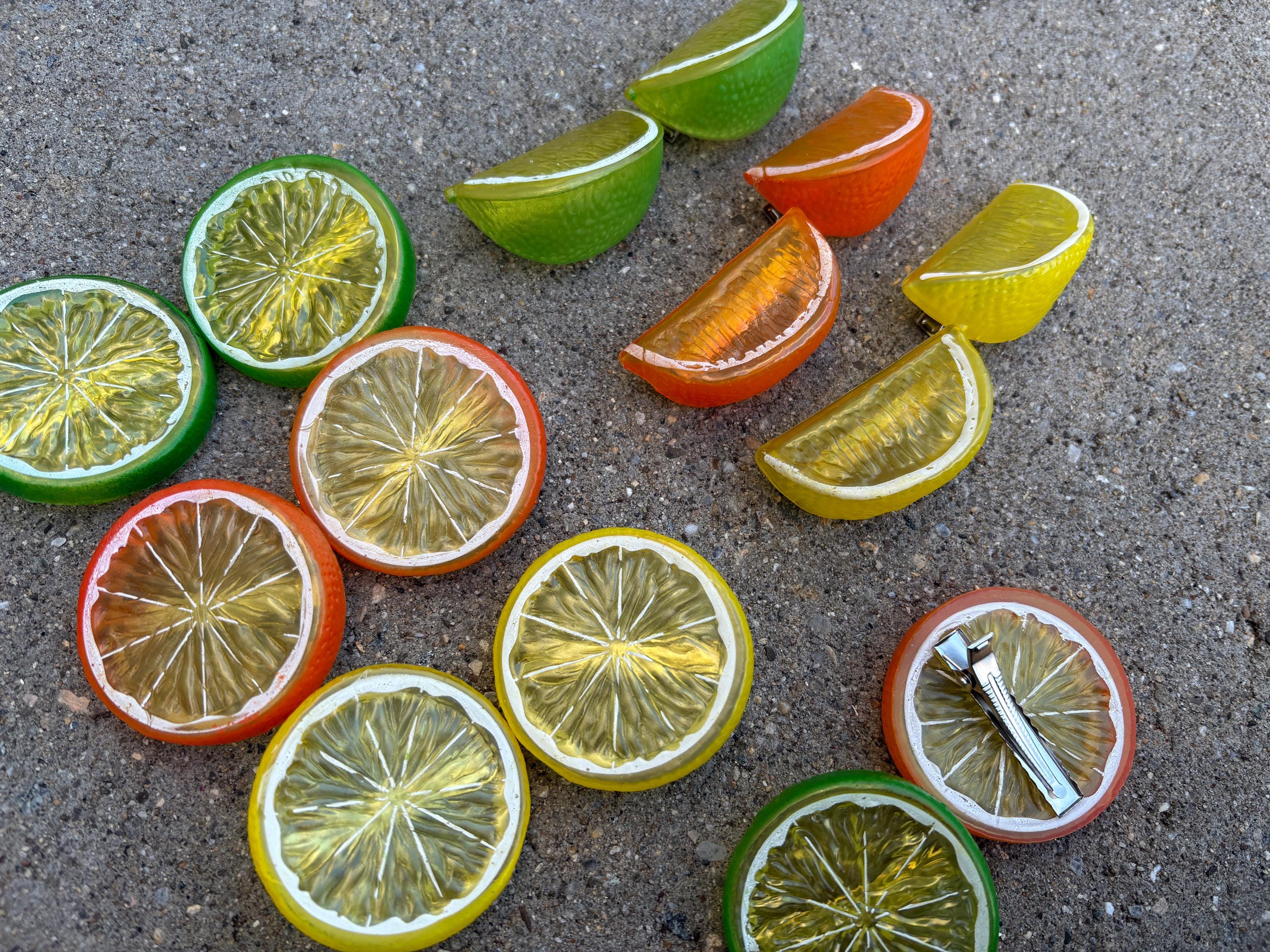 Kawaii Plastic Lemon, Orange, Cherry and Strawberry Hair Clip: Acrylic Acetate Barrette