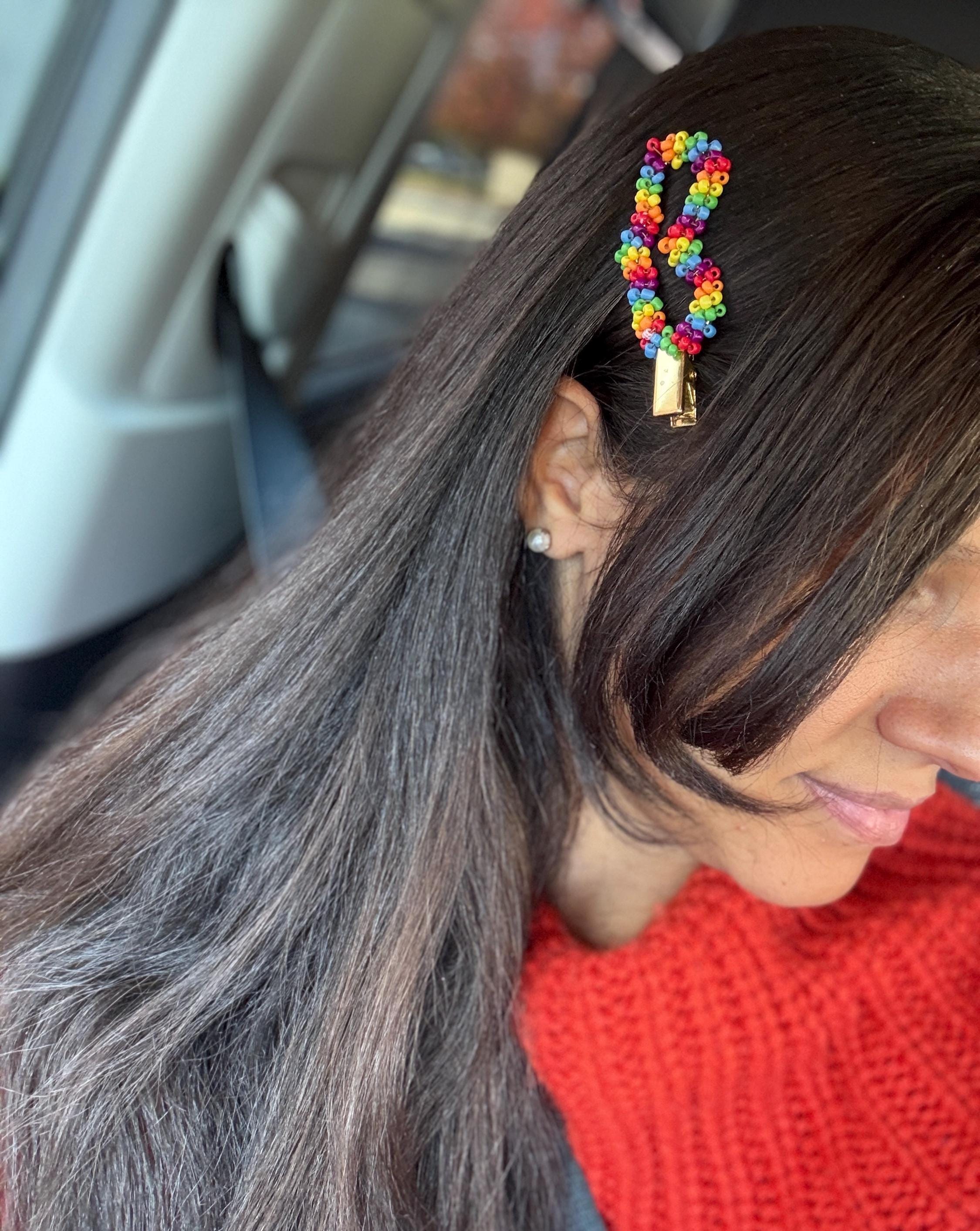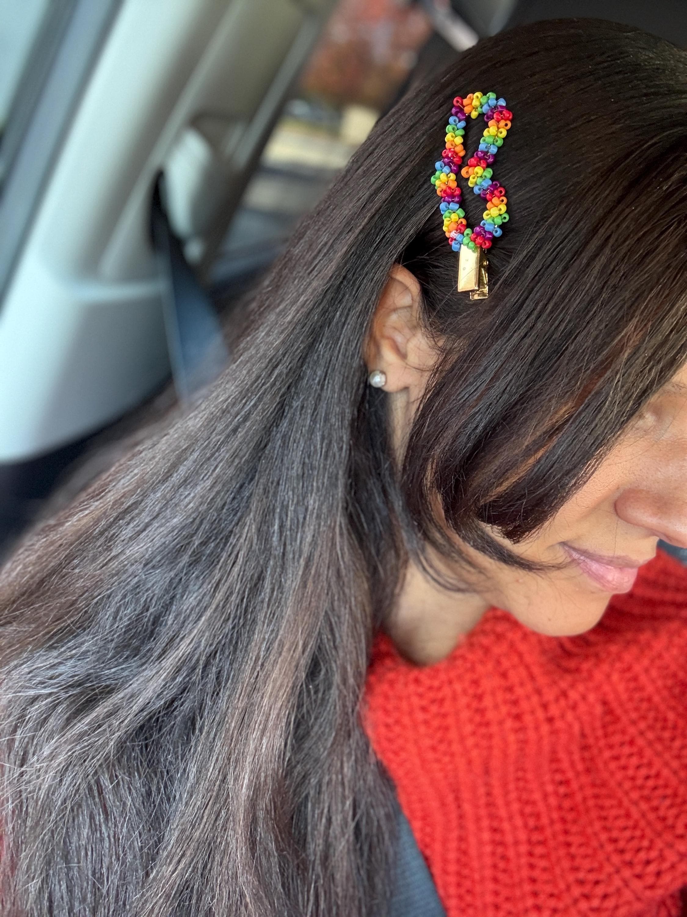 Esta linda diadema con pequeñas cuentas se puede personalizar con el color que quieras. Esta pinza para el cabello es perfecta.