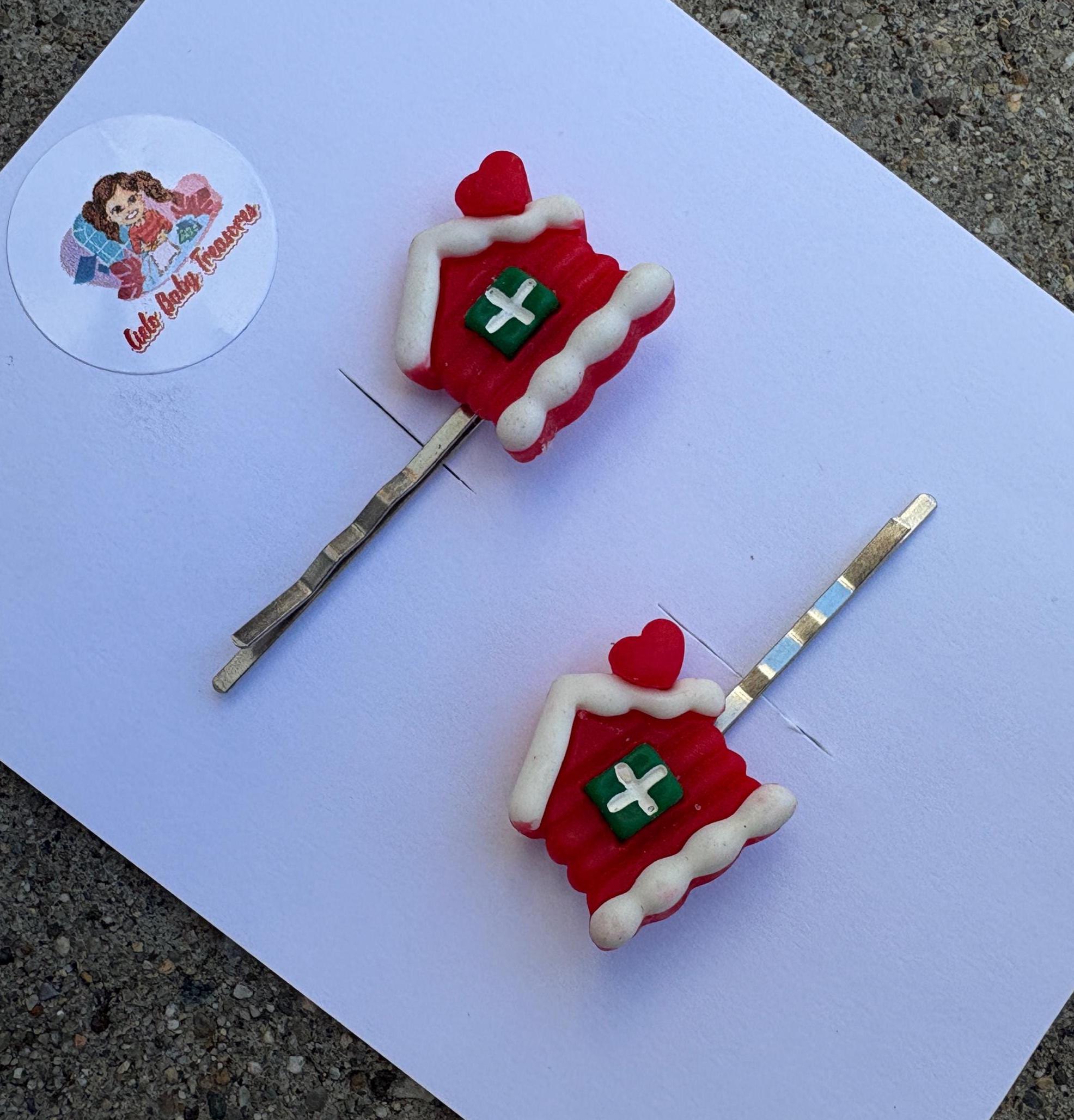 Set of 2 Small Resin Resin Clips-Christmas house-Bells-Christmas Hair Claw-Santa-Gift-Women Girl-Party-Accessories-Acetate-Hairpin