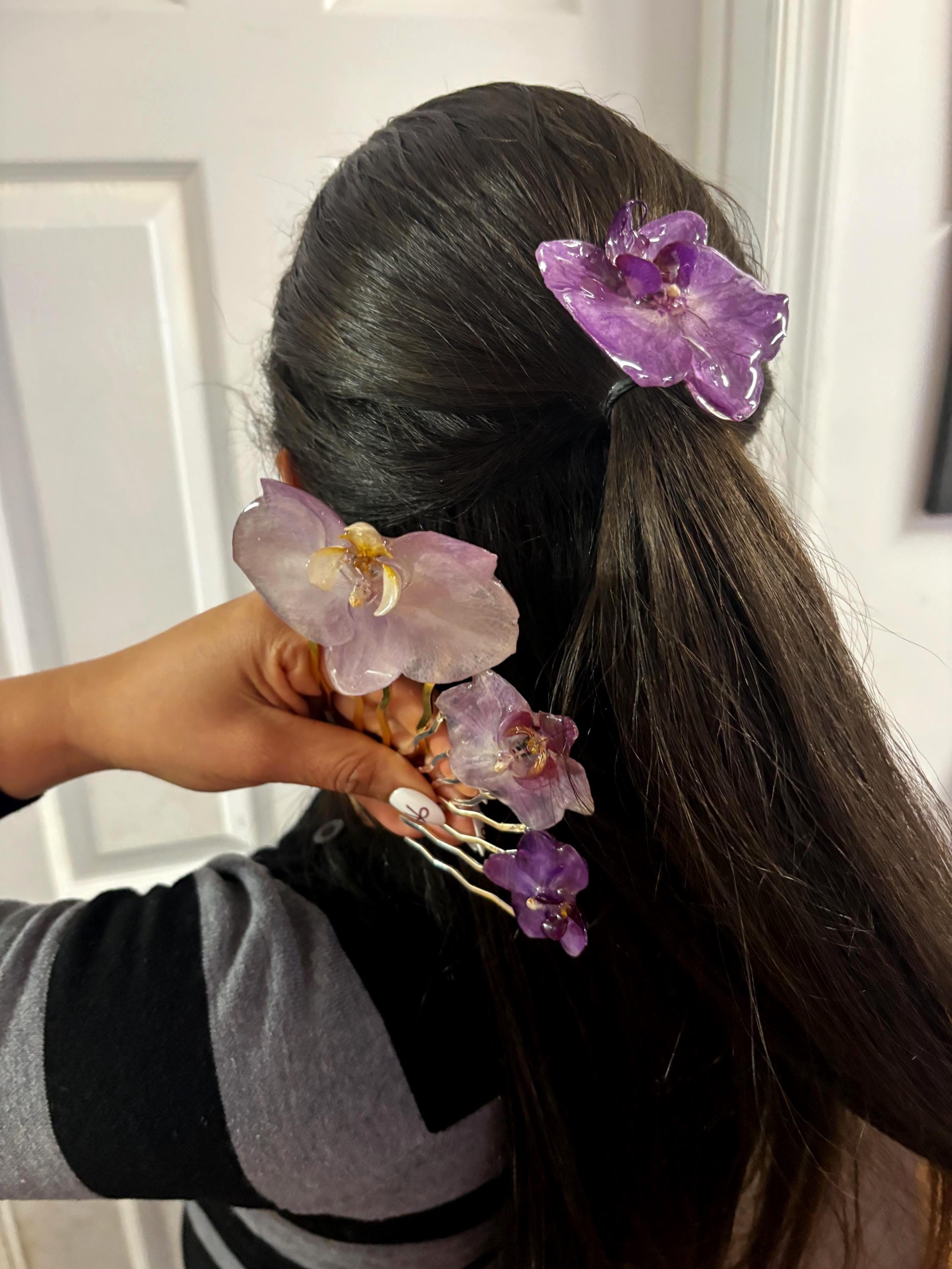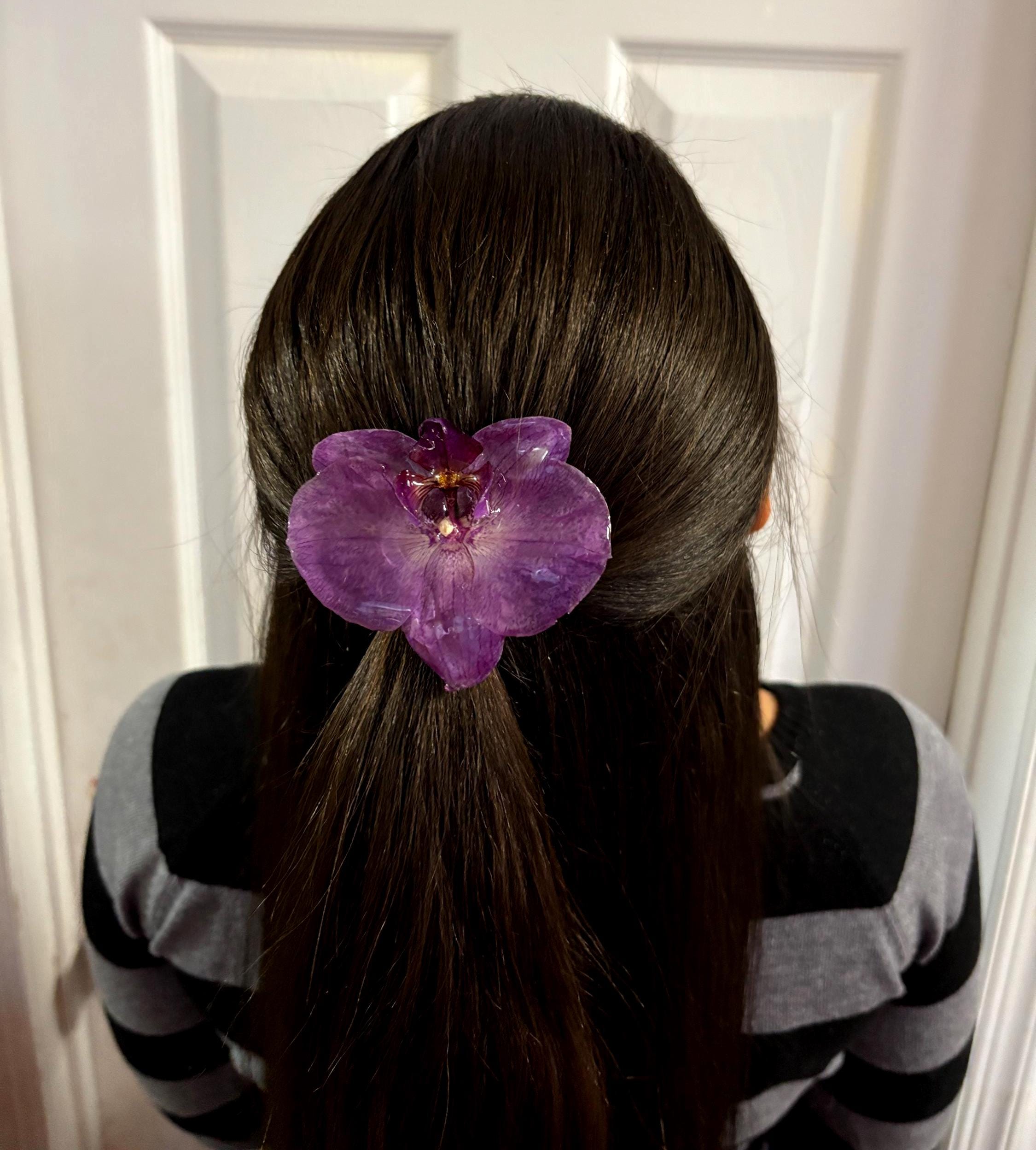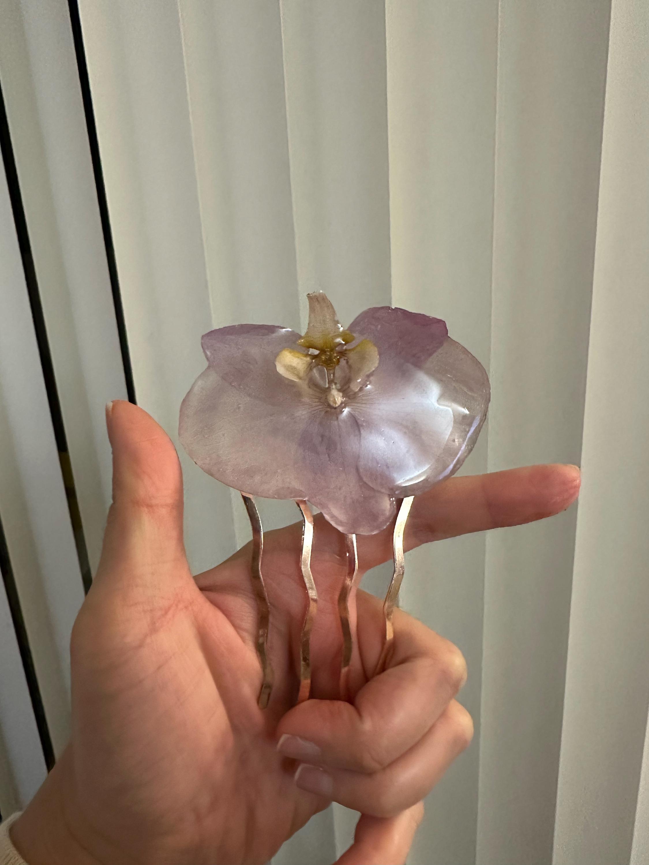 🌸 Real Orchid Hair Comb: Large, light purple floral headpiece, made from real orchid resin, white floral, light purple floral headpiece, handmade for the bride's wedding, botanical flower gift for her, nature-inspired, Sunflowers, Grapefruit, handcrafted, cottagecore style, tropical, royal purple, light purple, yellow, orchid hair clip: Preserved resin flower accessory
