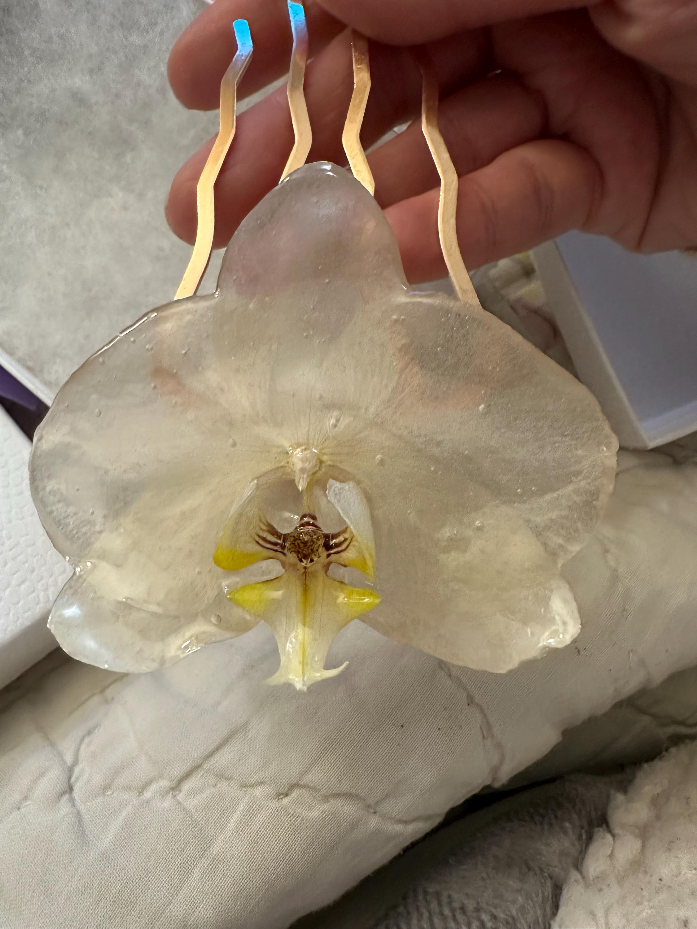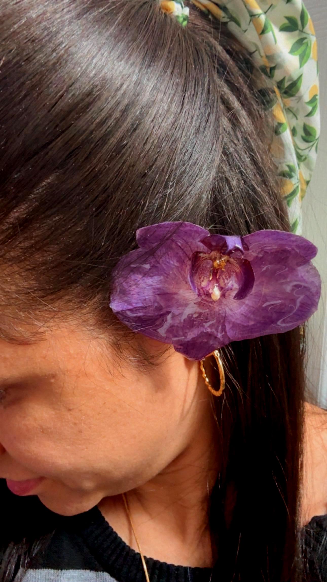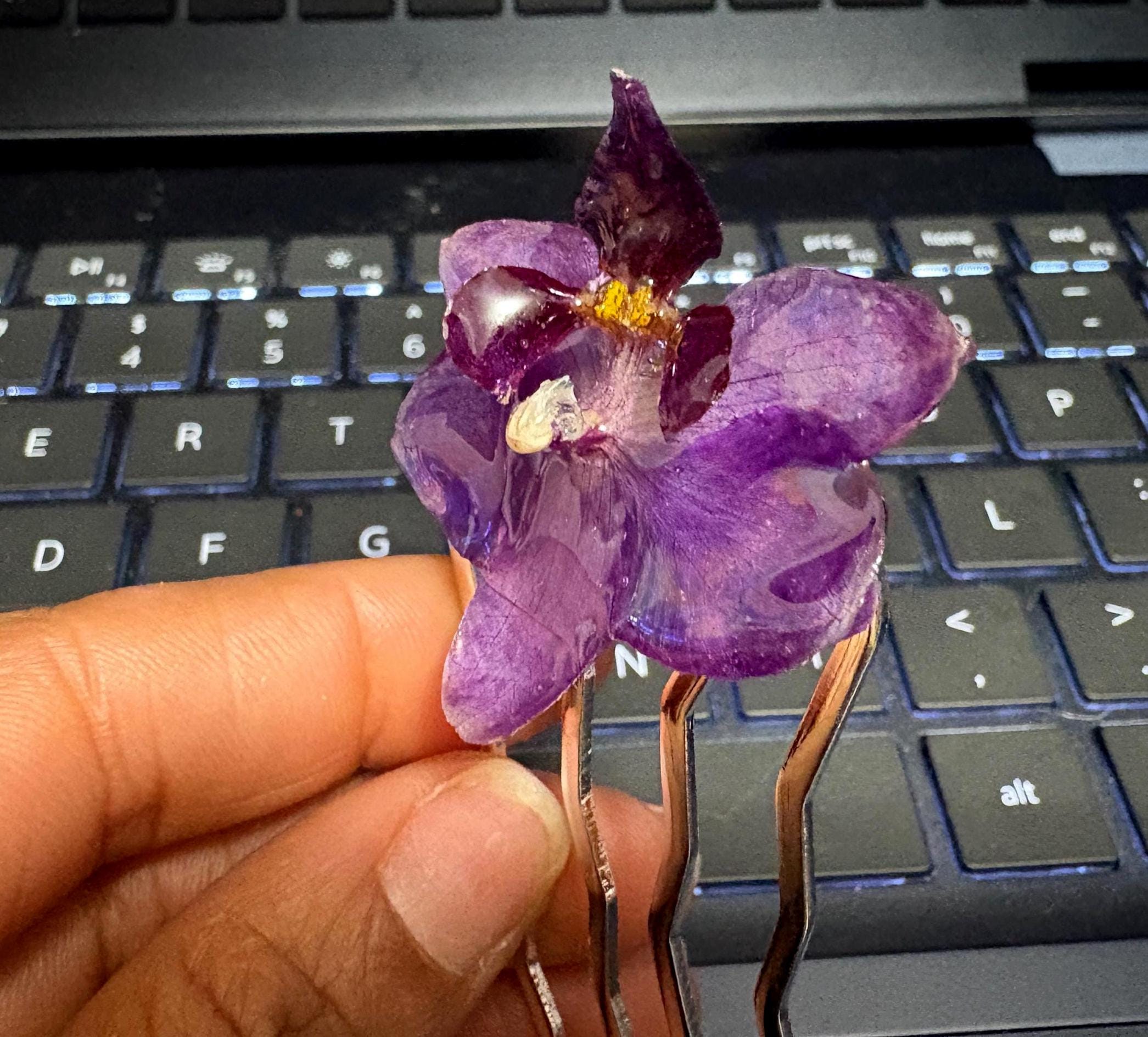 🌸 Real Orchid Hair Comb: Large, light purple floral headpiece, made from real orchid resin, white floral, light purple floral headpiece, handmade for the bride's wedding, botanical flower gift for her, nature-inspired, Sunflowers, Grapefruit, handcrafted, cottagecore style, tropical, royal purple, light purple, yellow, orchid hair clip: Preserved resin flower accessory