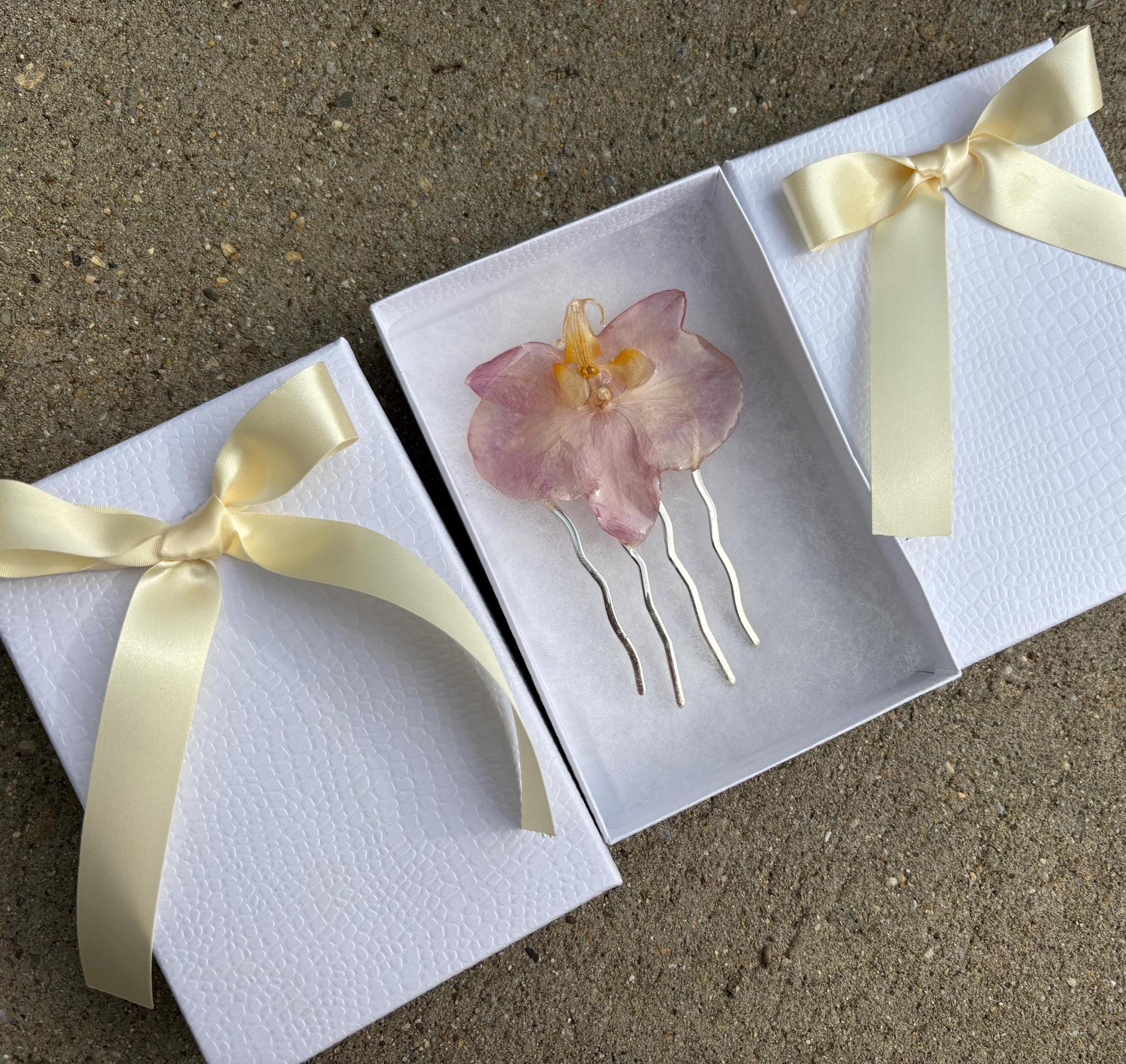 Peineta de orquÃdea de resina hecha a mano: tocado botánico para boda