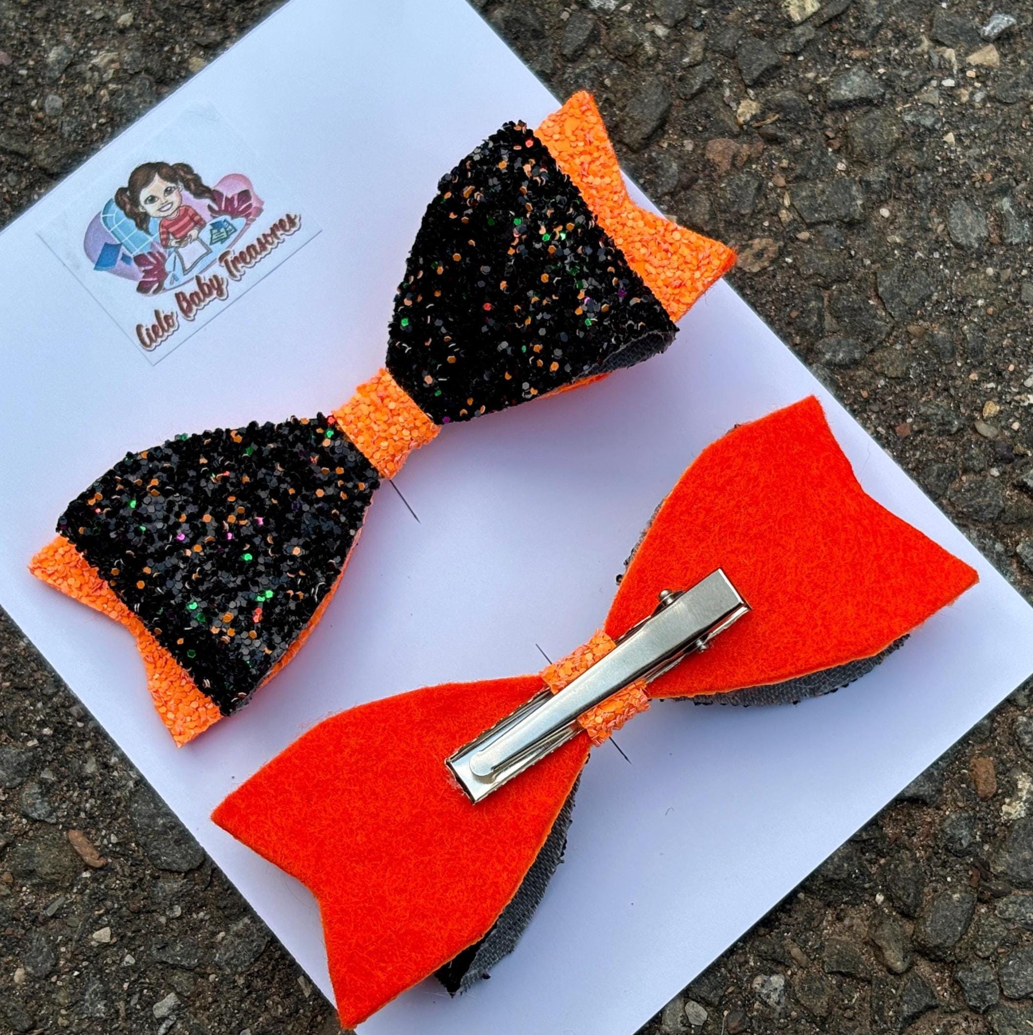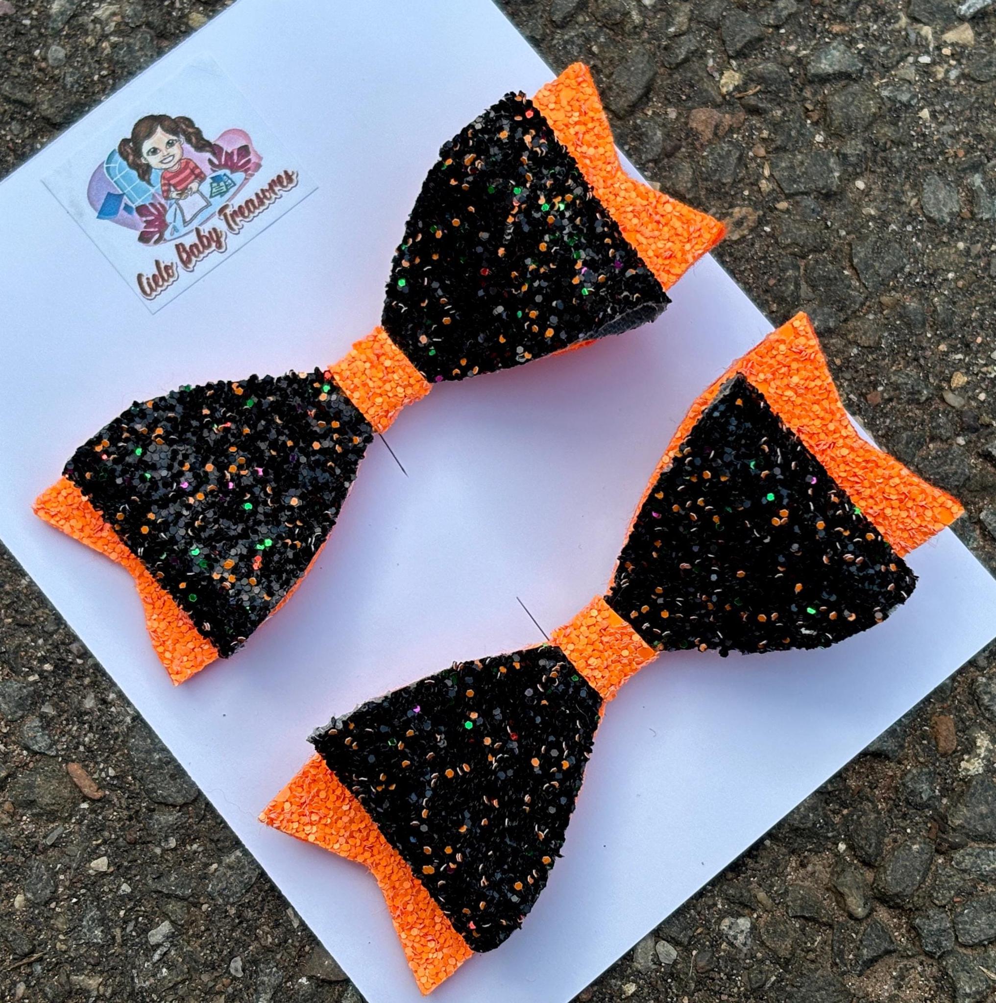 🧡 Set of 2 Pigtail bows//Sparkle Hair Bows/Double Stacked Bow Glitter Colors Halloween/Bow Back to School. Sparkle Girls hair bow Back to School/Glitter hairbows/Pigtail bow set/ Pigtail hairbows/Glitter bows/Hair clips barrette/Hair Bows for Baby Glitter/Bows Gifts Birthday Baby Girls.