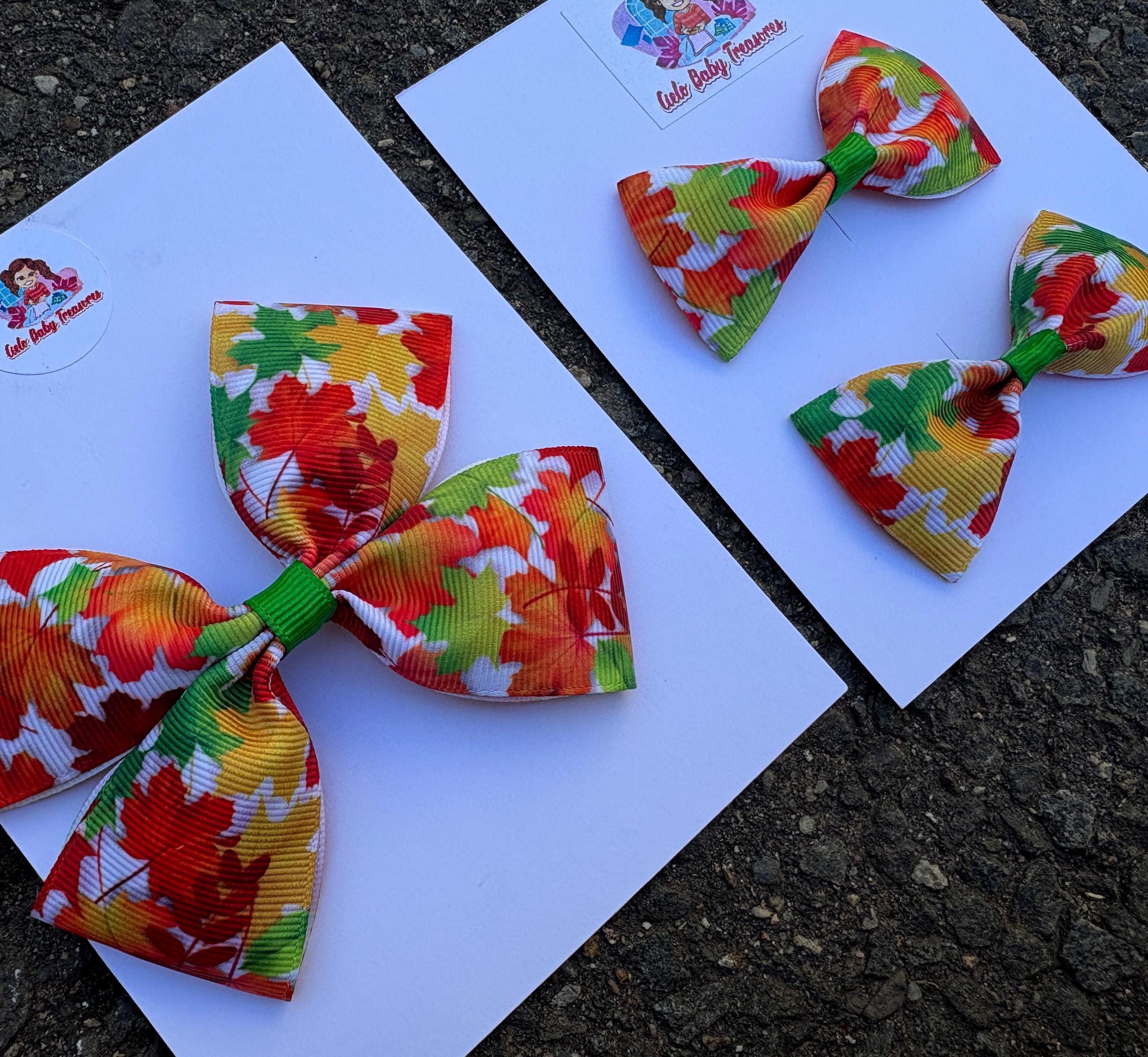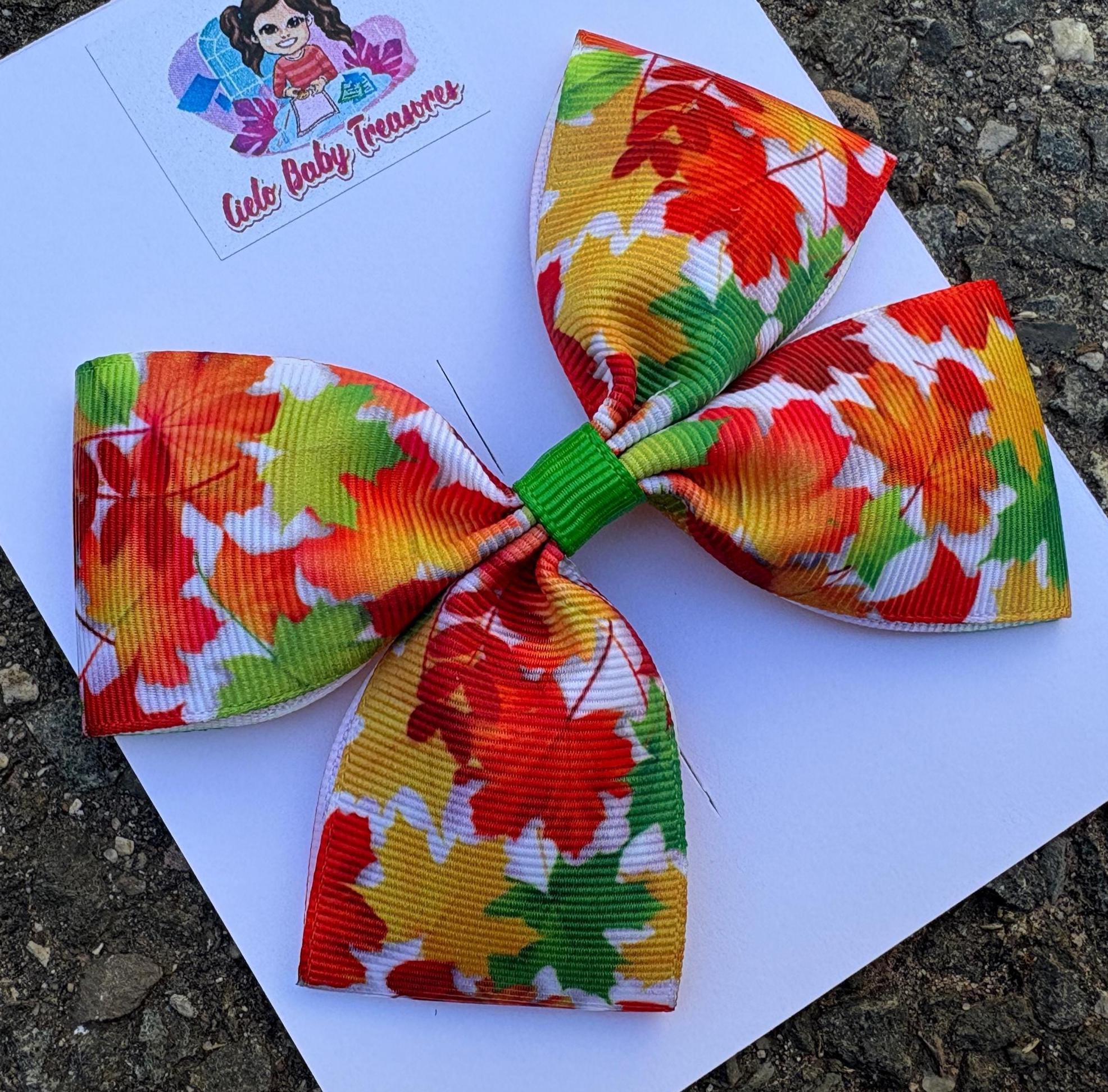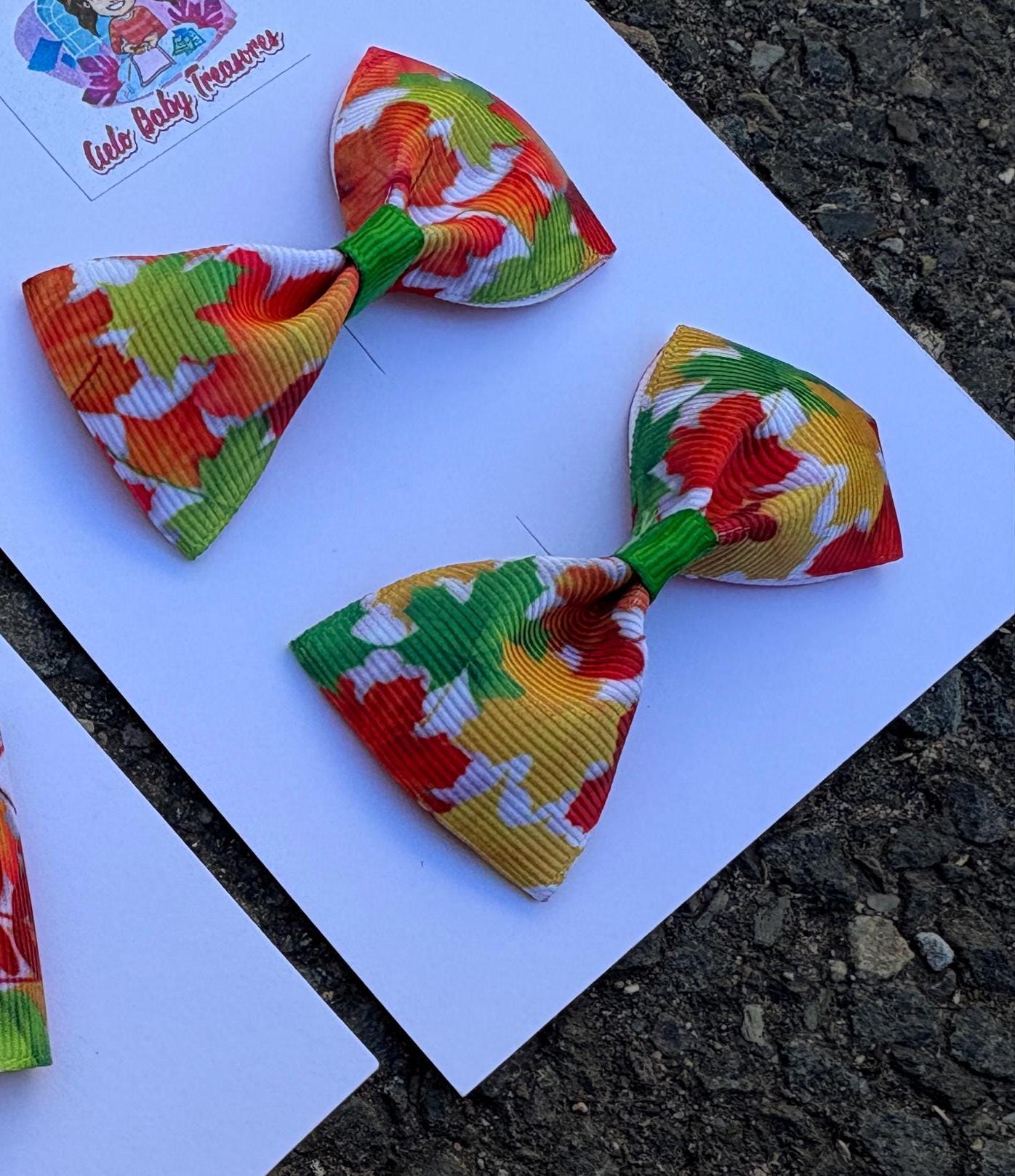 Autumn Bows-autumn Leaf Bow-green,yellow,brown,orange-Leaves Hair Bow: Thanksgiving Hair Clip